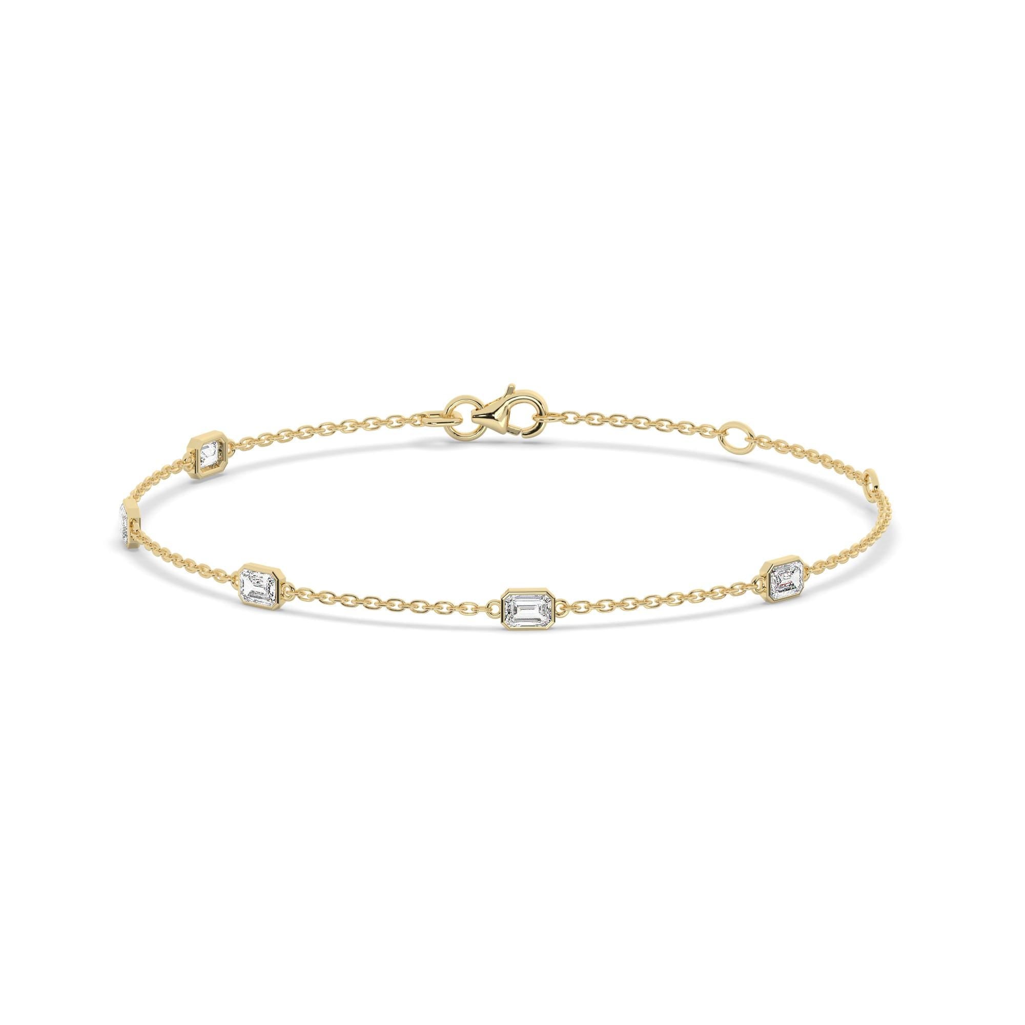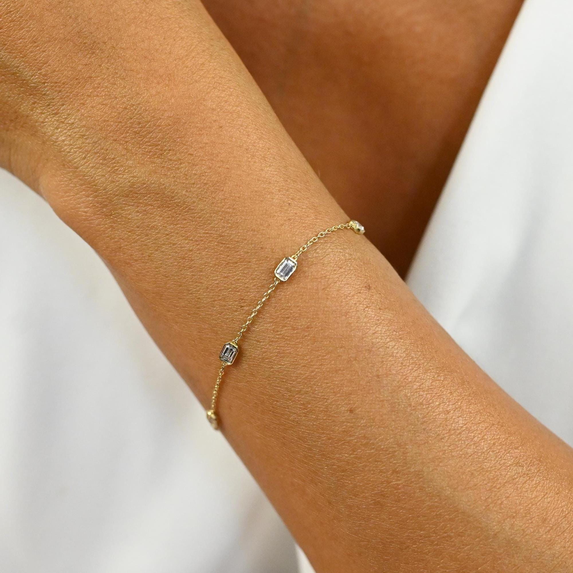 14k Gold Emerald Cut Diamond Station Bracelet: Dainty Birthday Gift