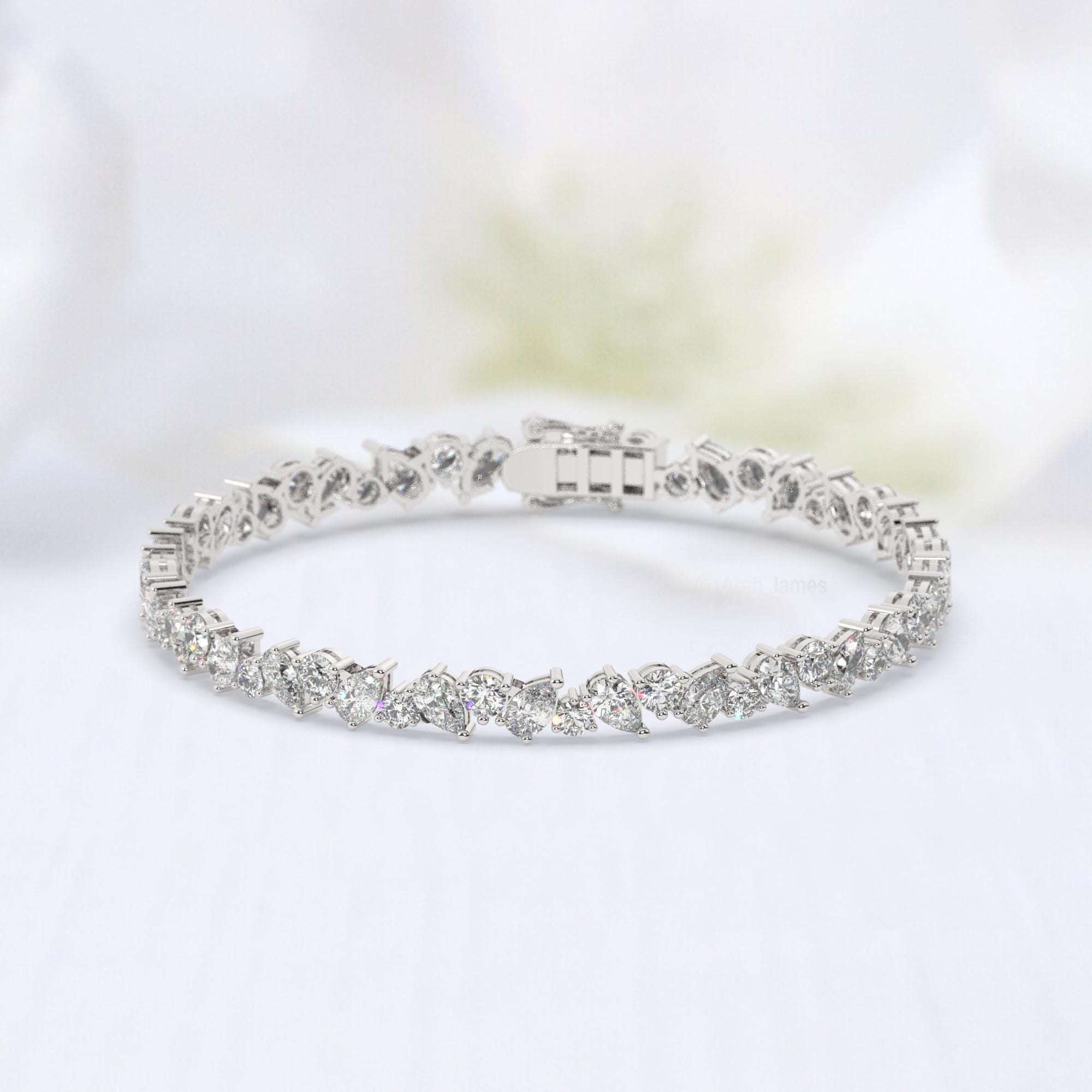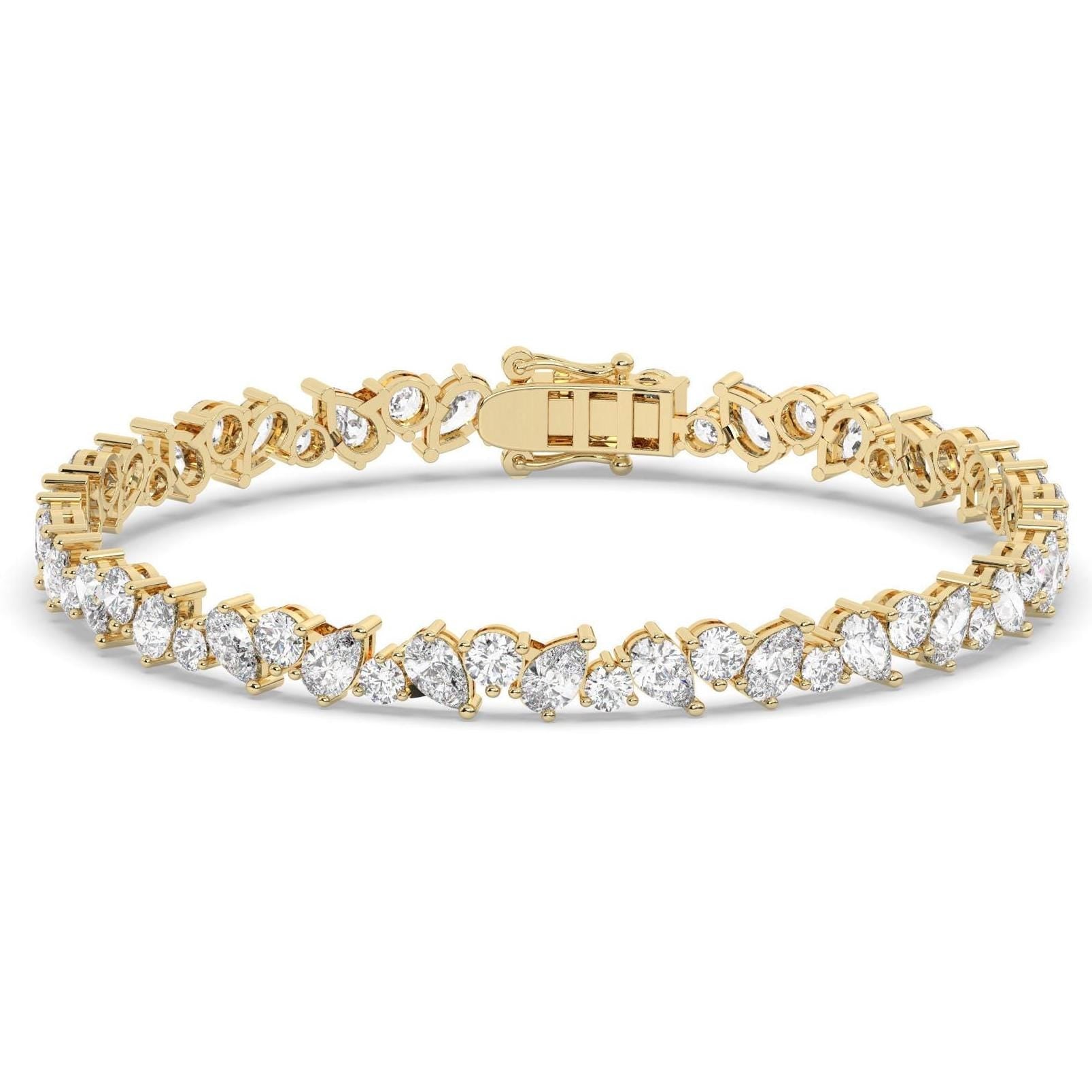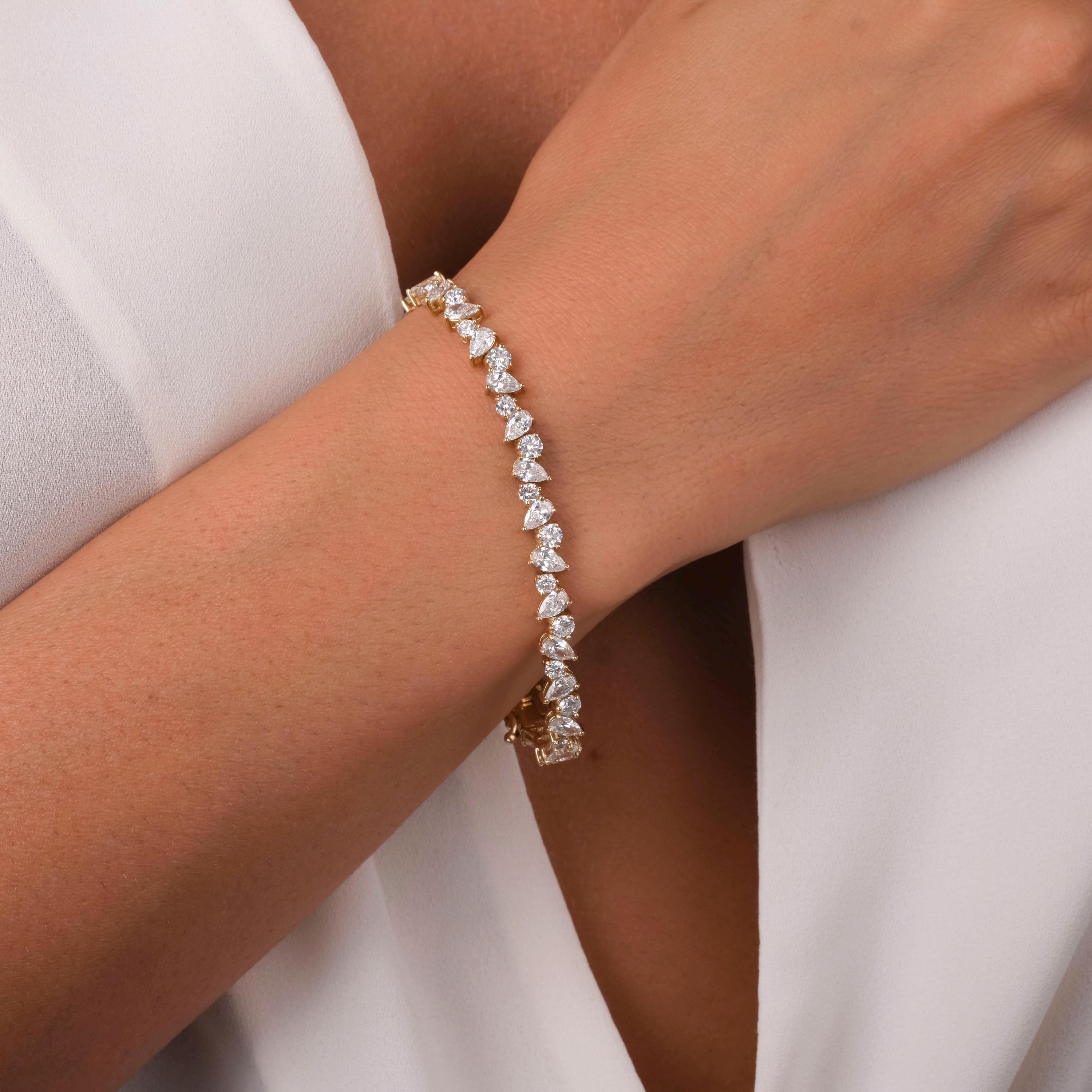 14k Gold Pear & Round Diamond Tennis Bracelet - IGI Certified