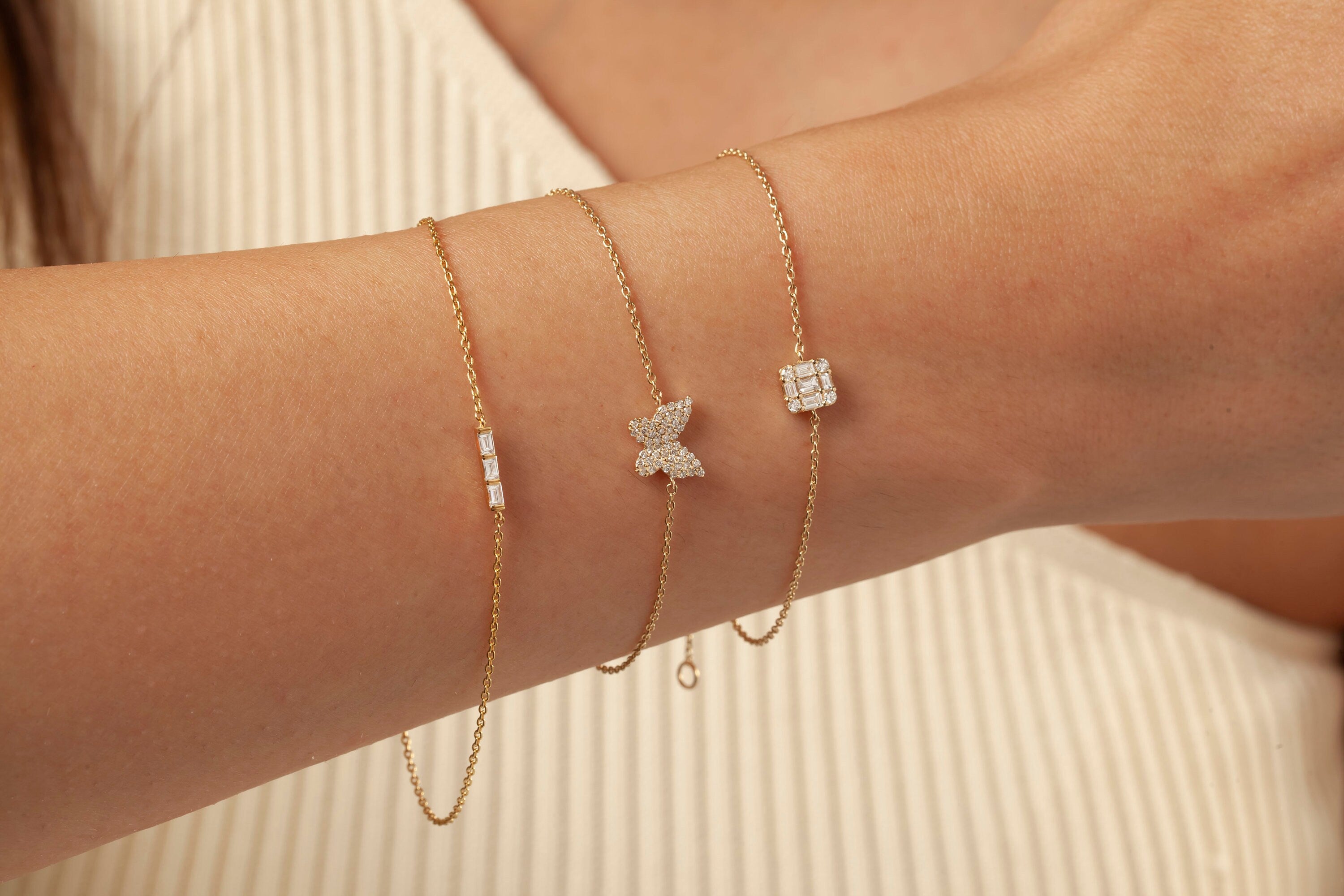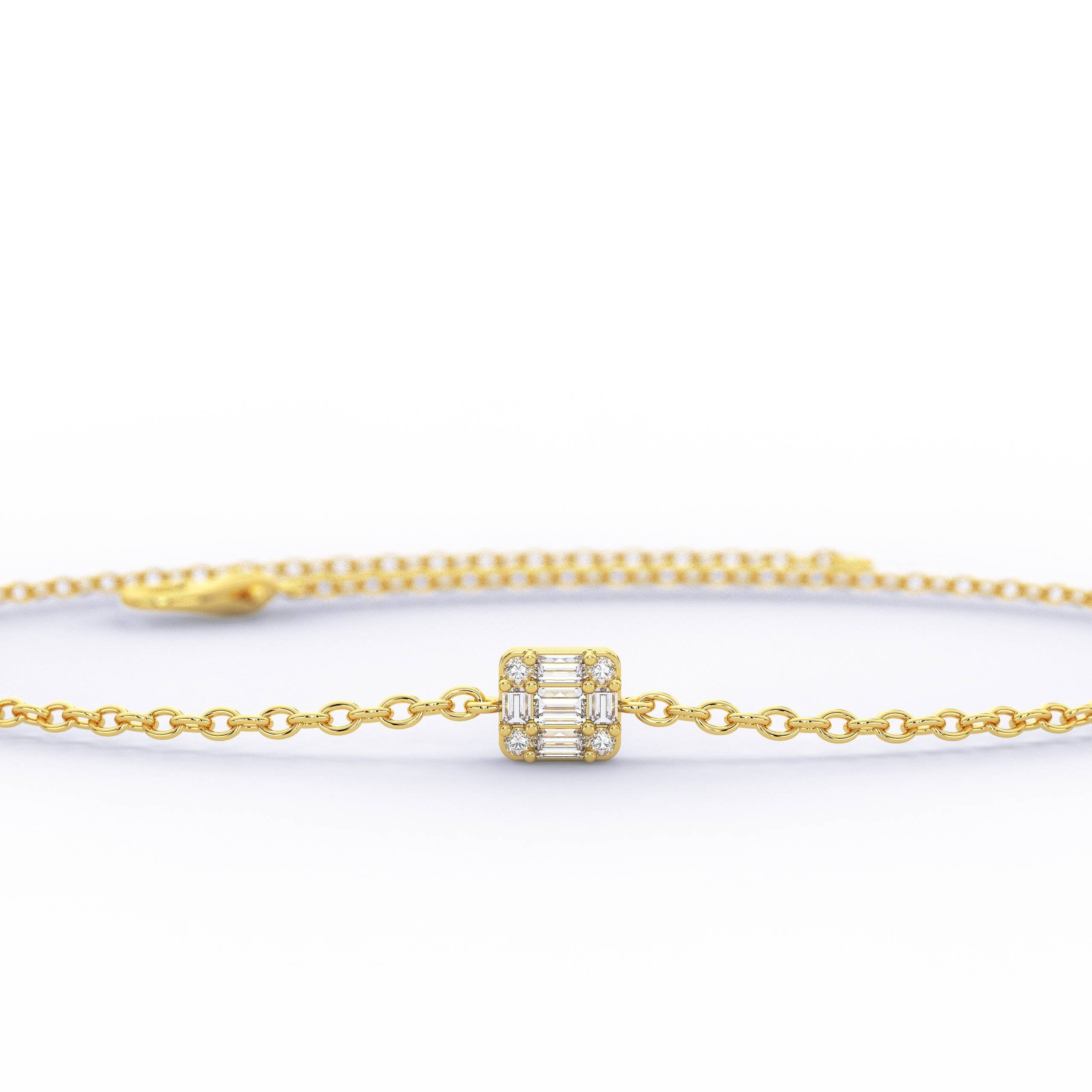 Baguette Diamond Bracelet / 14k Gold Invisible Baguette Setting Bracelet / Diamond Square Bracelet / Graduation Gift / Anniversary Gift /