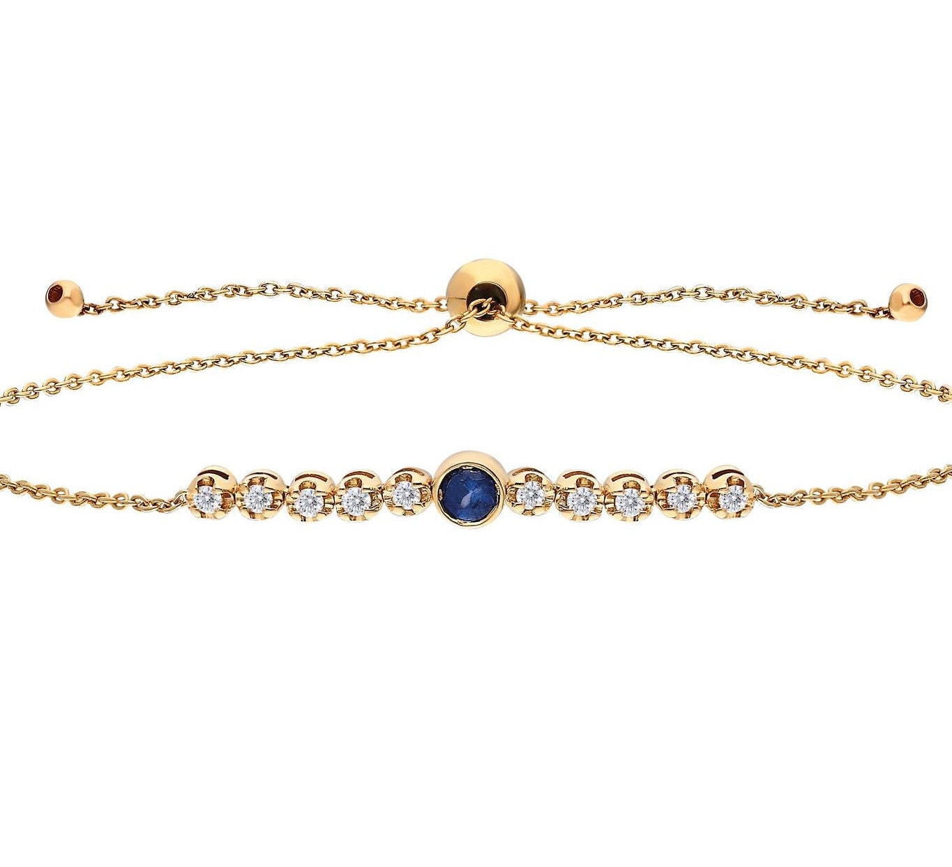 This 14k gold, diamond sapphire bolo tennis bracelet is perfect for layering or to gift someone special.