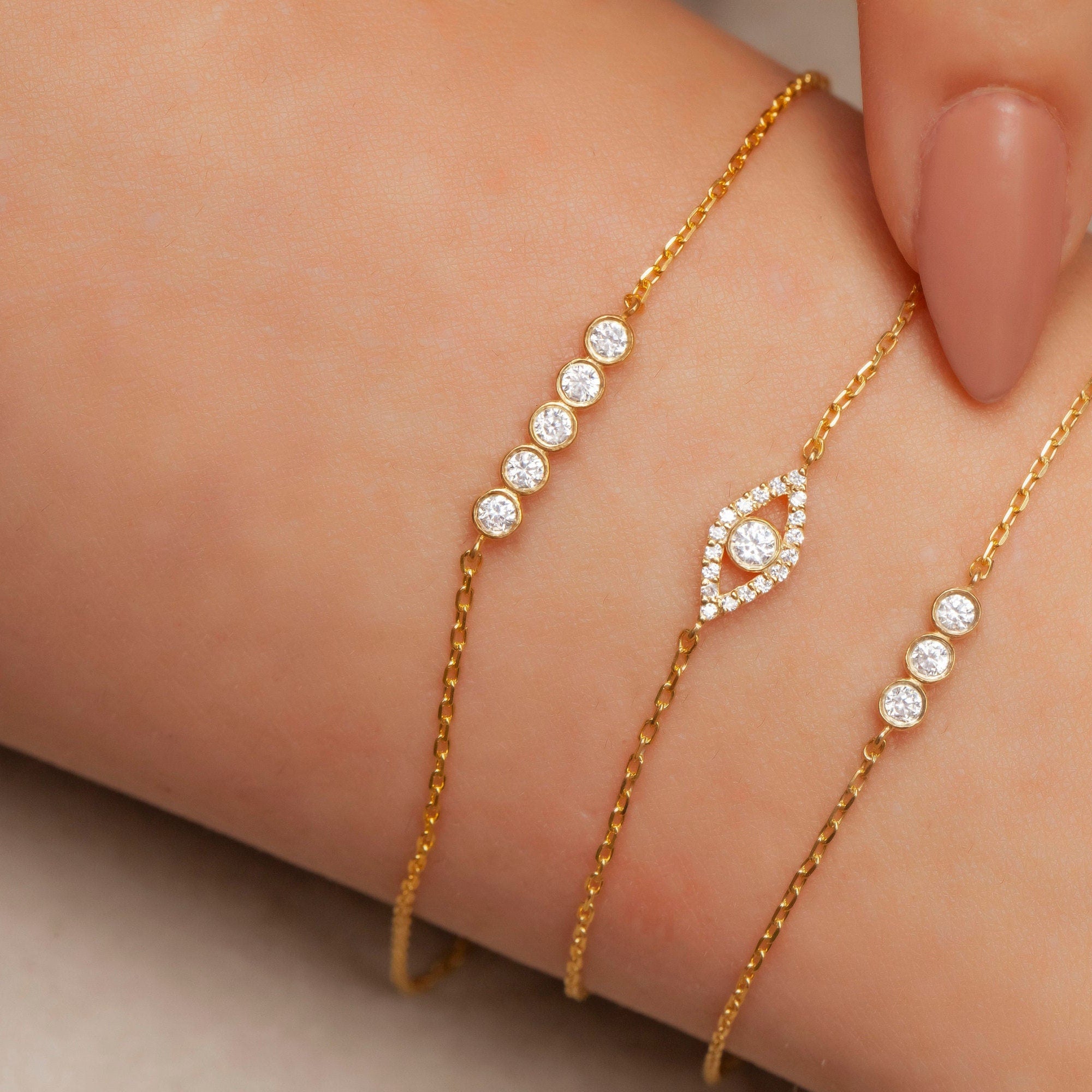 This 14k gold diamond bar bracelet is perfect for layering or to gift someone special.