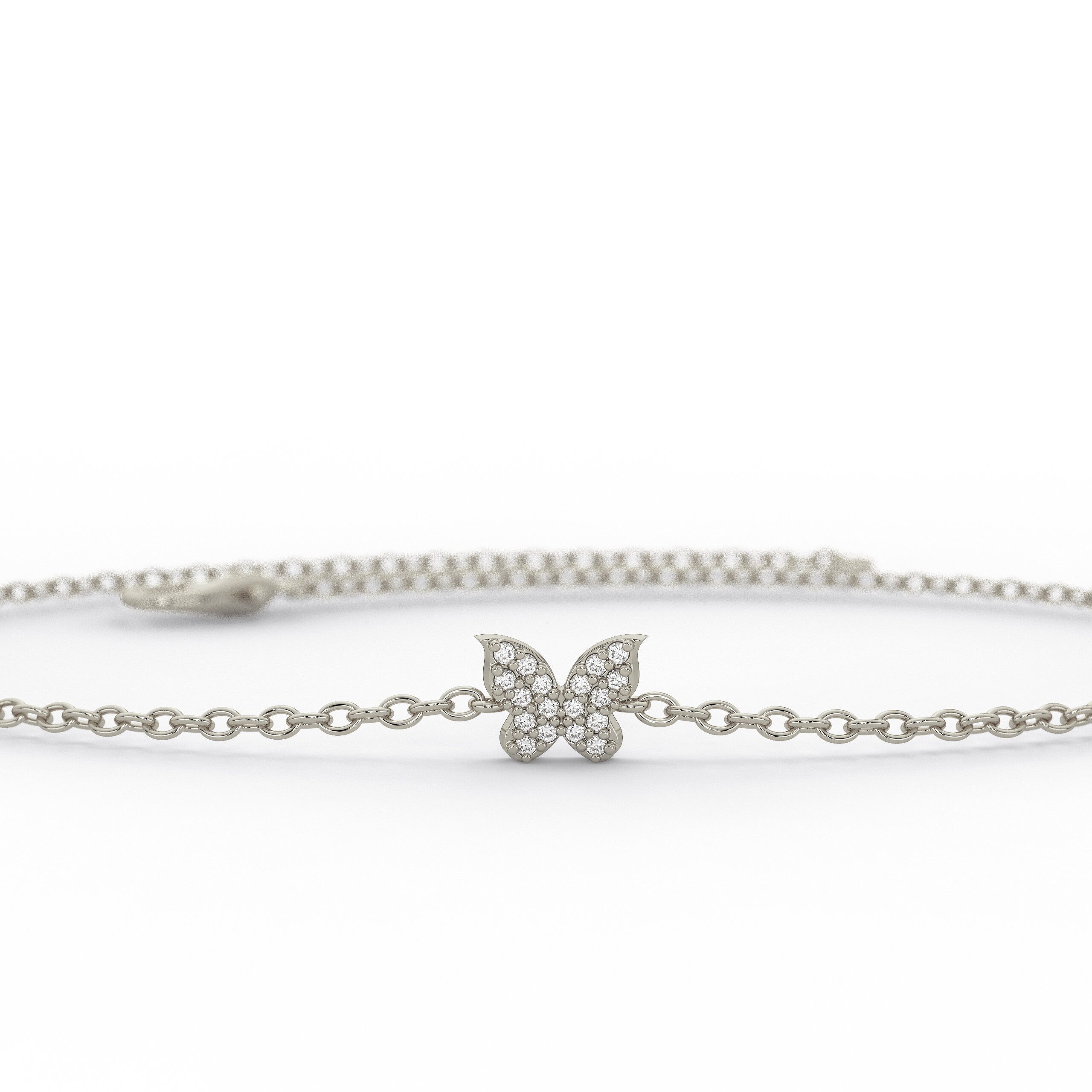 Diamond Butterfly Chain Bracelet / 14k Diamond Pave Butterfly Chain Bracelet / Pave Diamond Charm Bracelet / Graduation Gift / Birthday Gift