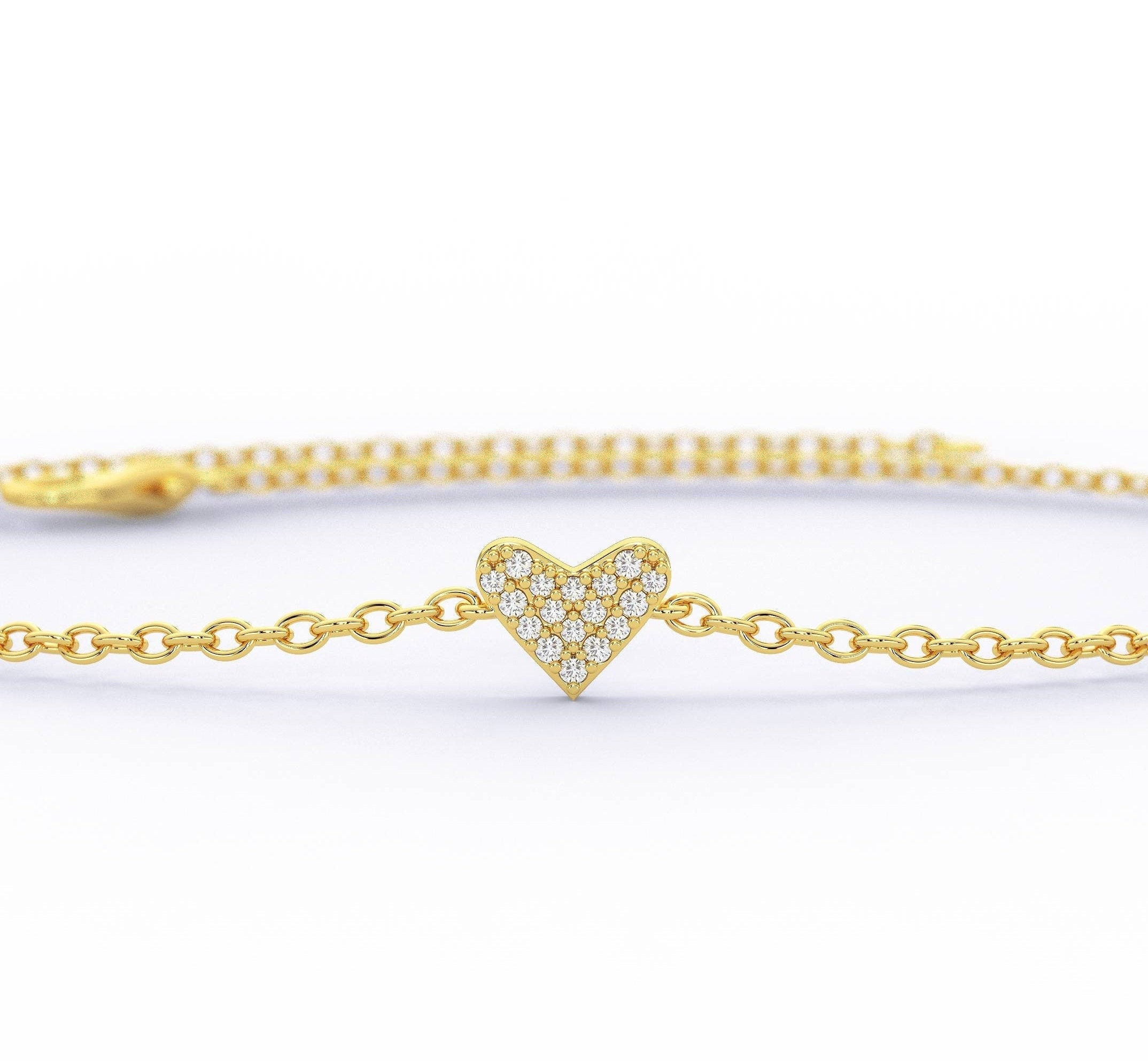 Diamond Heart Bracelet / 14k Diamond Heart Bracelet / Dainty Heart Bracelet / Holiday Gift