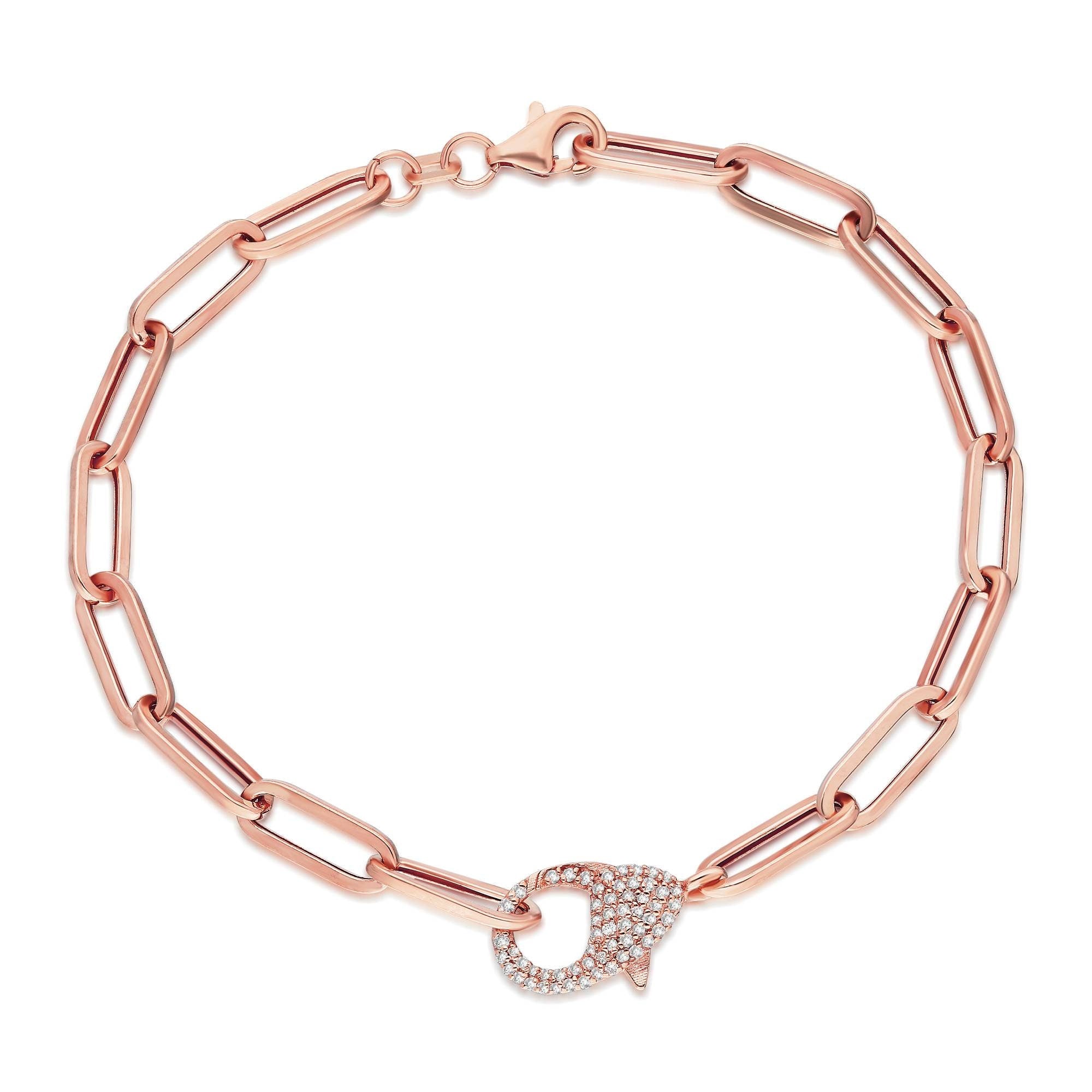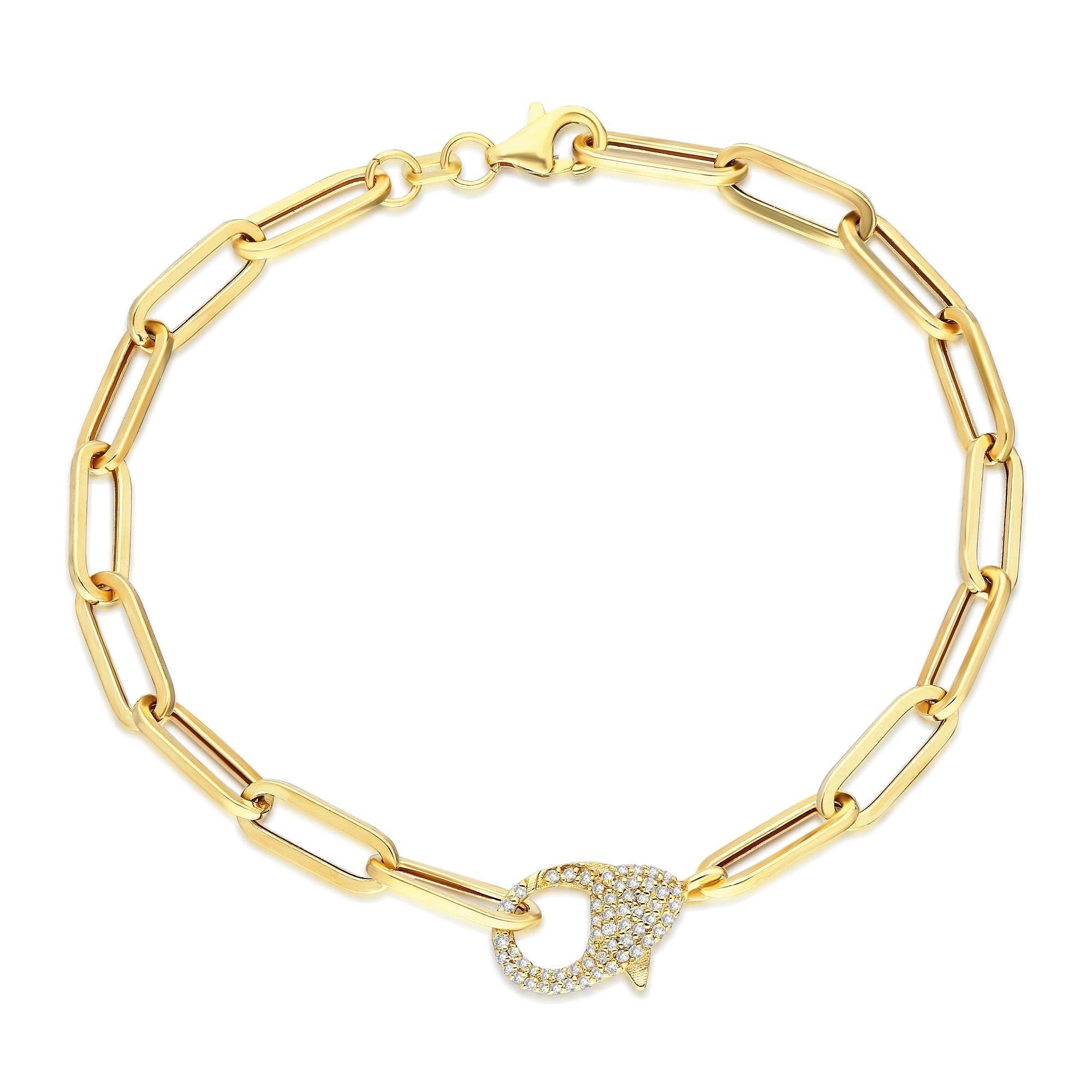 This 14k and diamond lobster claw paperclip bracelet is perfect for layering or to gift someone special.