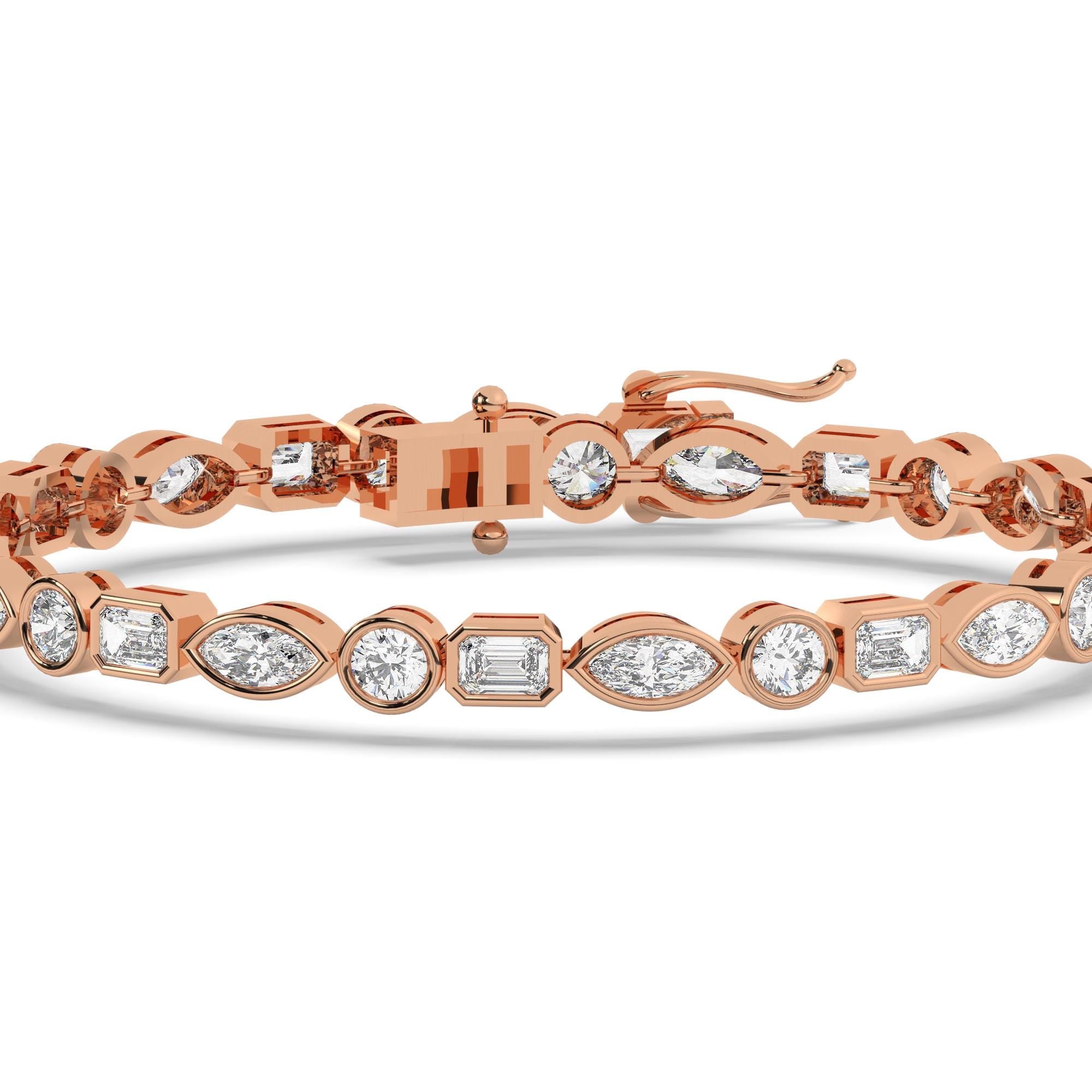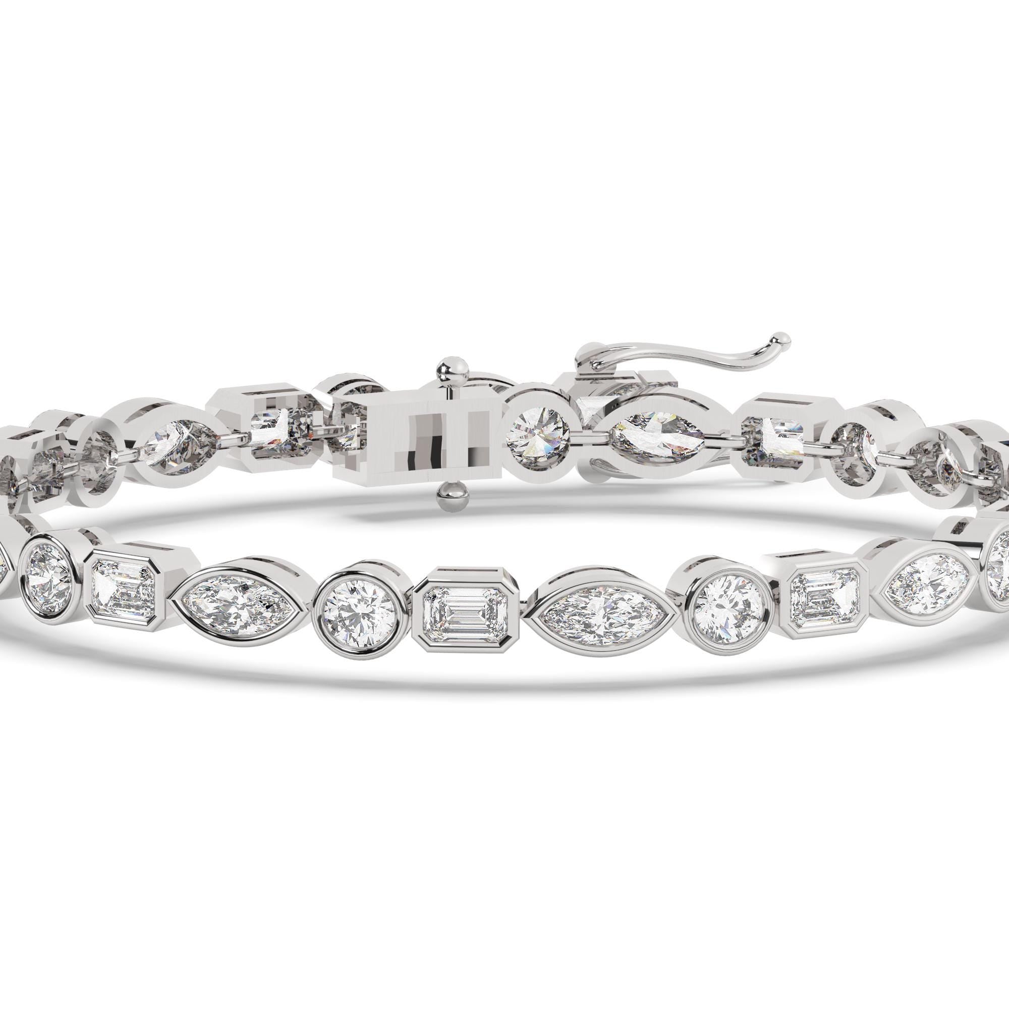 This exquisite multi shape bezel set diamond tennis bracelet is a perfect blend of sophistication and modern style, designed to elevate any ensemble with its captivating allure.