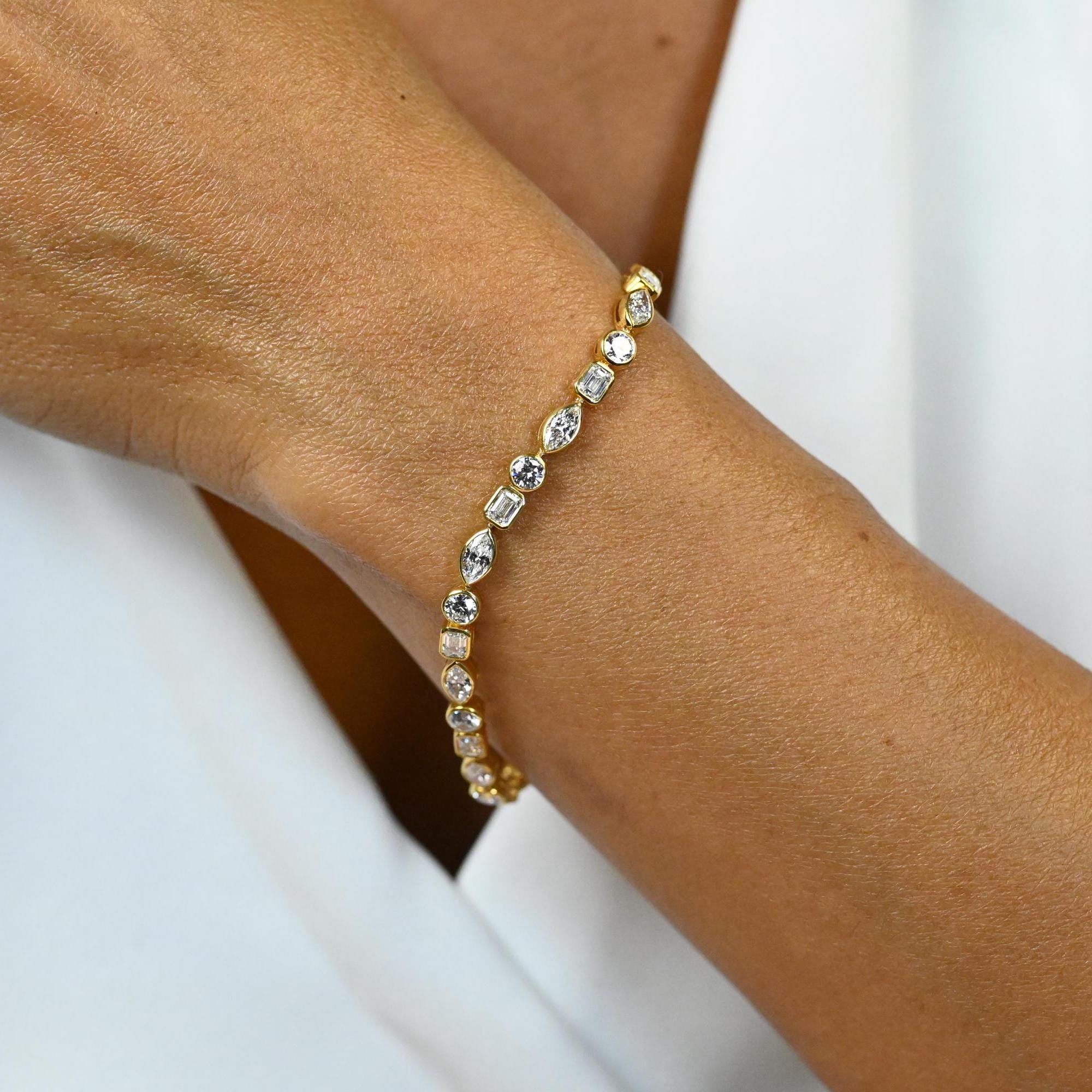 Multi Shape Diamond Bezel Tennis Bracelet / 14k Gold and Diamond Tennis Bracelet / Birthday Graduation Anniversary Gift