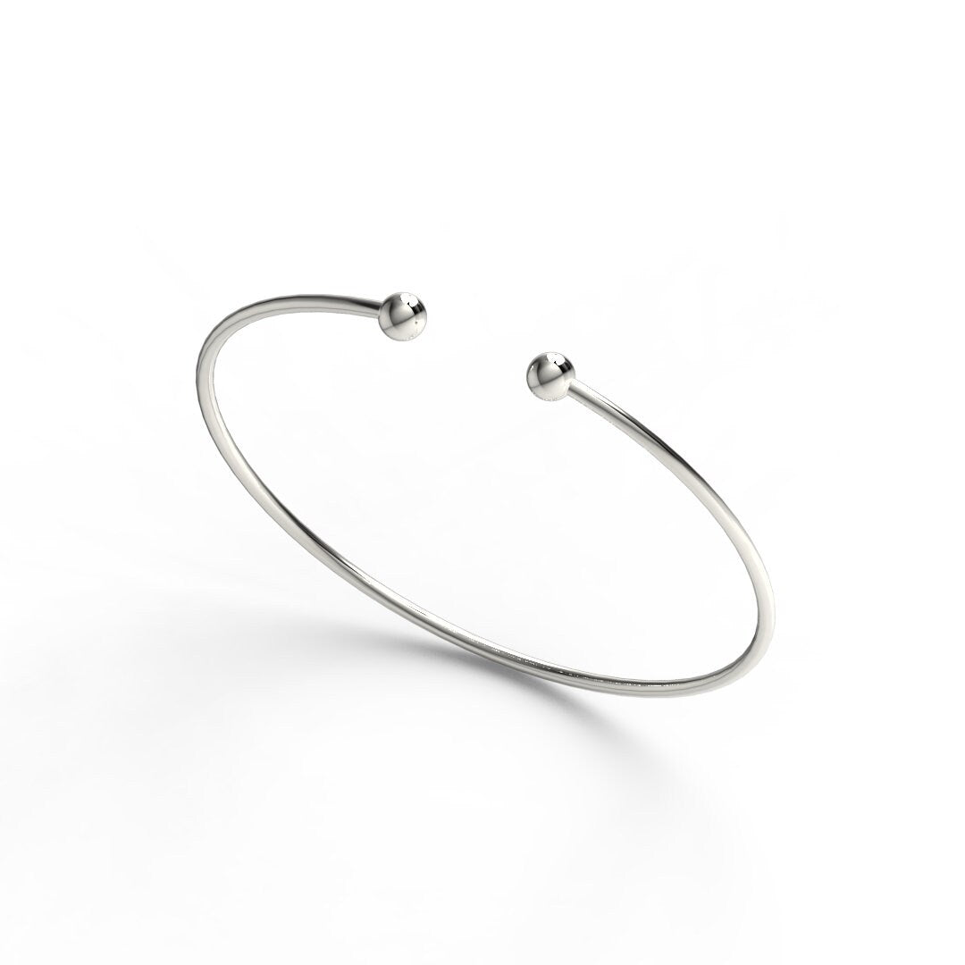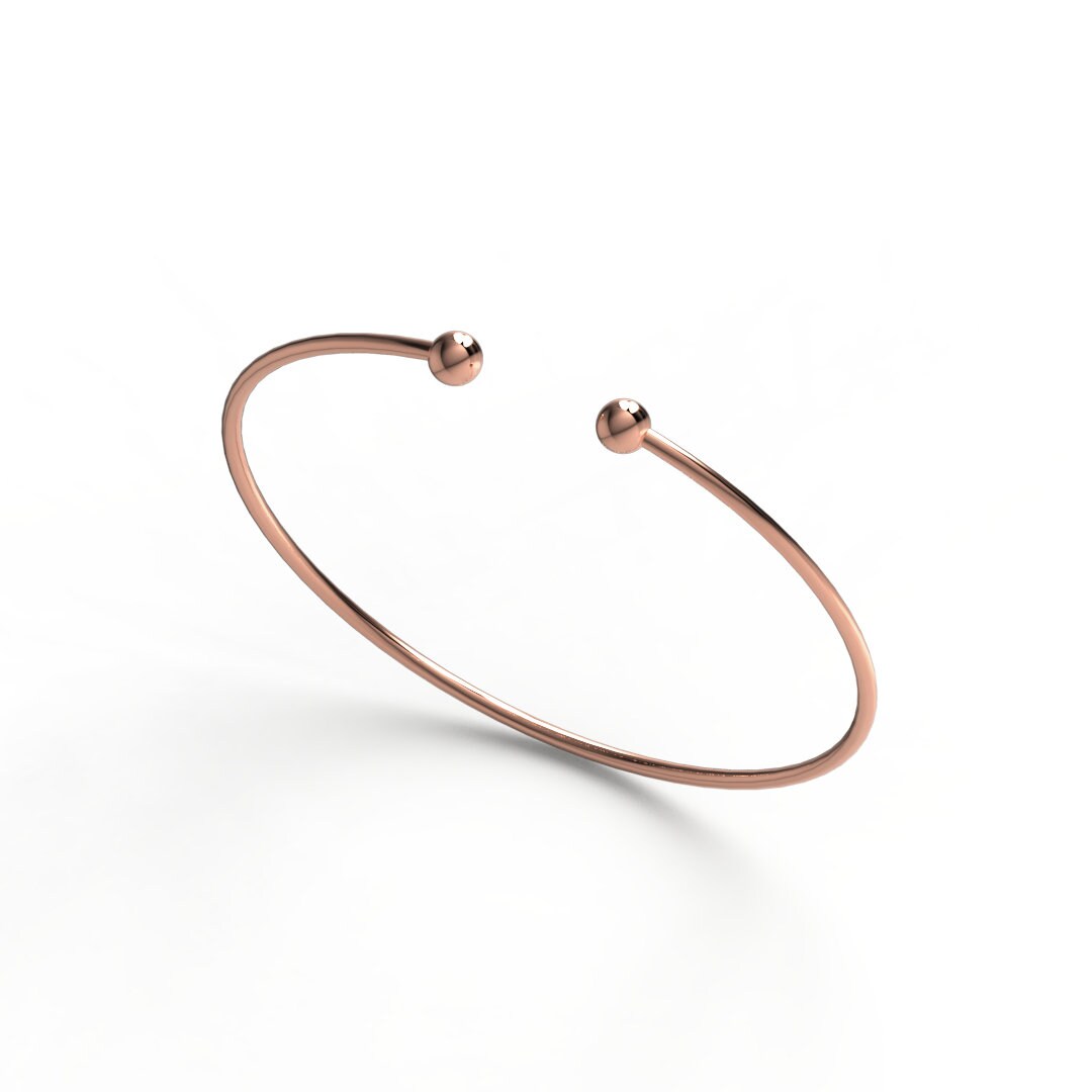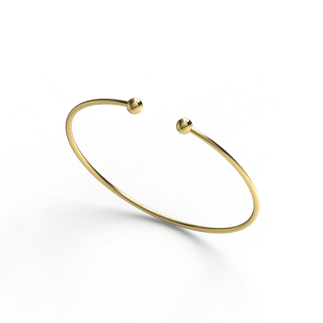 This 14k solid gold wire bangle comes with balls on the cuff opening. Perfect for layering or to gift someone special.