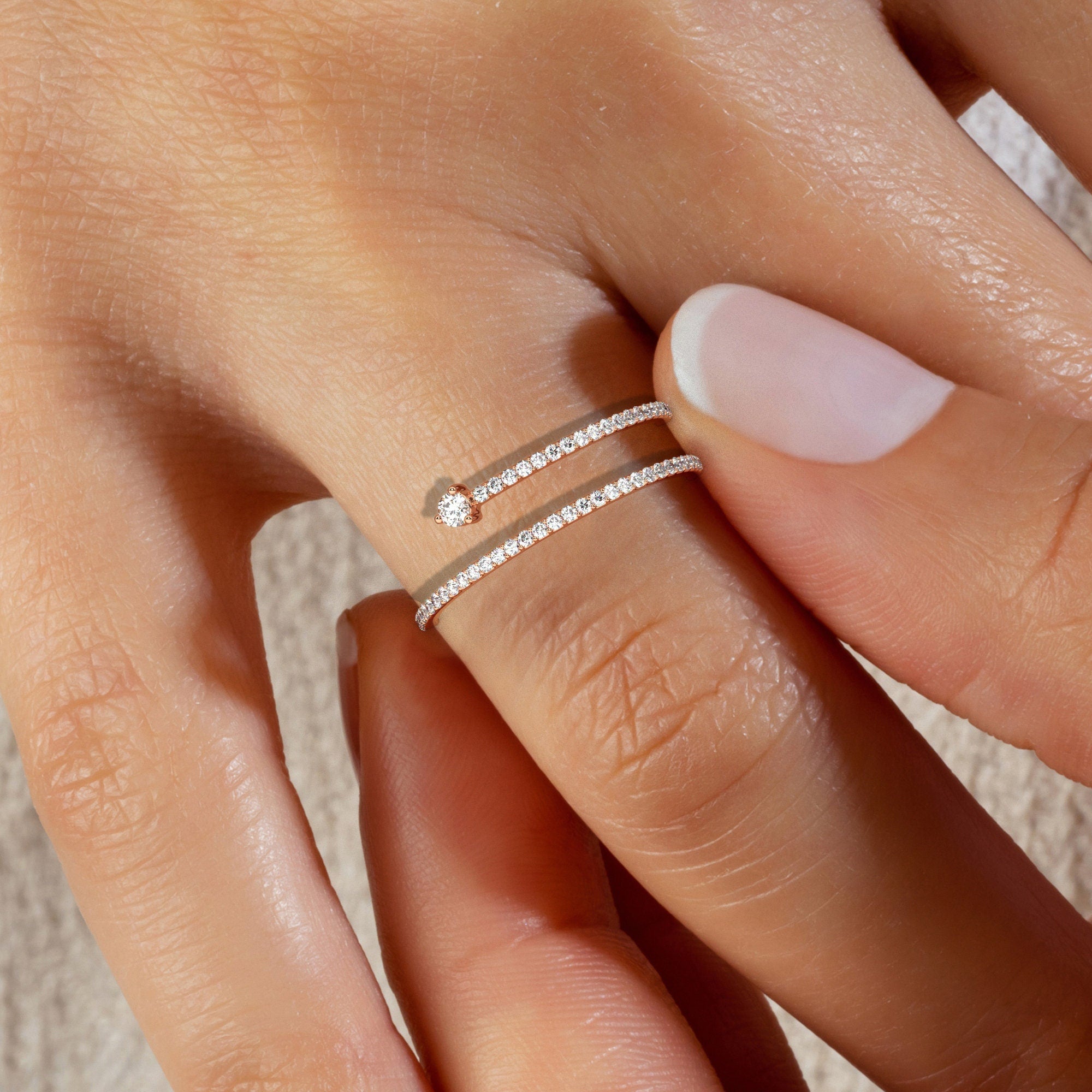 Diamond Wrap Around Stacking Ring / 14k Gold Spiral Diamond Ring / Anniversary Ring / Wedding Band / Bridal Birthday Gift