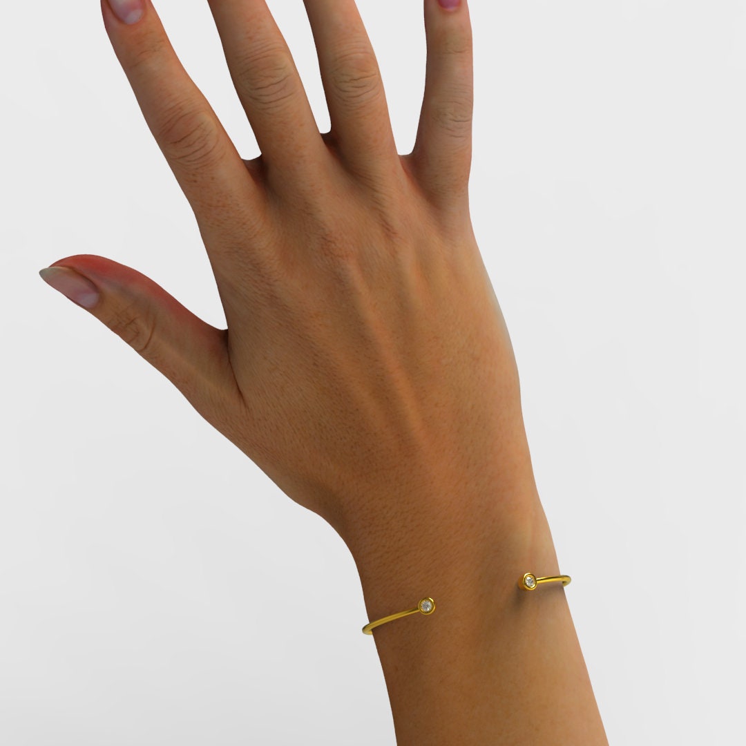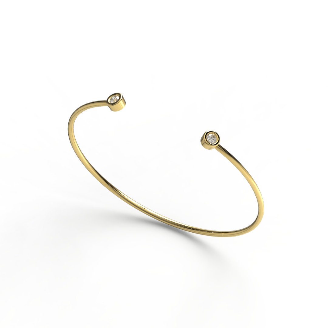 This 14k gold diamond bangle comes with 2 round diamonds. Perfect for layering or to gift someone special.