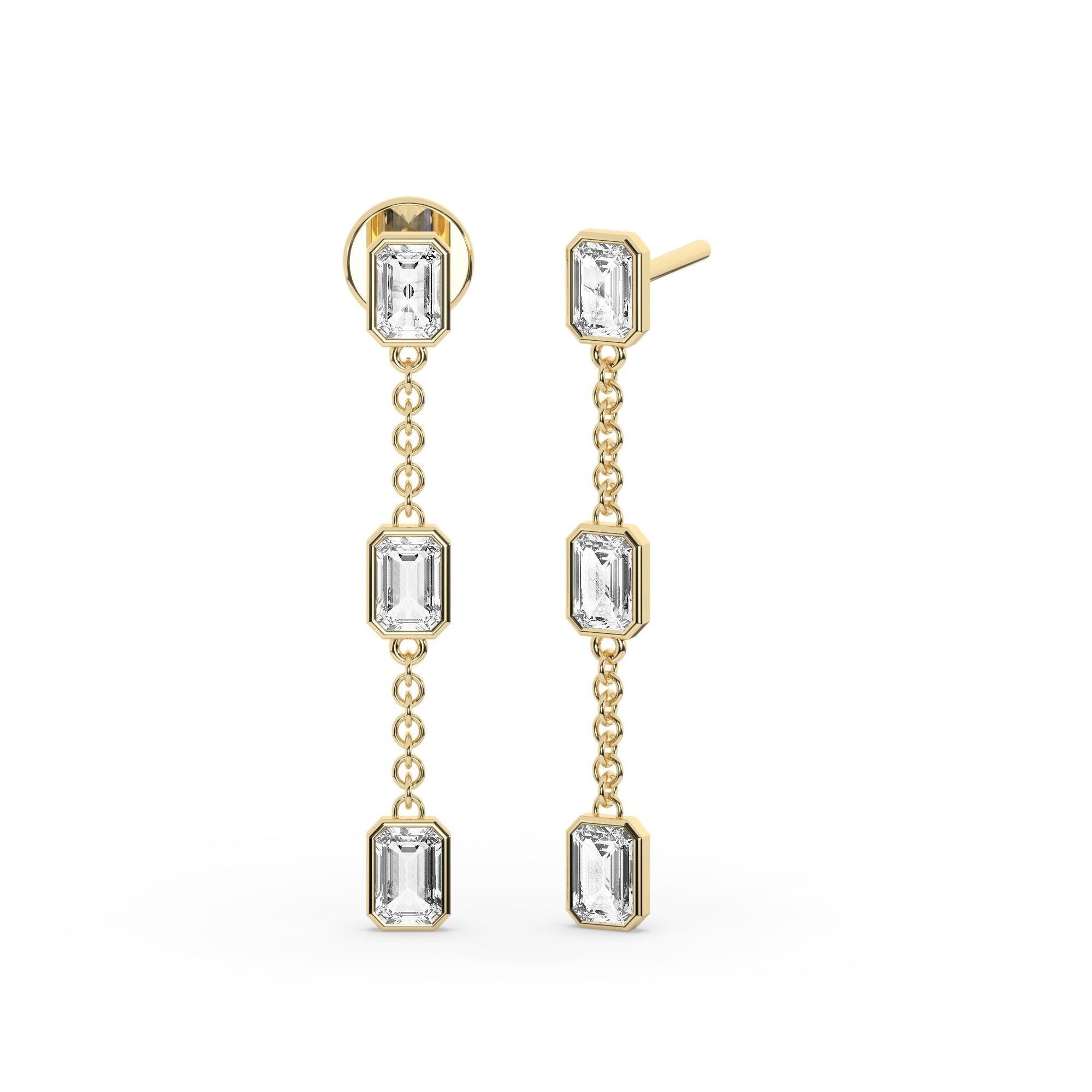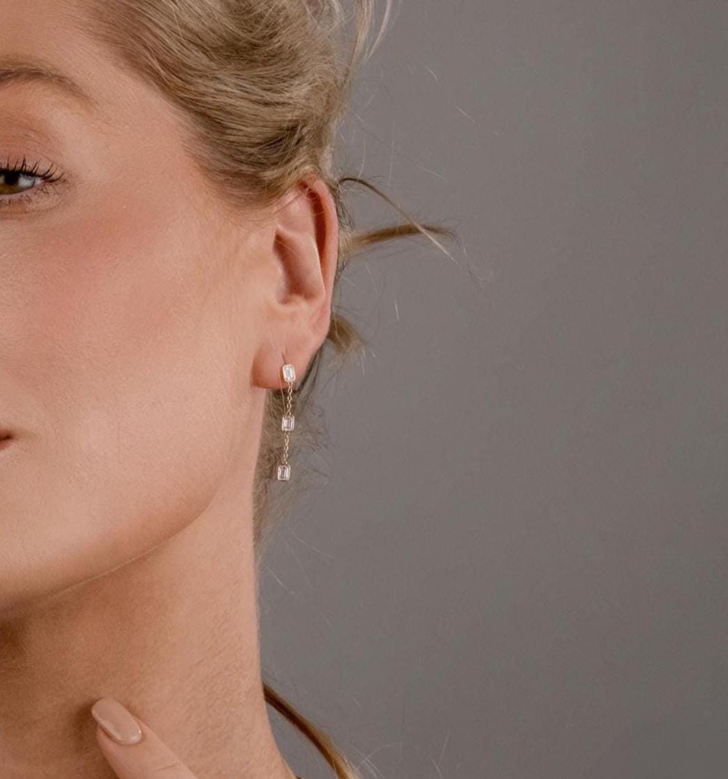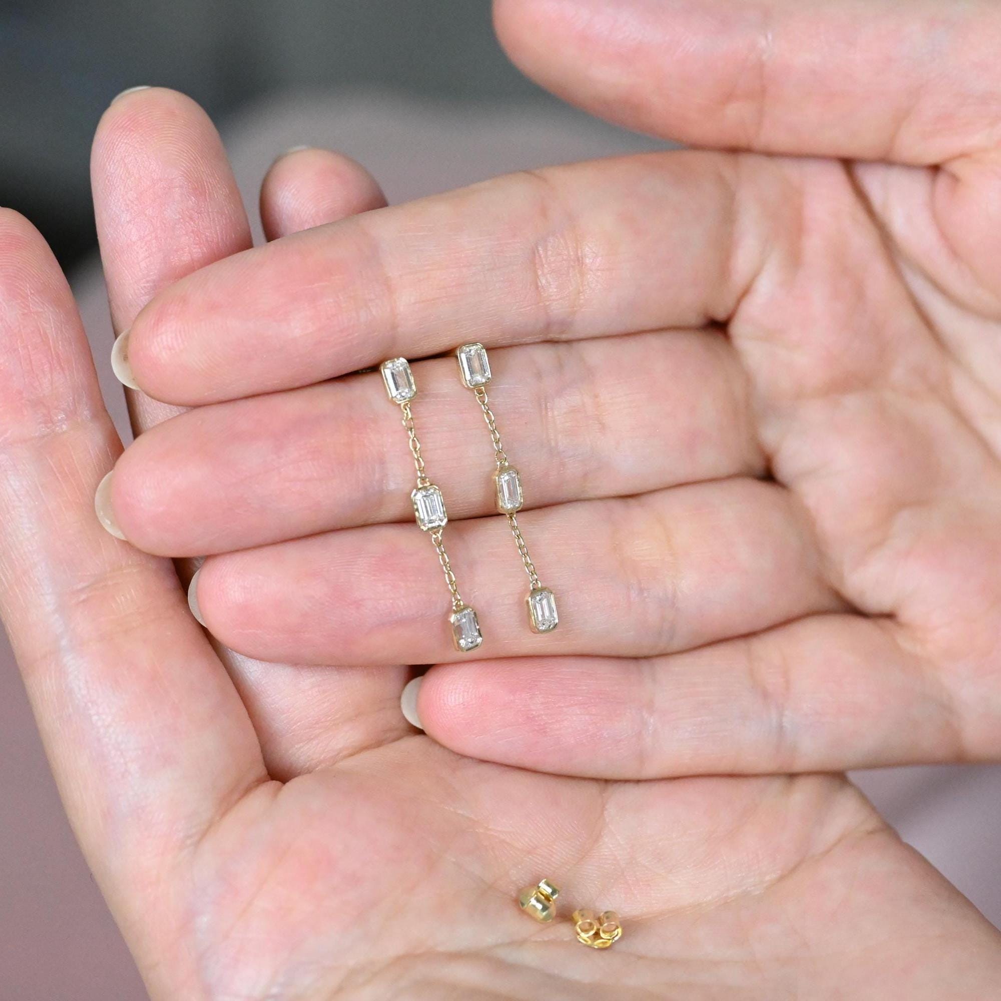 Emerald Cut Bezel Diamond Dangling Earrings / 14k Gold Diamond Earrings / Anniversary Gift / Birthday Gift /Graduation Gift / Bridal Gift