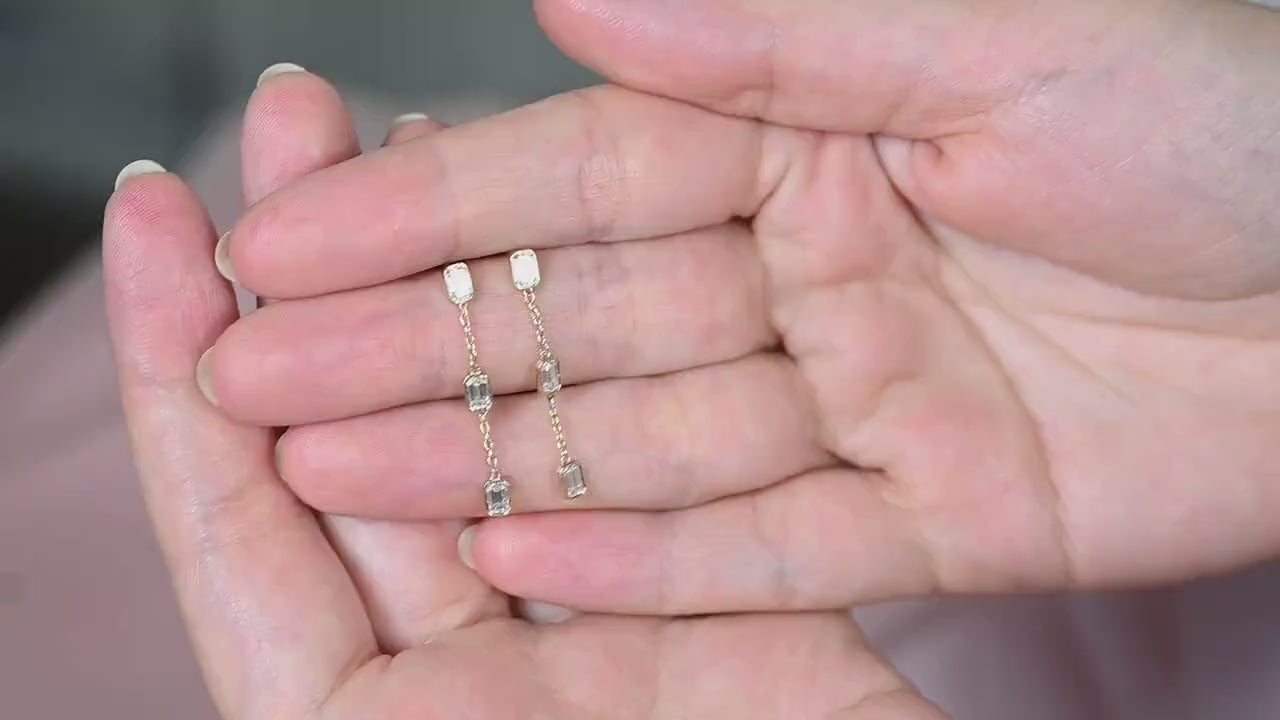 These earrings sound stunning and versatile, perfect for multiple occasions! Emerald-cut dangling earrings in 14k gold with diamonds offer a timeless and sophisticated look. They make an excellent gift for various milestones, including anniversaries, birthdays, graduations, and bridal celebrations.