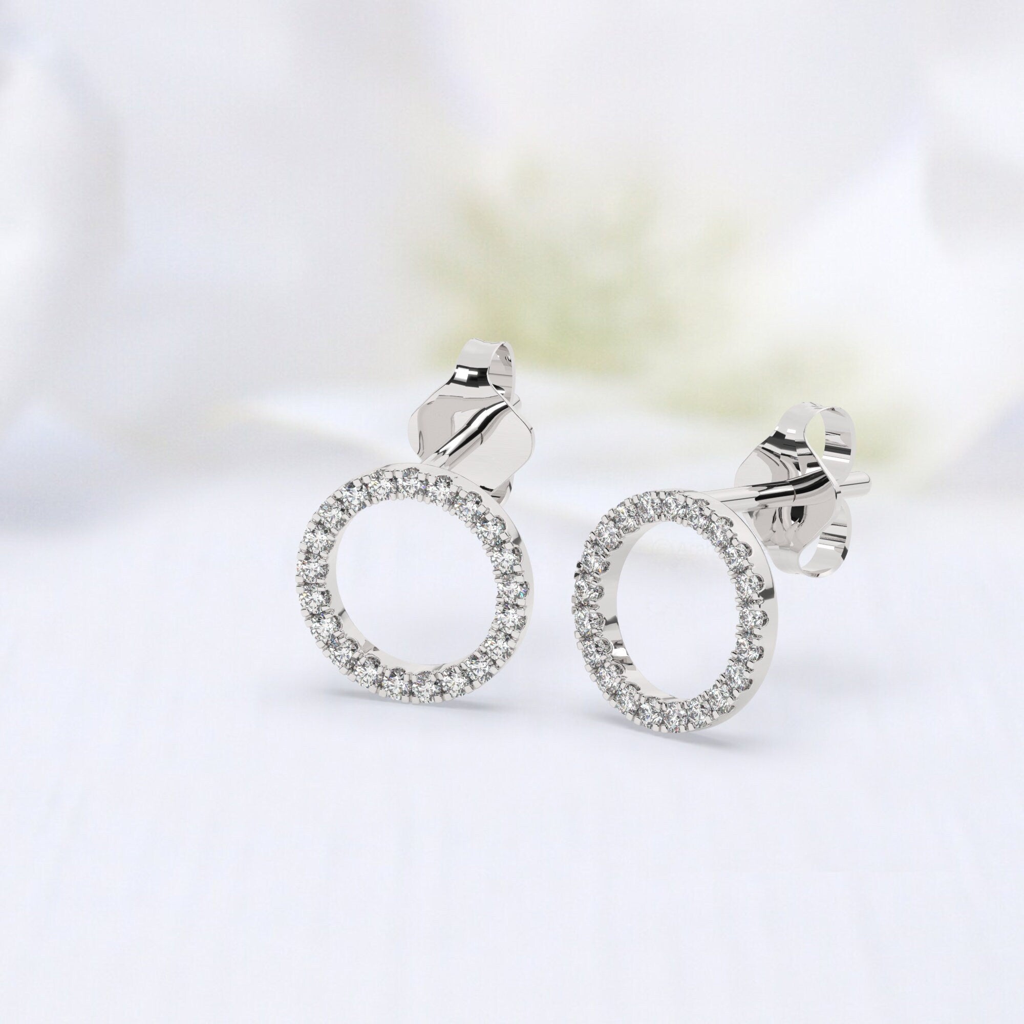 These open diamond circle stud earrings are handcrafted in 14k gold and look great dressed up or down.
