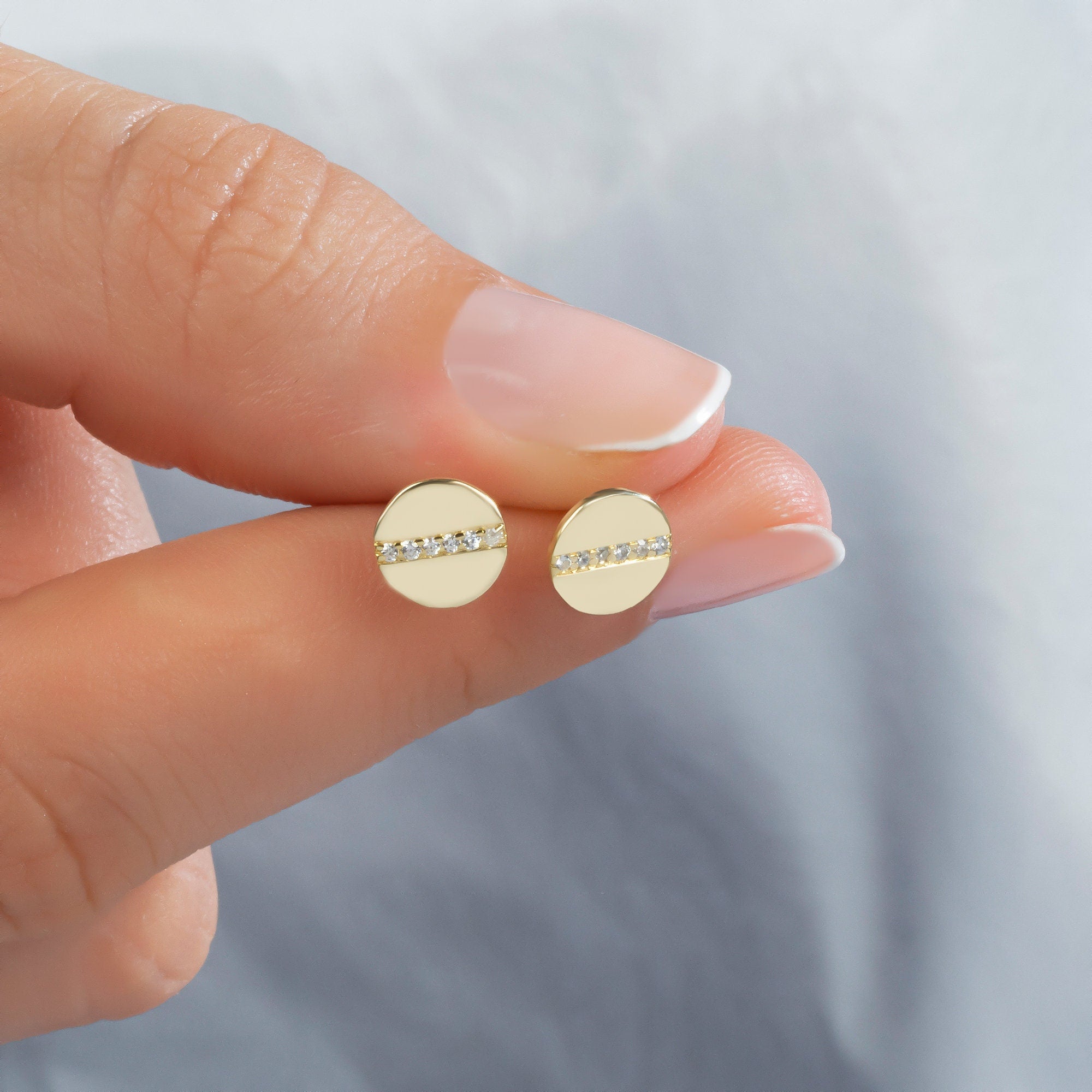 Diamond Disc Stud Earrings / 14k Gold Diamond Bar Stud Earrings/ Diamond Bar Studs / Diamond Anniversary Gift / Birthday Gift