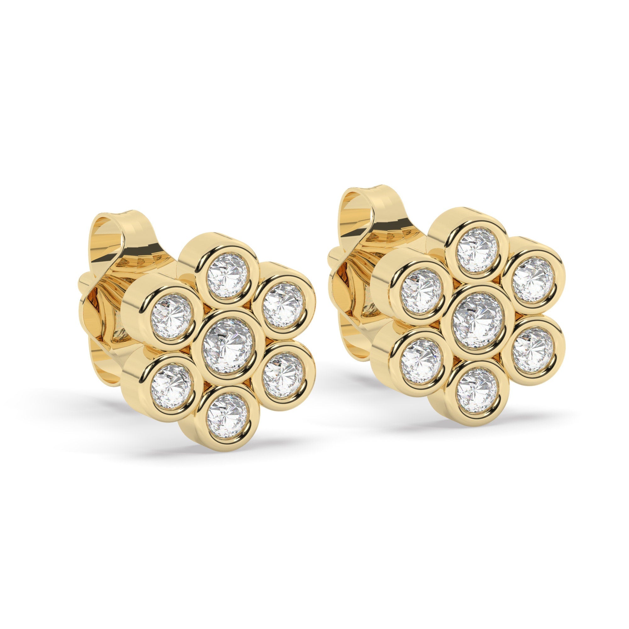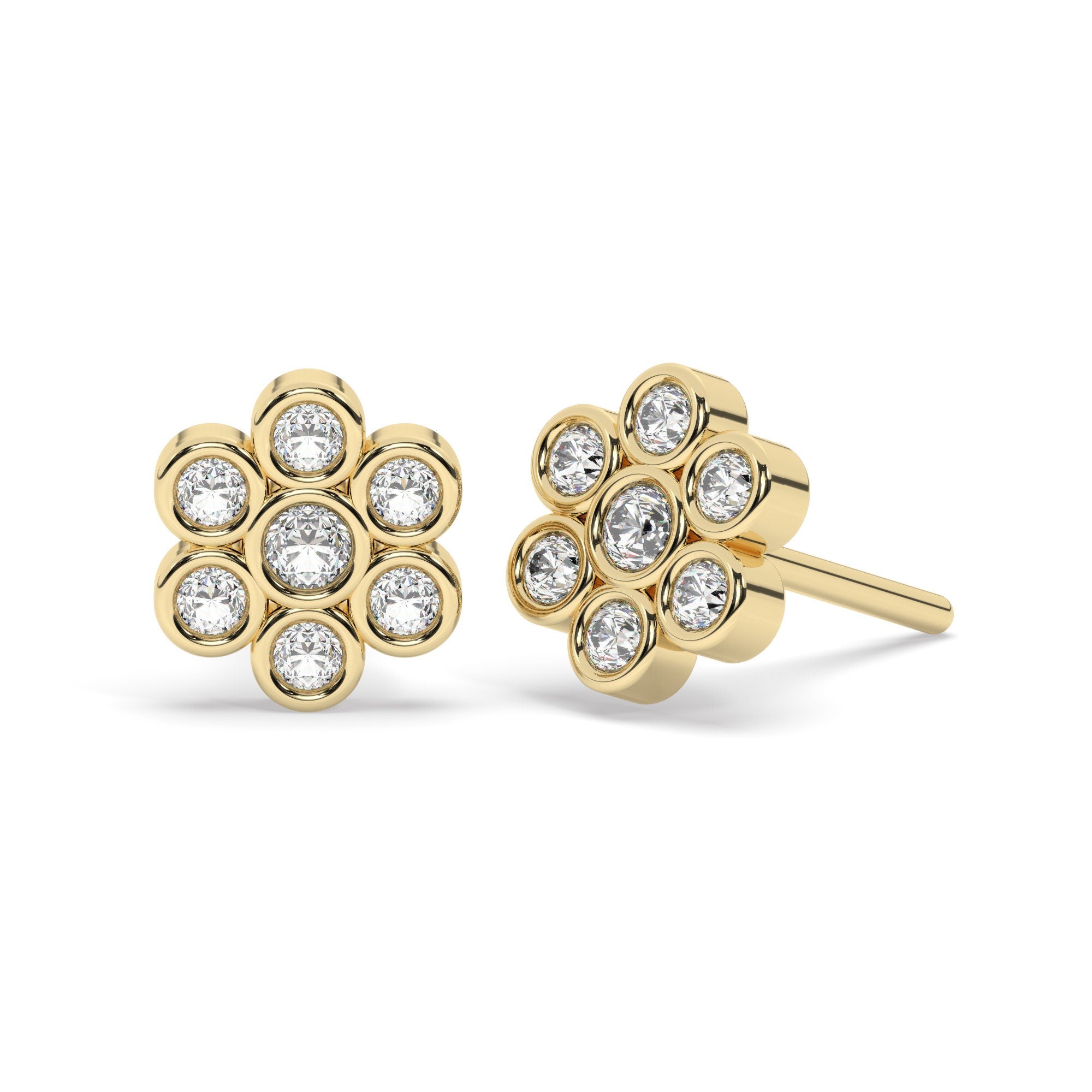 These 14k gold diamond flower stud earrings are set with a sparkling diamond.
