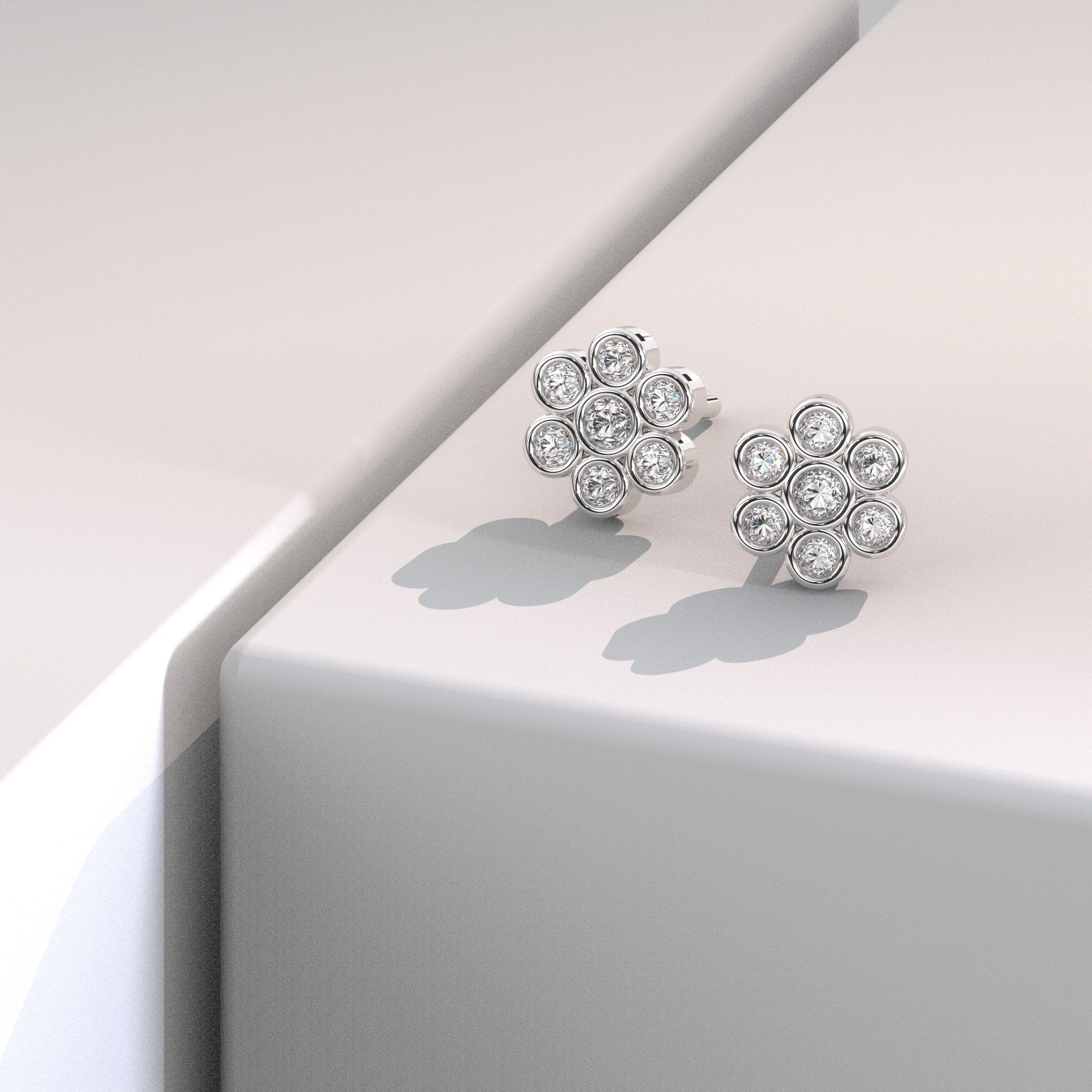 Diamond Flower Studs / 14k Gold Diamond Flower Stud Earrings / Diamond Studs Earrings / Graduation Gift / Birthday / Anniversary Gift