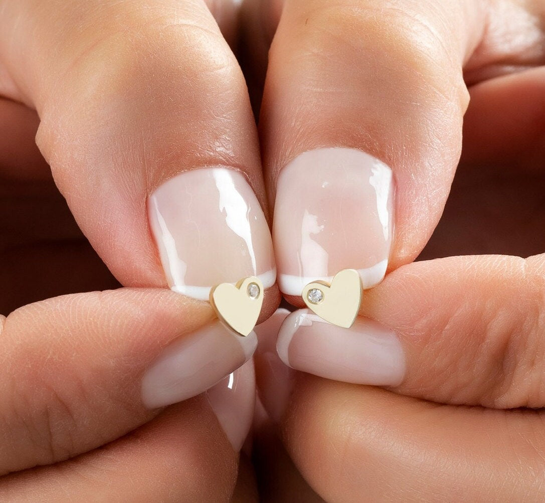 Diamond Heart Studs / 14k Gold Diamond Heart Earrings / Solitaire Diamond Heart Studs / Graduation Gift / Birthday / Anniversary Gift