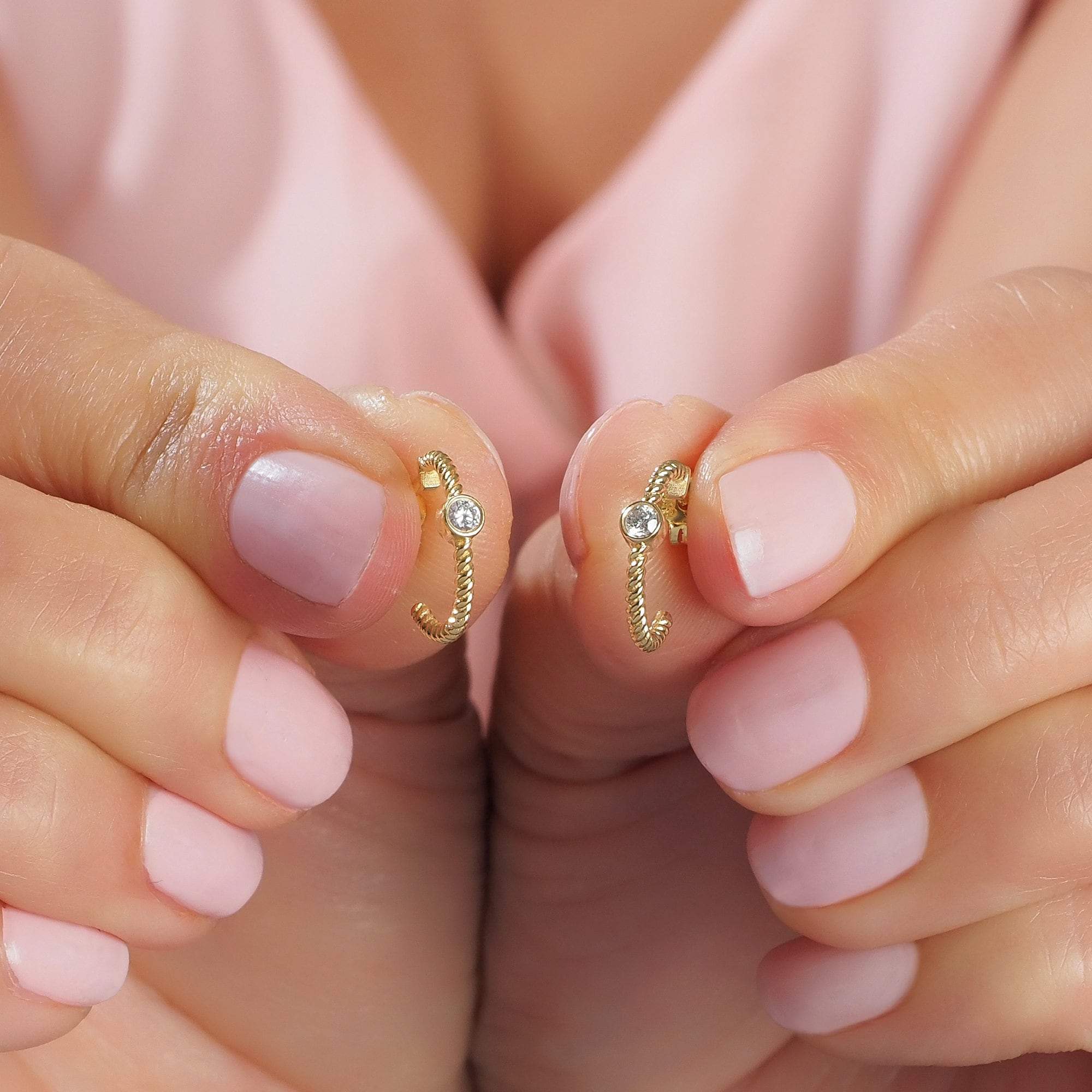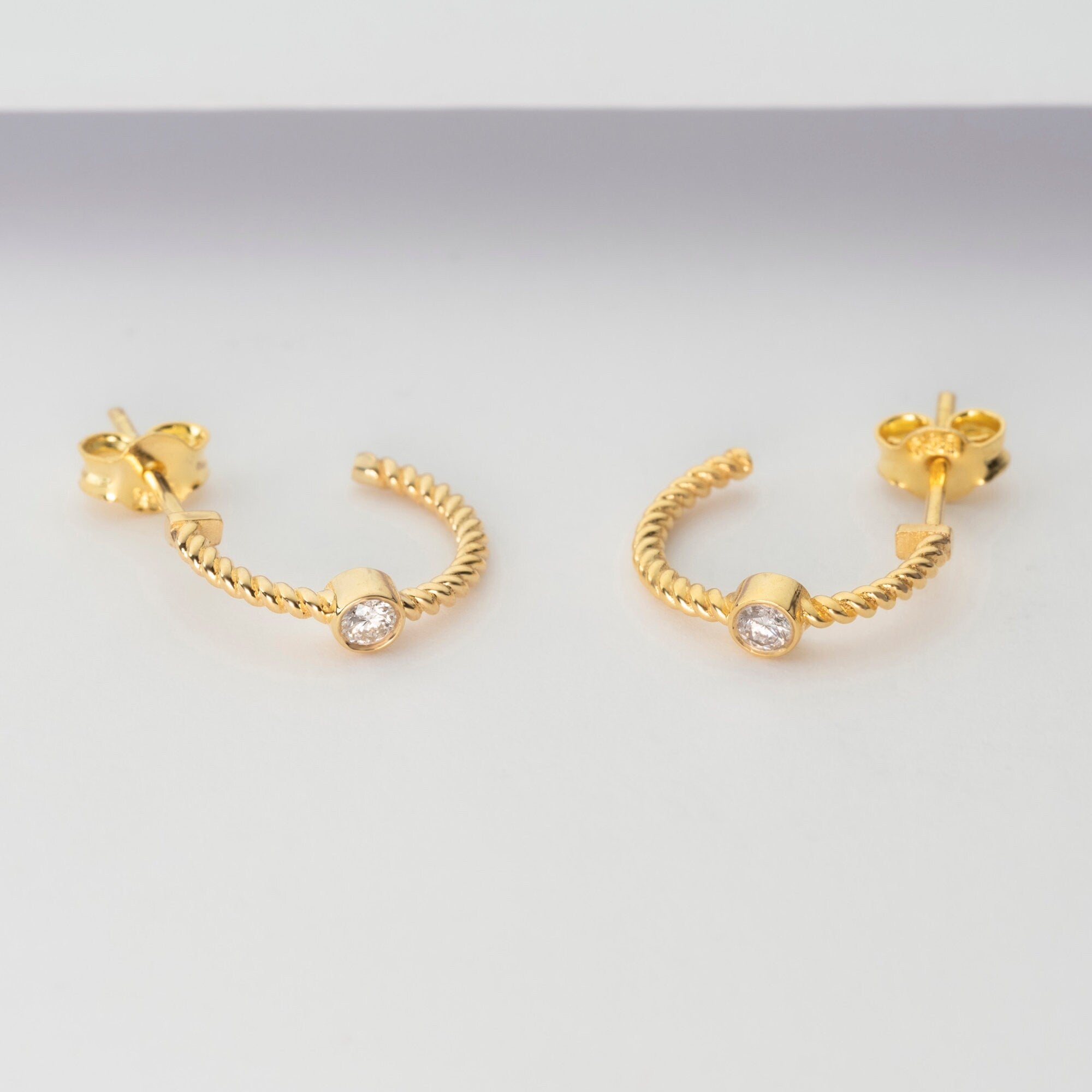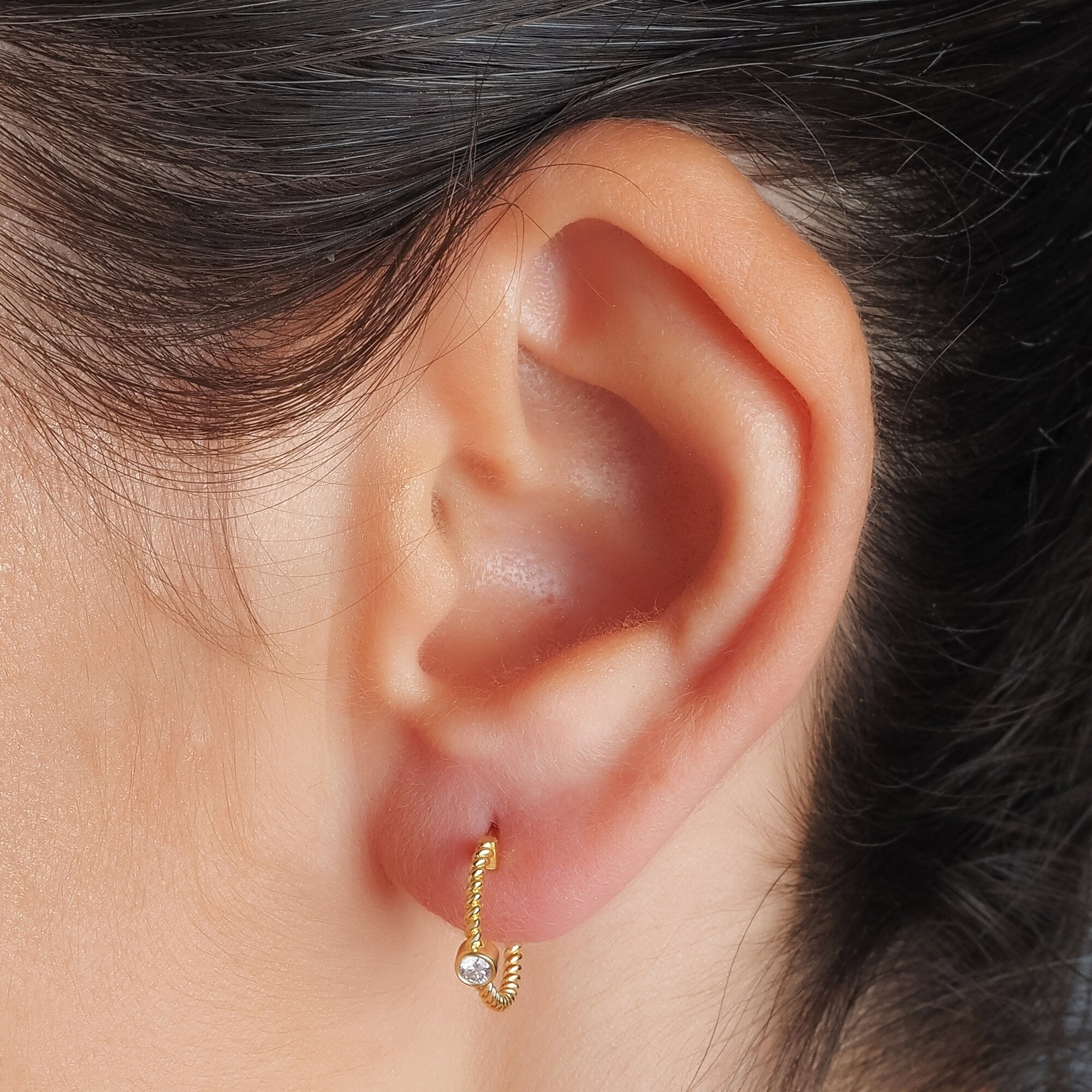 Diamond Hoop Earrings / 14k Gold Diamond Hoops / Diamond Huggie Earrings/ Gift