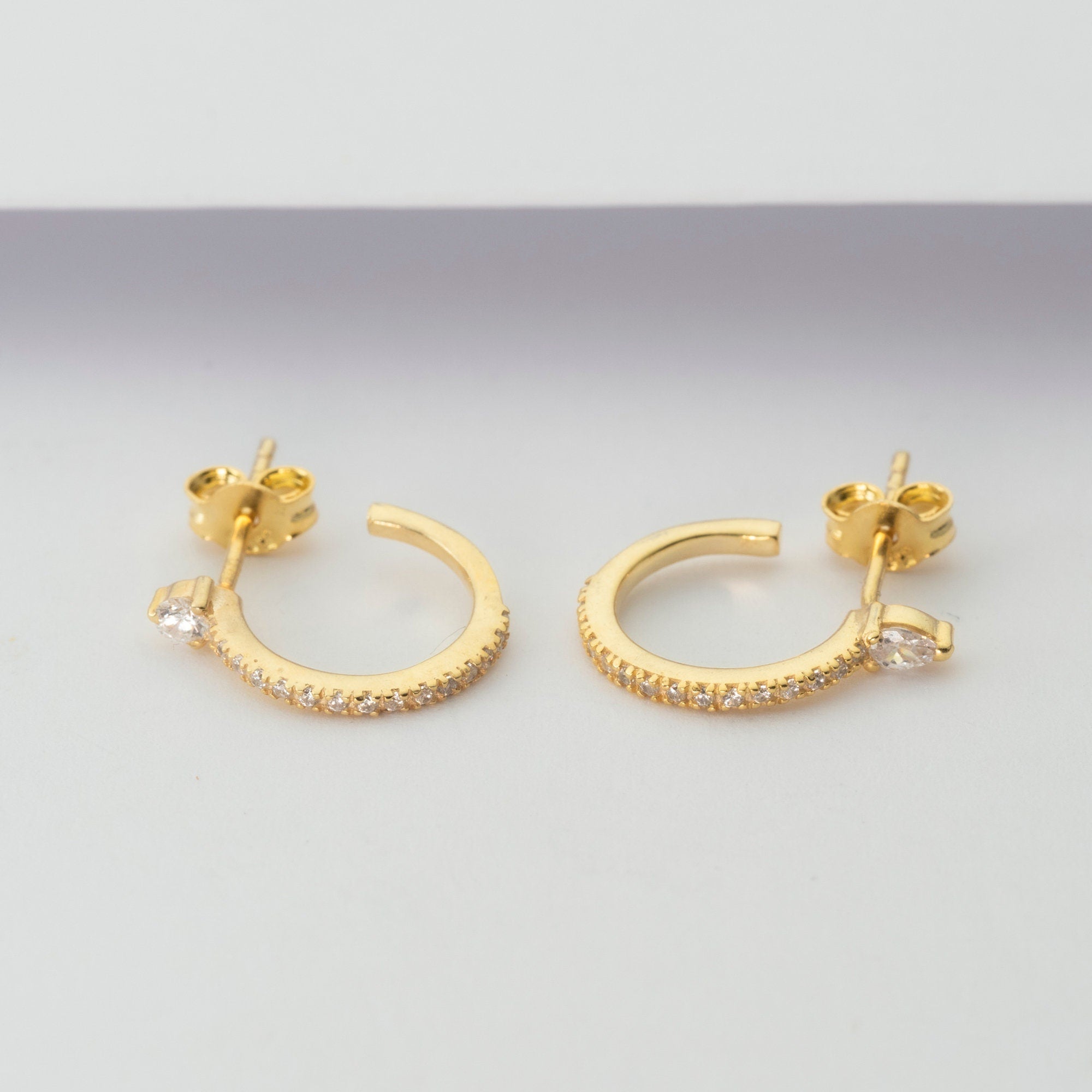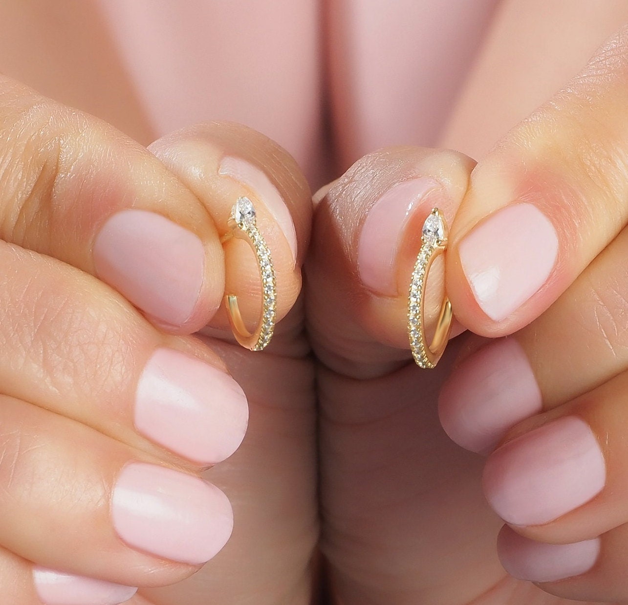 Diamond Hoop Earrings / 14k Gold Diamond Hoops / Diamond Huggie Earrings