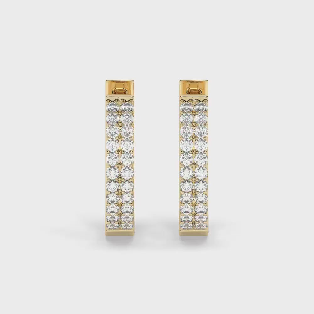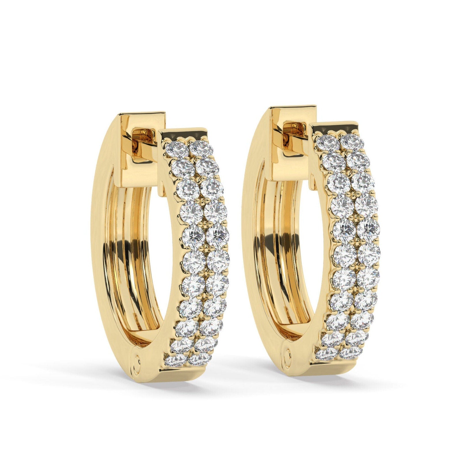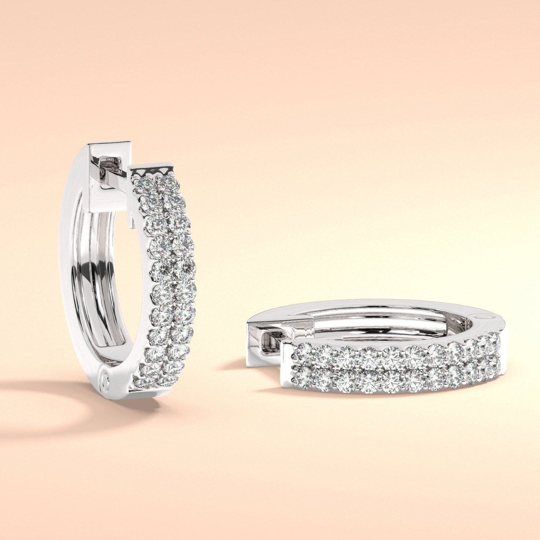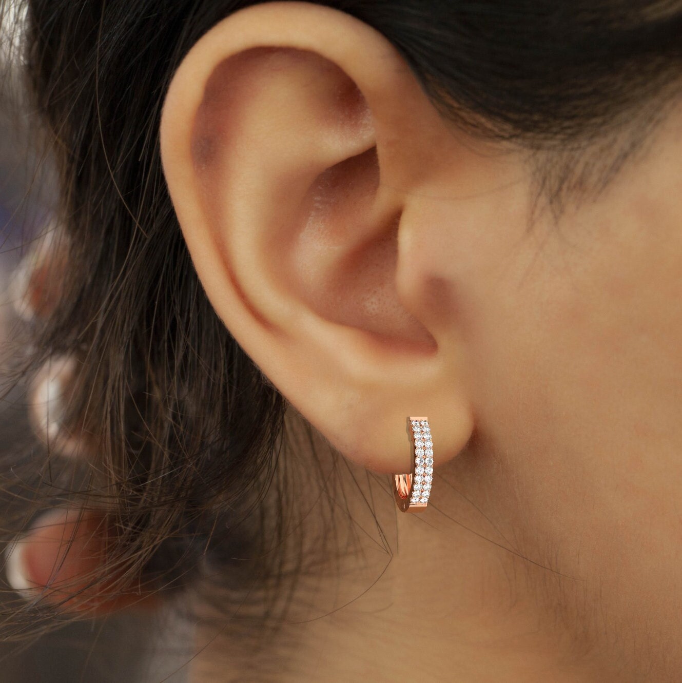 Diamond Hoop Earrings / 14k Gold Double Row Diamond Hoop Earrings / Diamond Huggie Earrings/ Gift