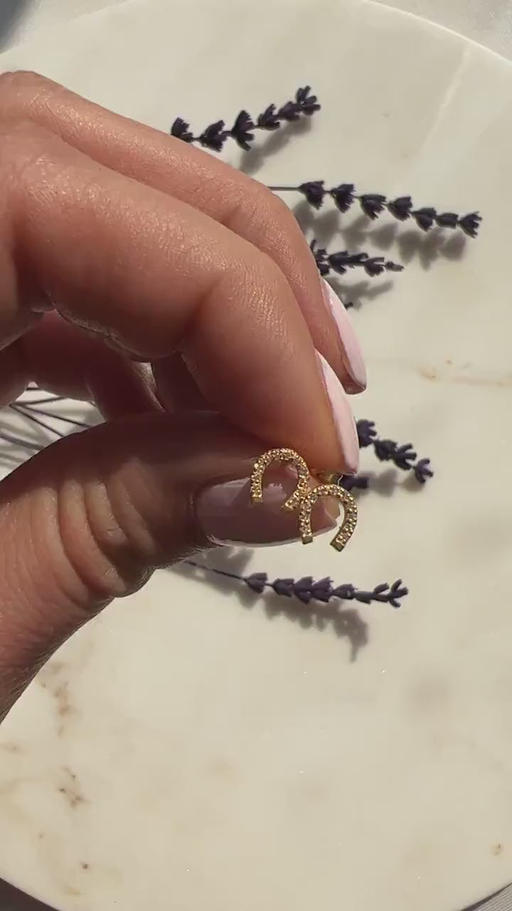 Diamond Horseshoe Stud Earrings / 14k Diamond Stud Earrings / Dainty Diamond Studs / Birthday Gift / Bridal Gift / Graduation Gift