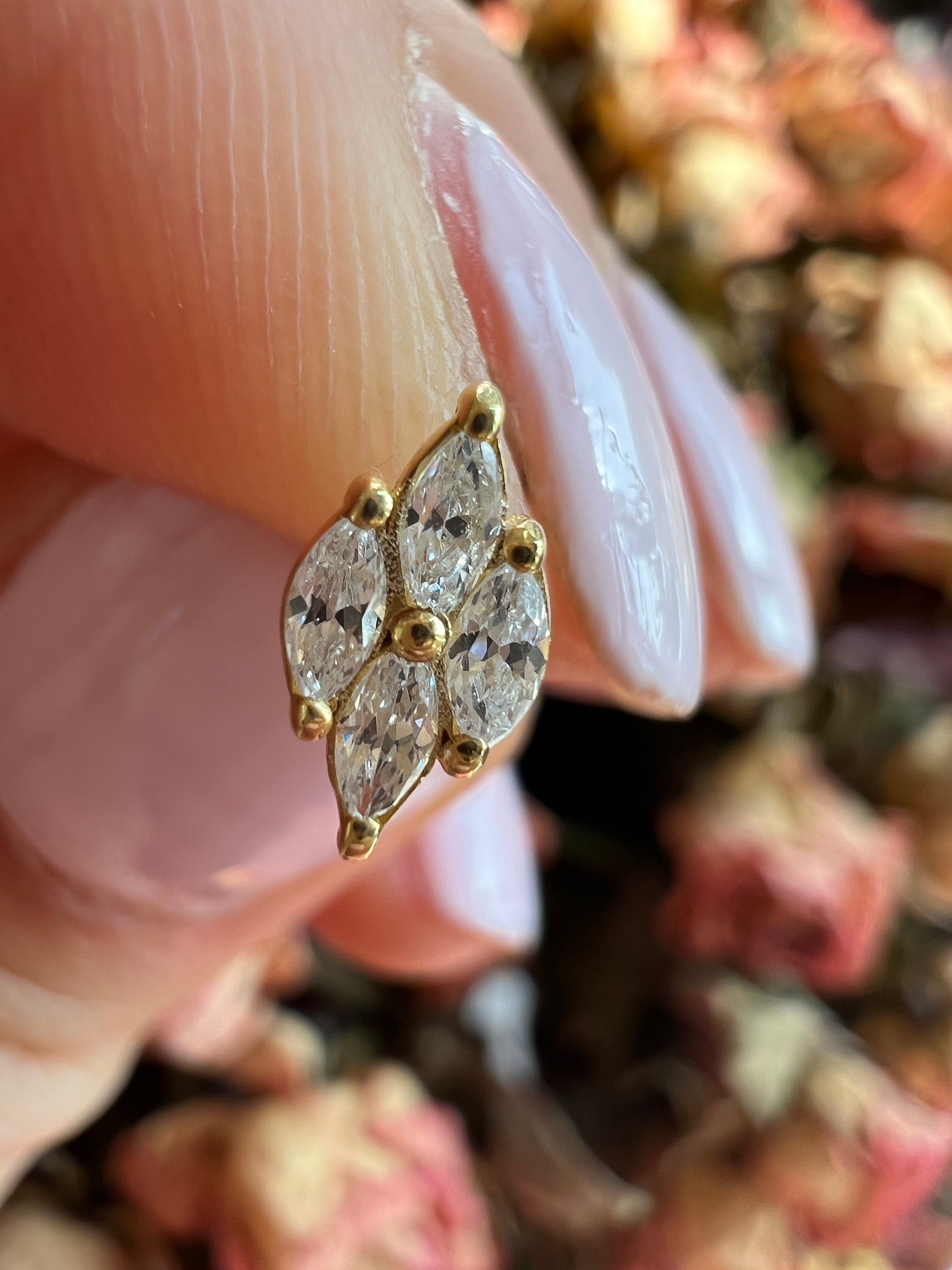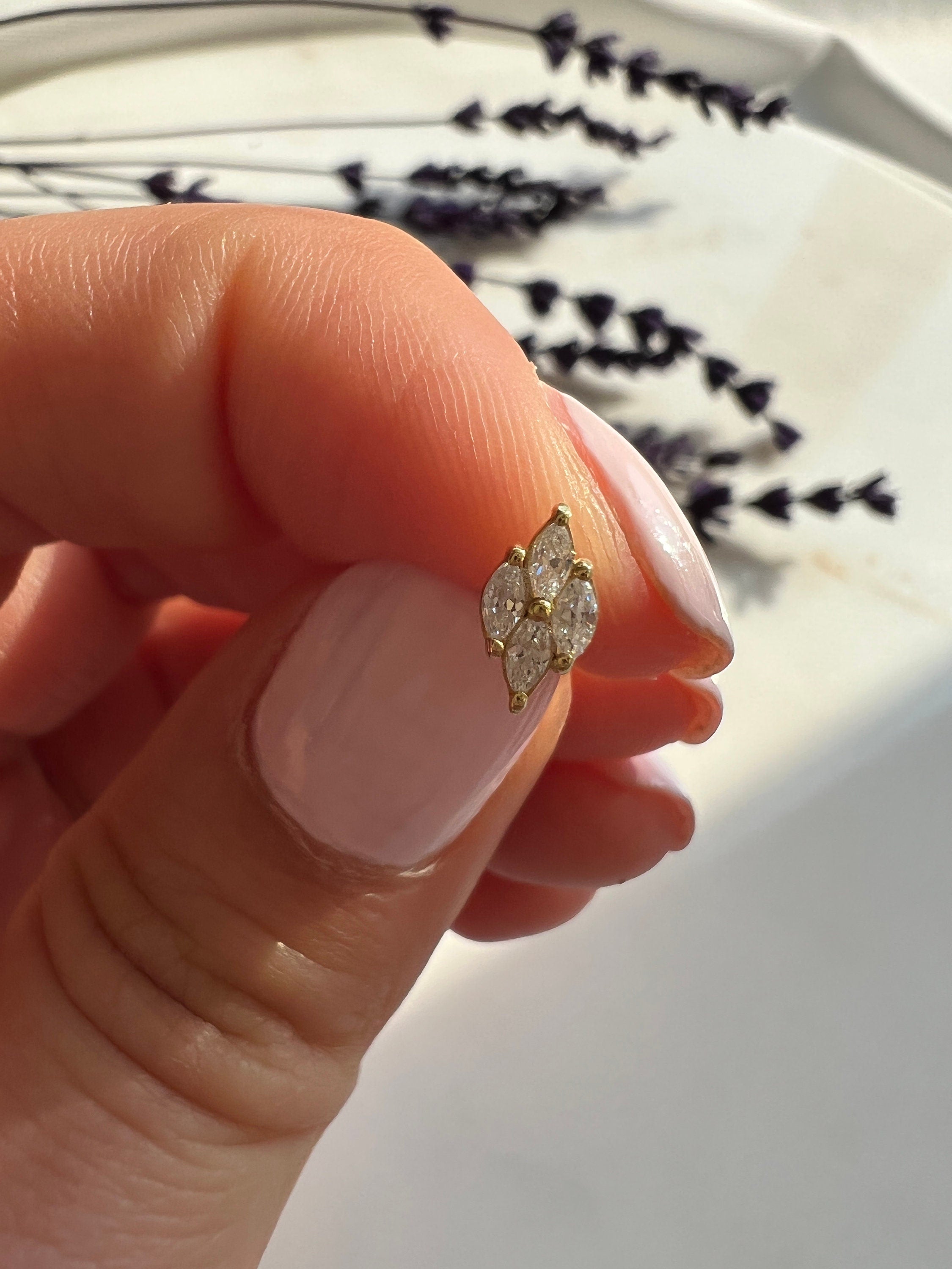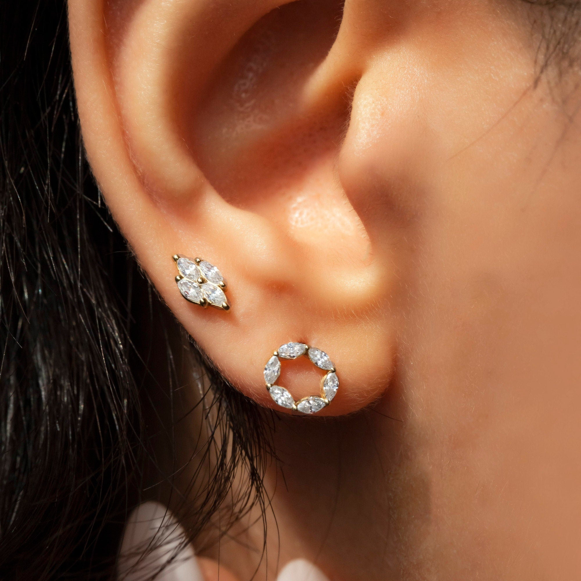 These marquise diamond stud earrings are great for minimalist look or ideal as second or third hole stud. A great gift for yourself or a loved one.