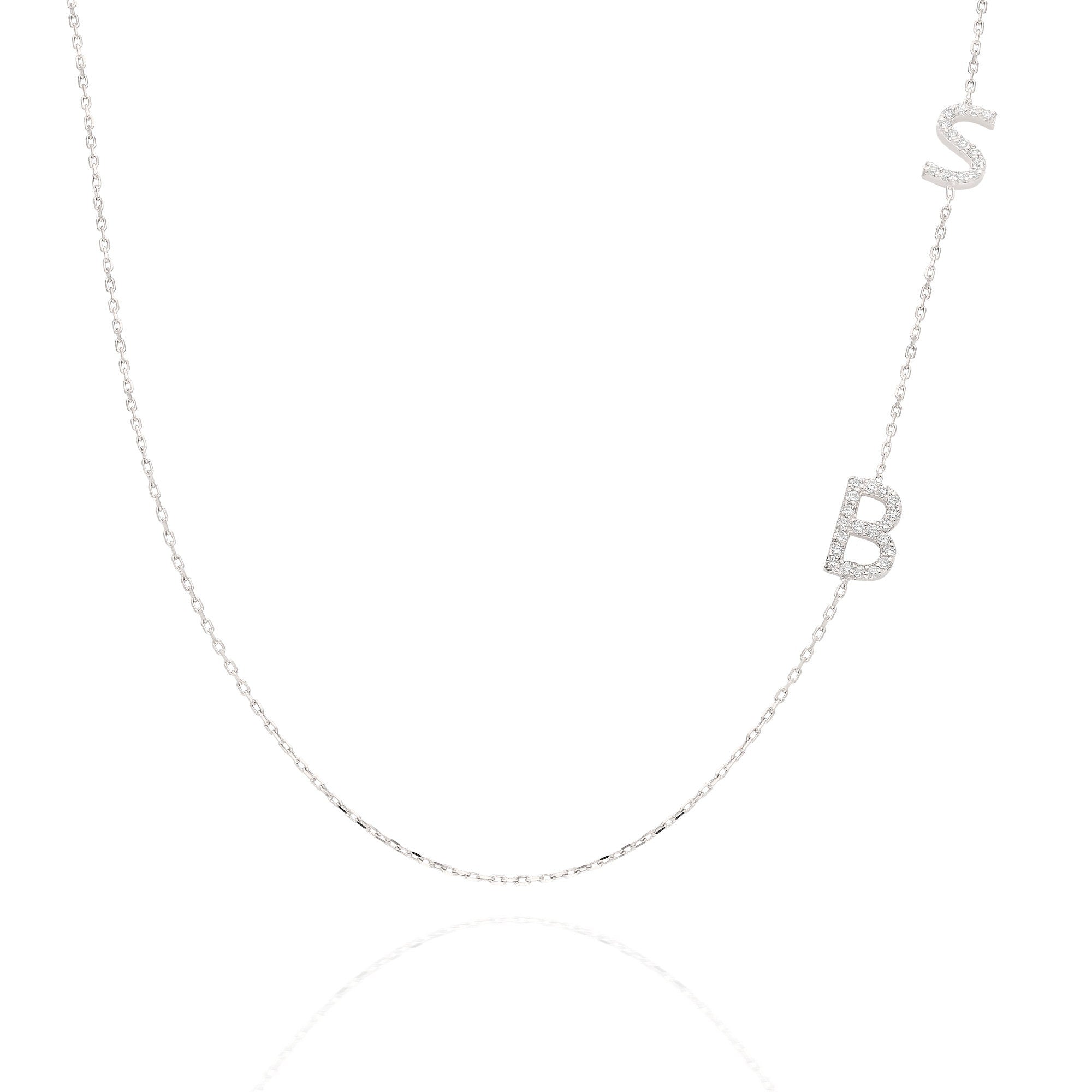 This diamond initial necklace comes with 2 to 7 spaced pave diamond initials. You can order it in 14k solid gold or in sterling silver with diamonds. Perfect for layering or to gift someone special.