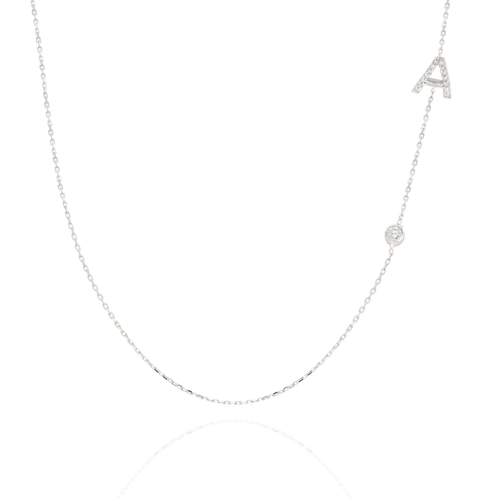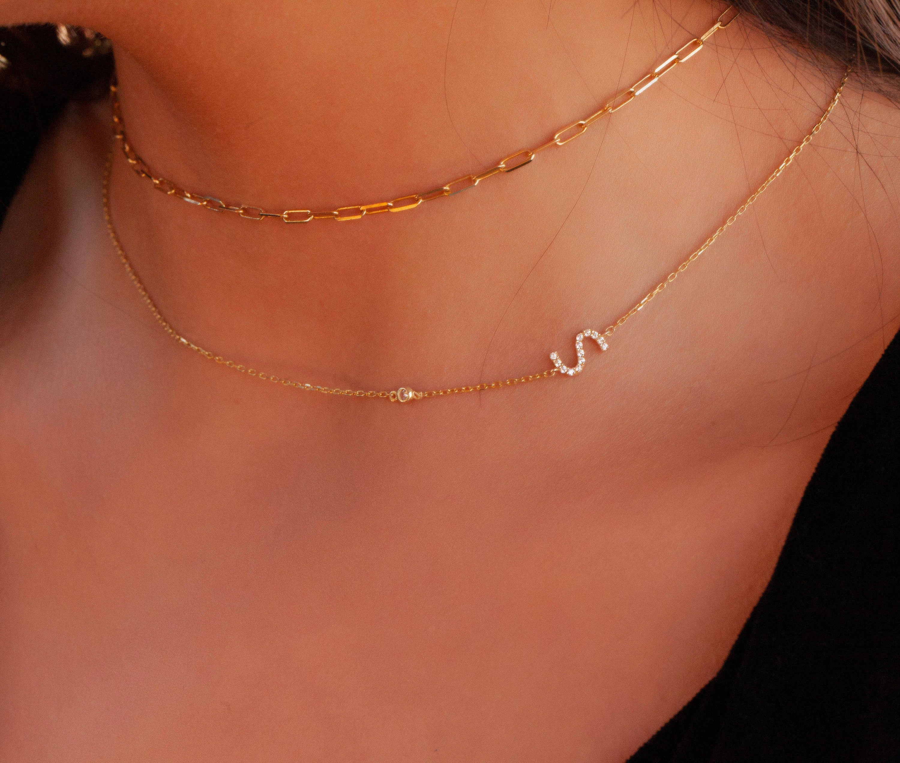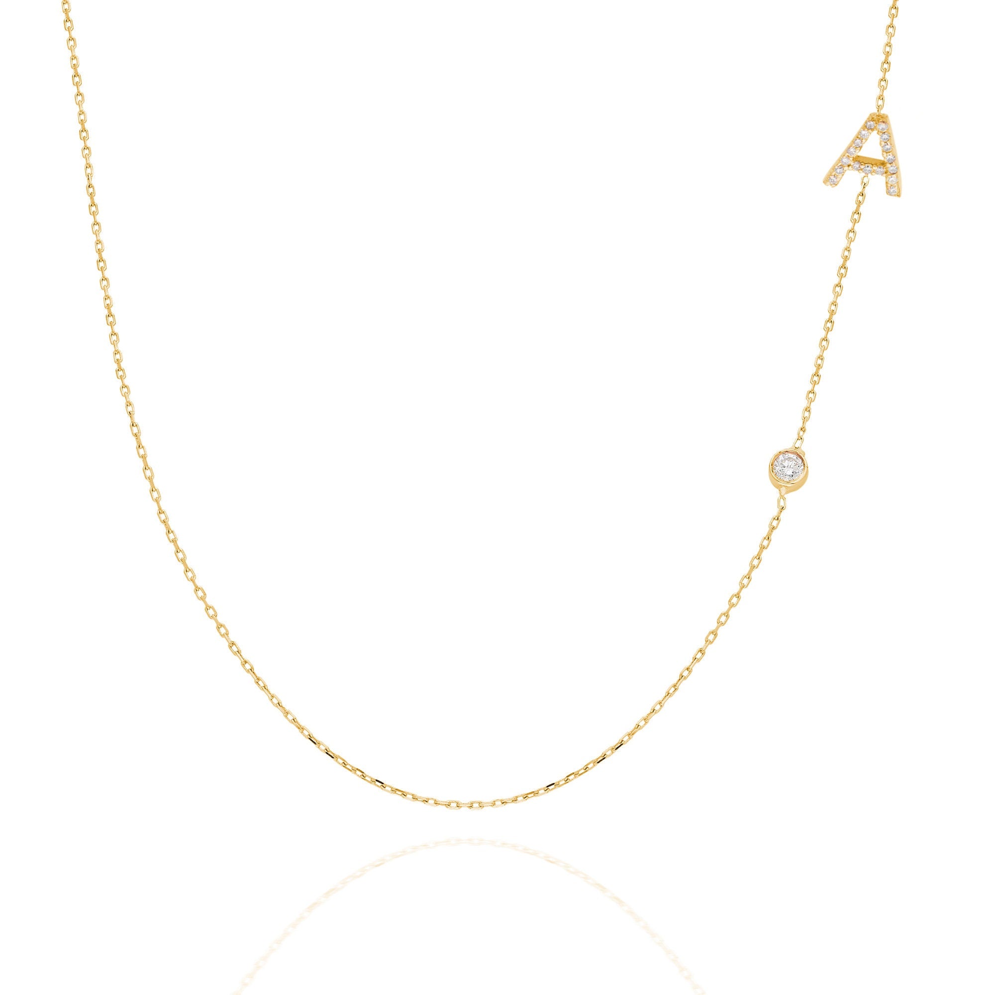This 14k gold diamond initial diamond necklace comes with a single bezel diamond and 1 large or small initial. Perfect for layering or to gift someone special.