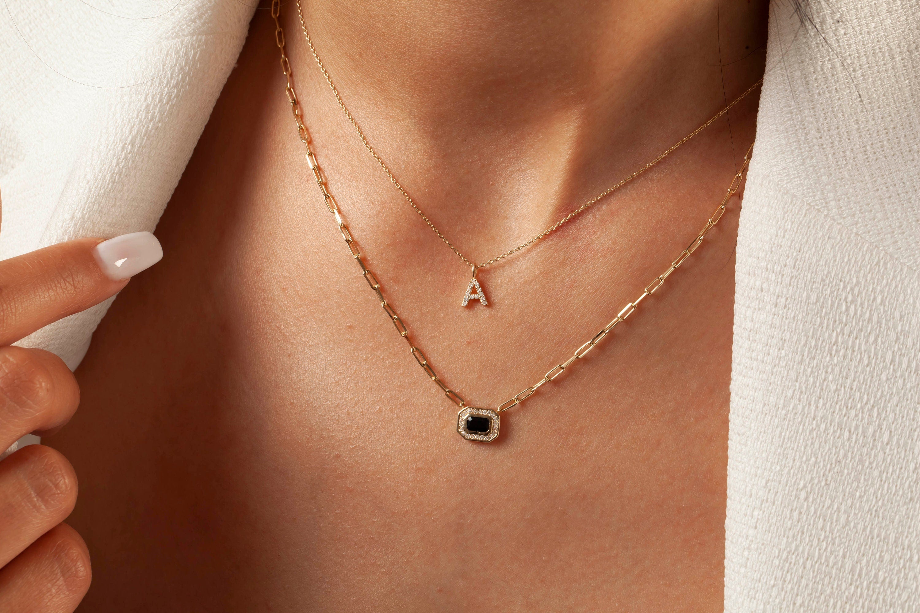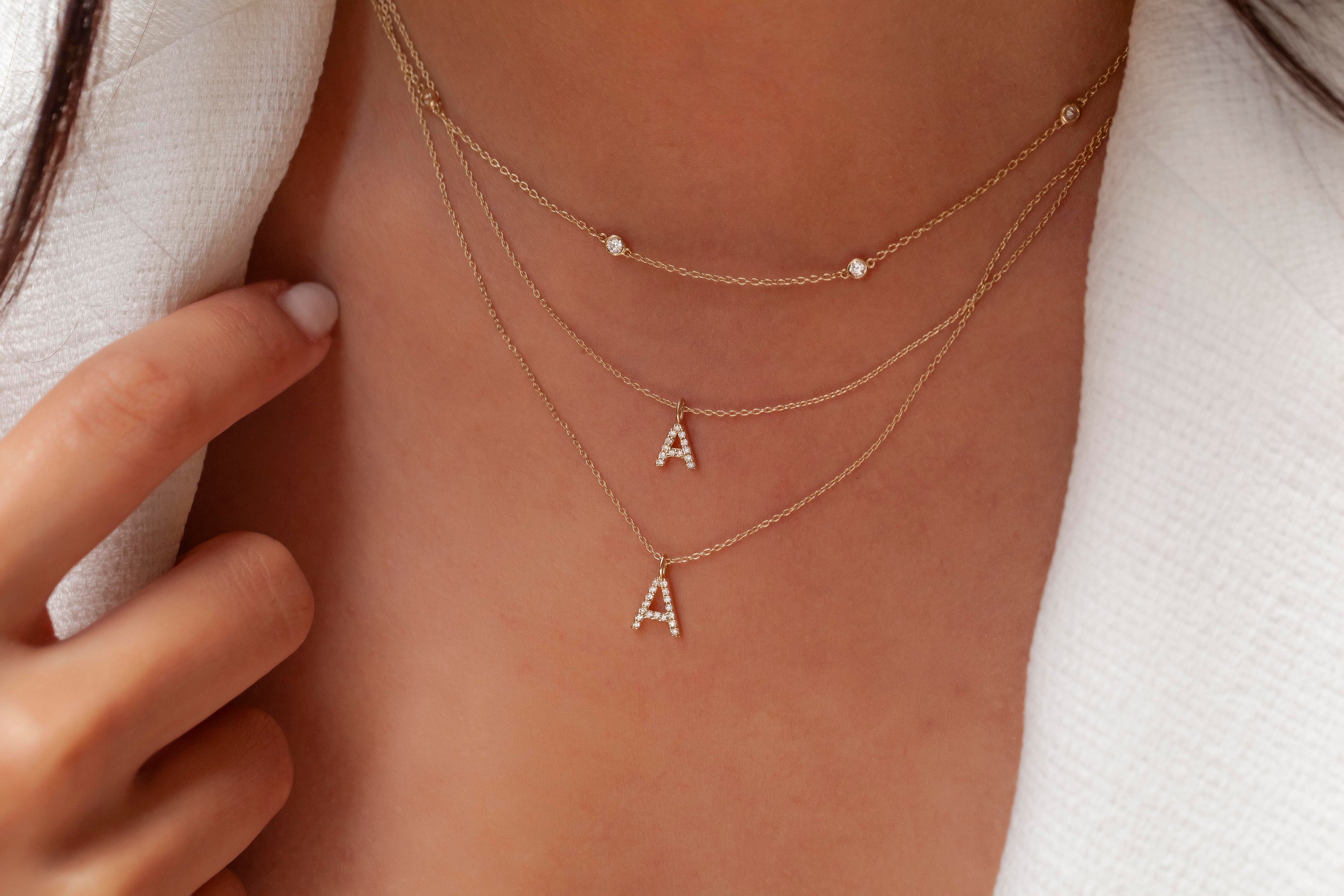 This 14k diamond lowercase initial necklace is perfect for layering or to gift someone special.