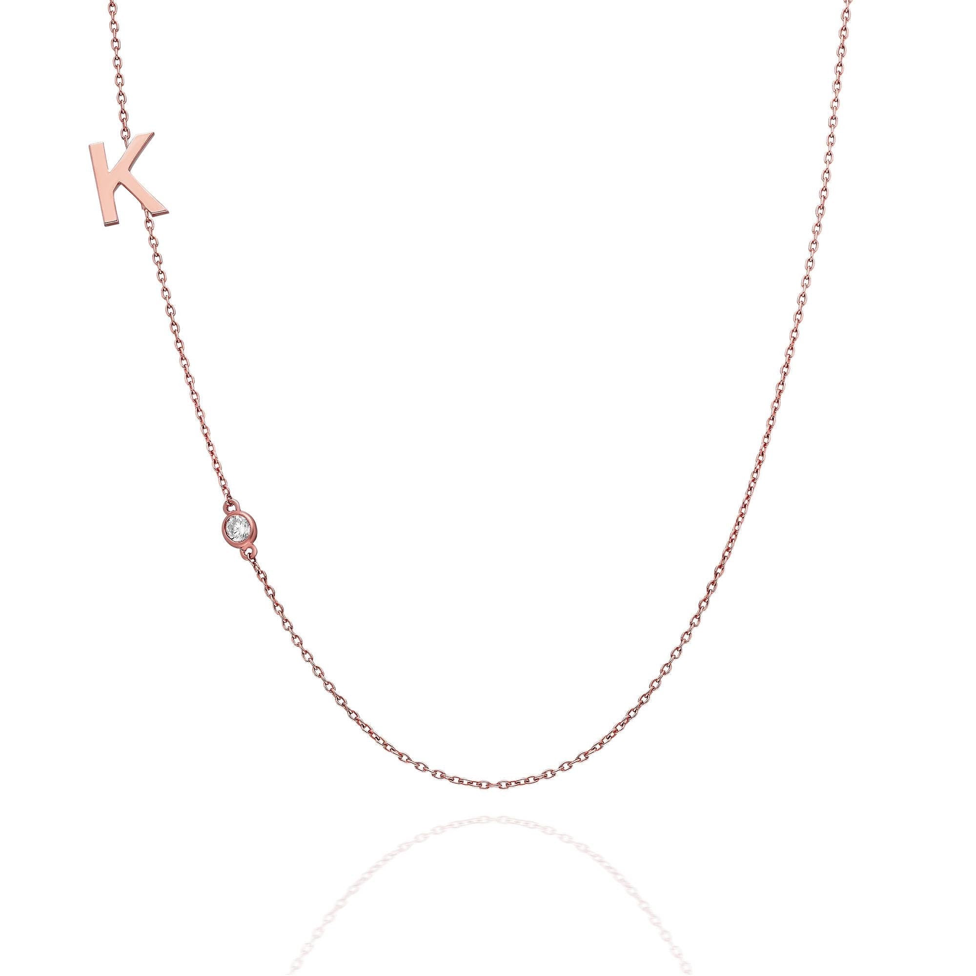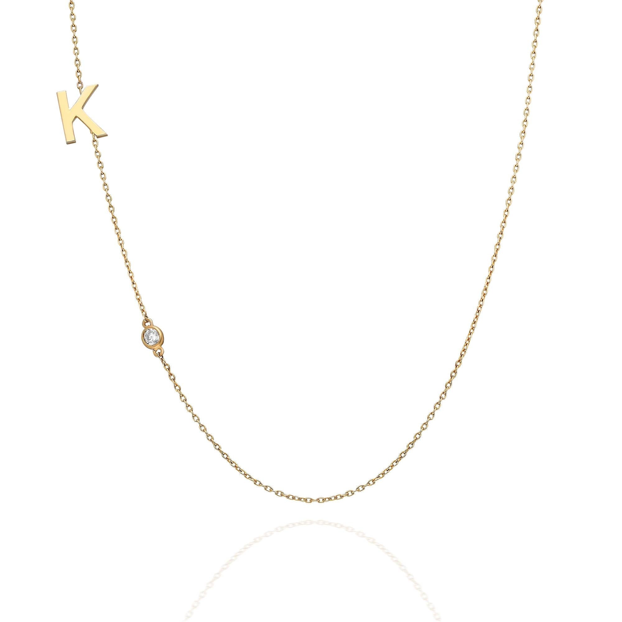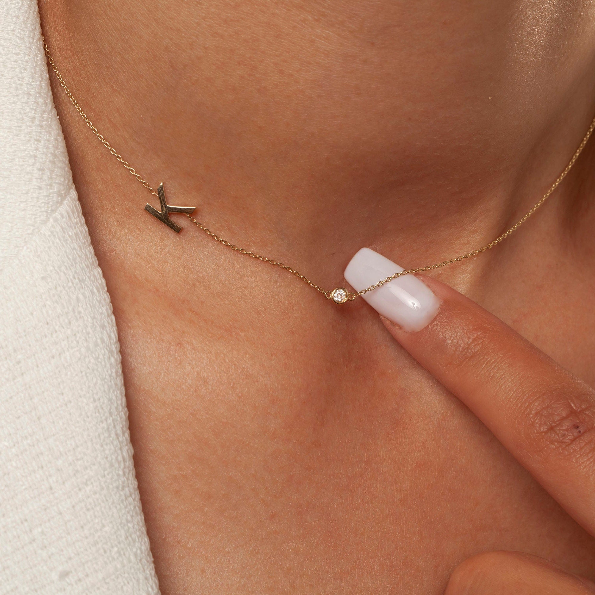 Diamond Initial Necklace / 14k Gold and Diamond Sideway Initial Necklace / Personalized Necklace / Graduation Gift / Bridal Gift