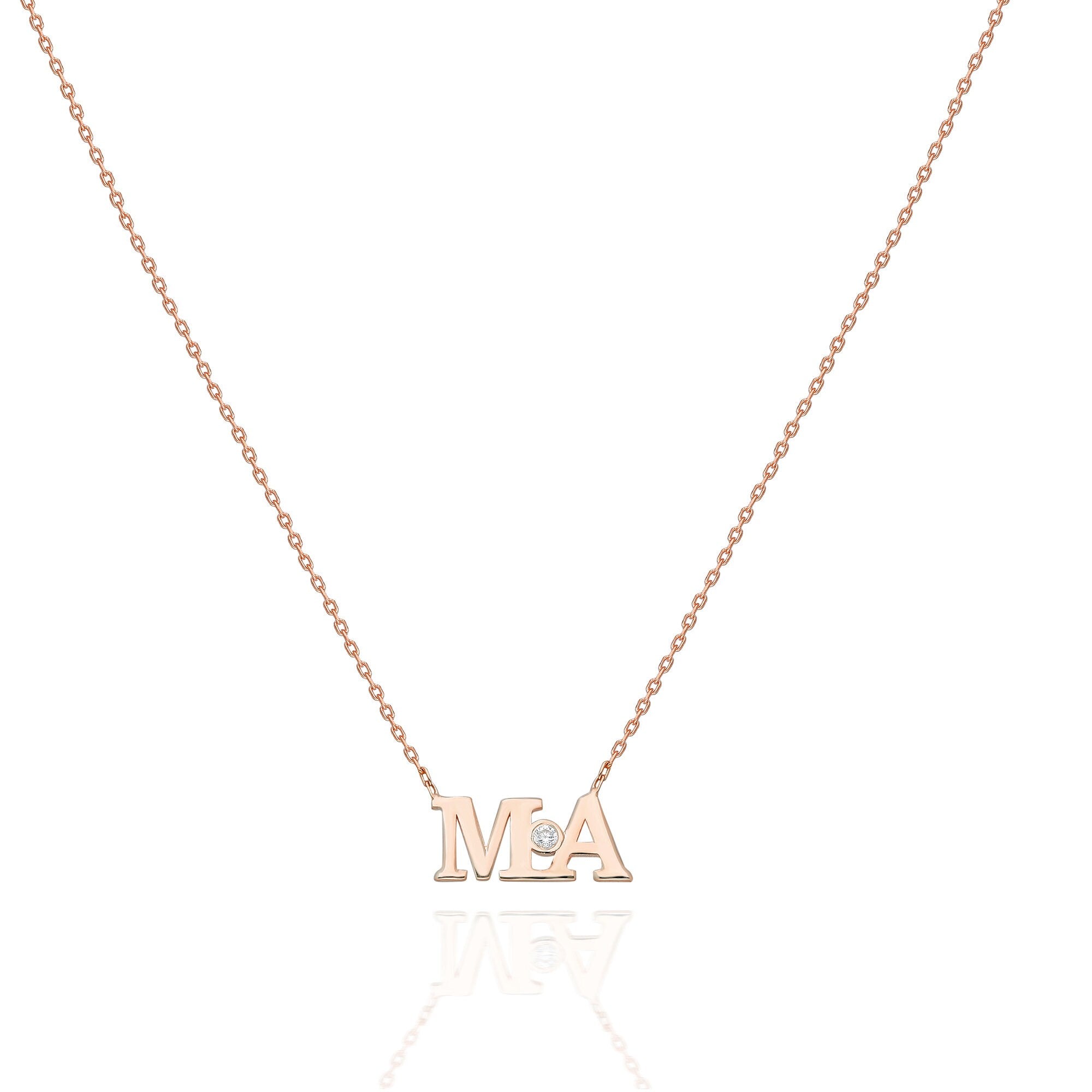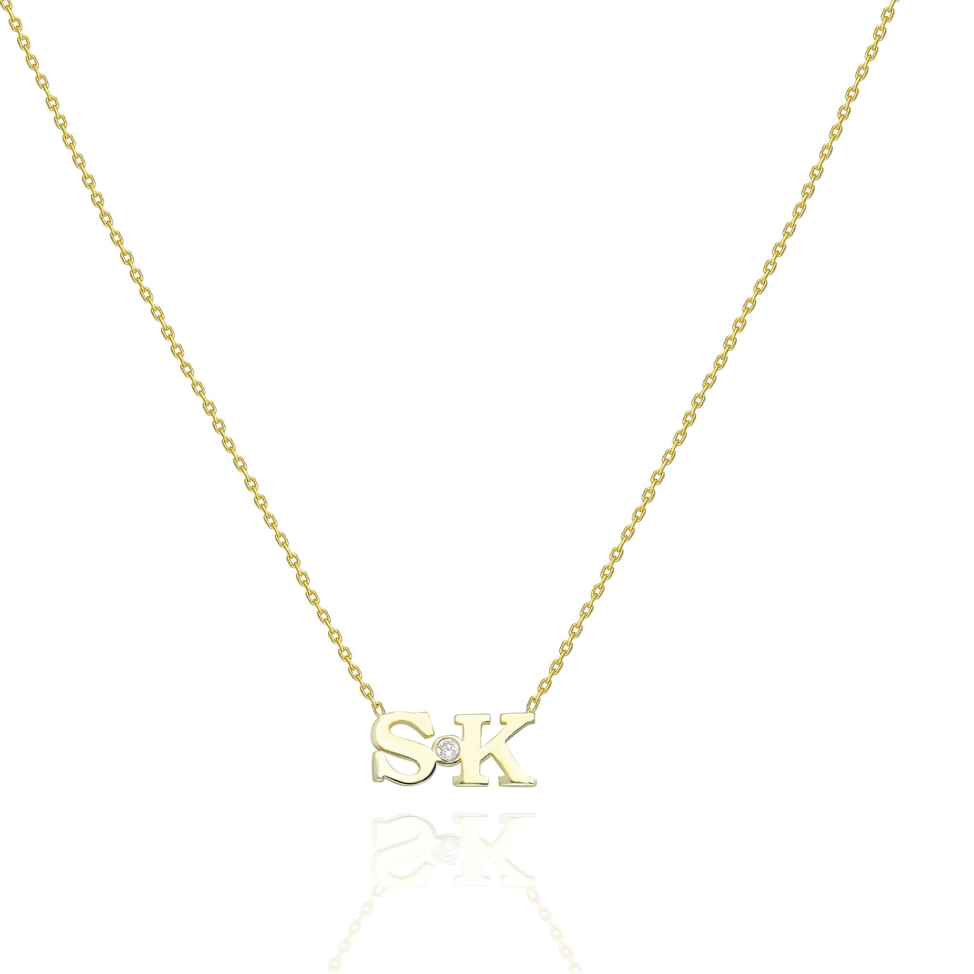 This 14k gold diamond initial necklace comes with a single pave diamond that sits between initials. Perfect for layering or to gift someone special.