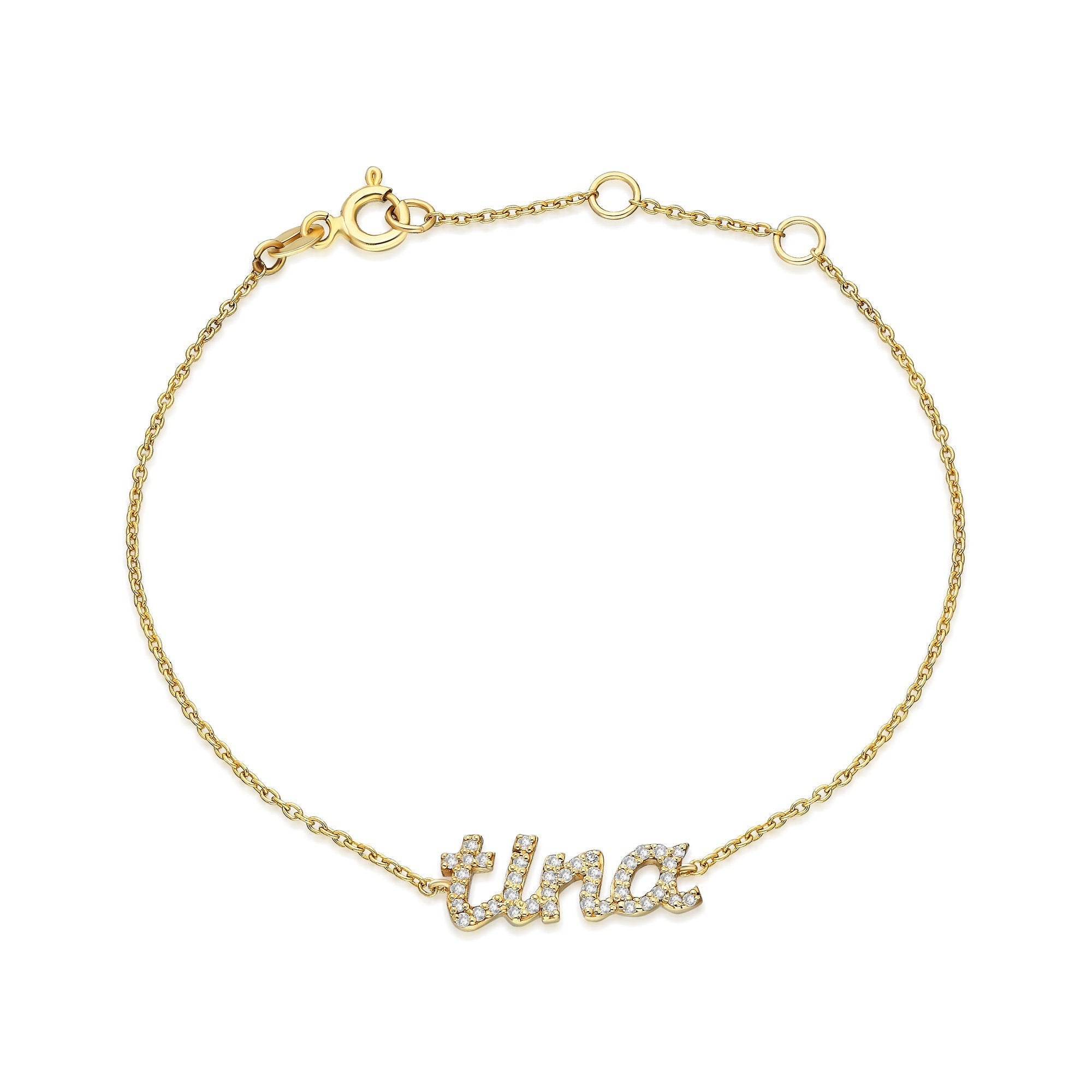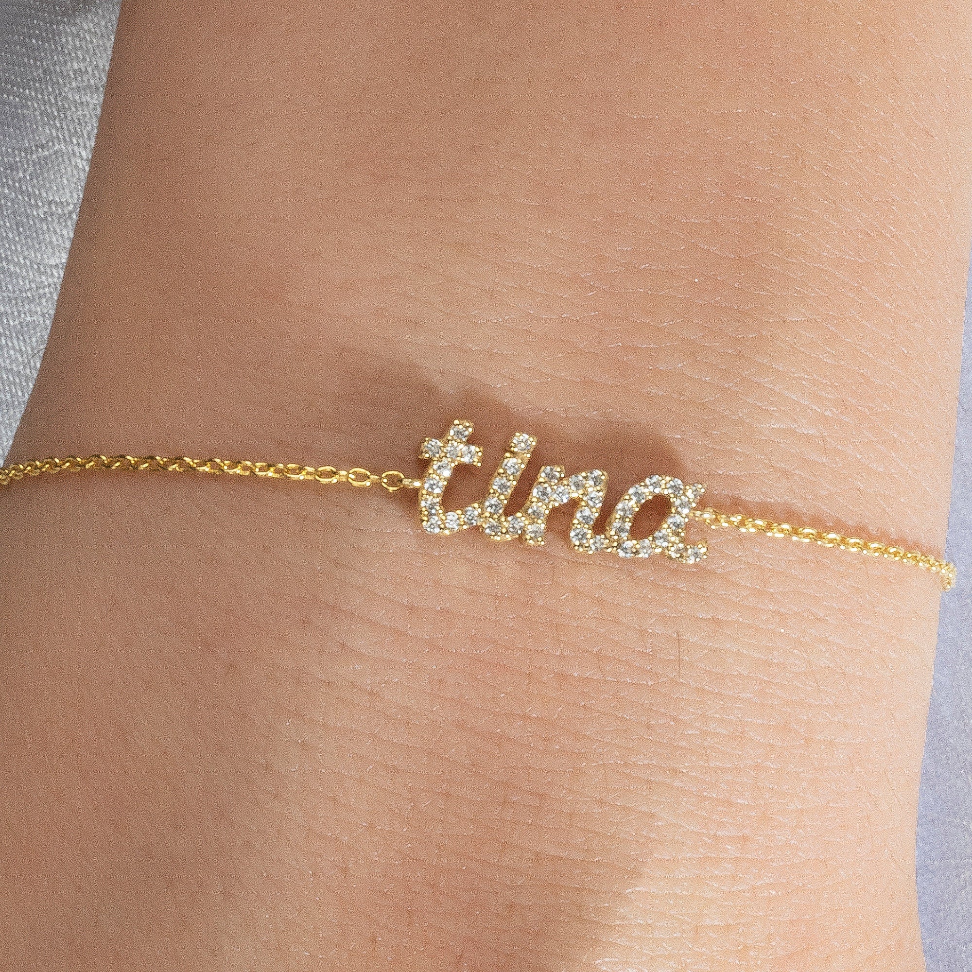 Diamond Name Bracelet / 14k Personalized Diamond Name Bracelet / Personalized Diamond Letter Bracelet / Birthday Gift / Diamond Gift Ideas
