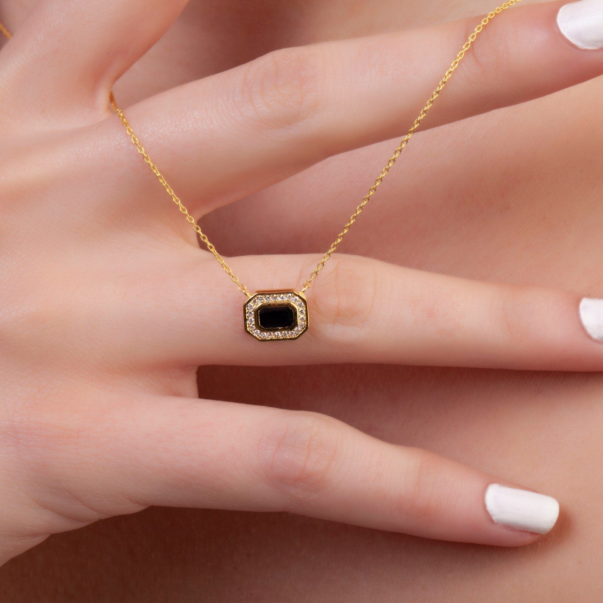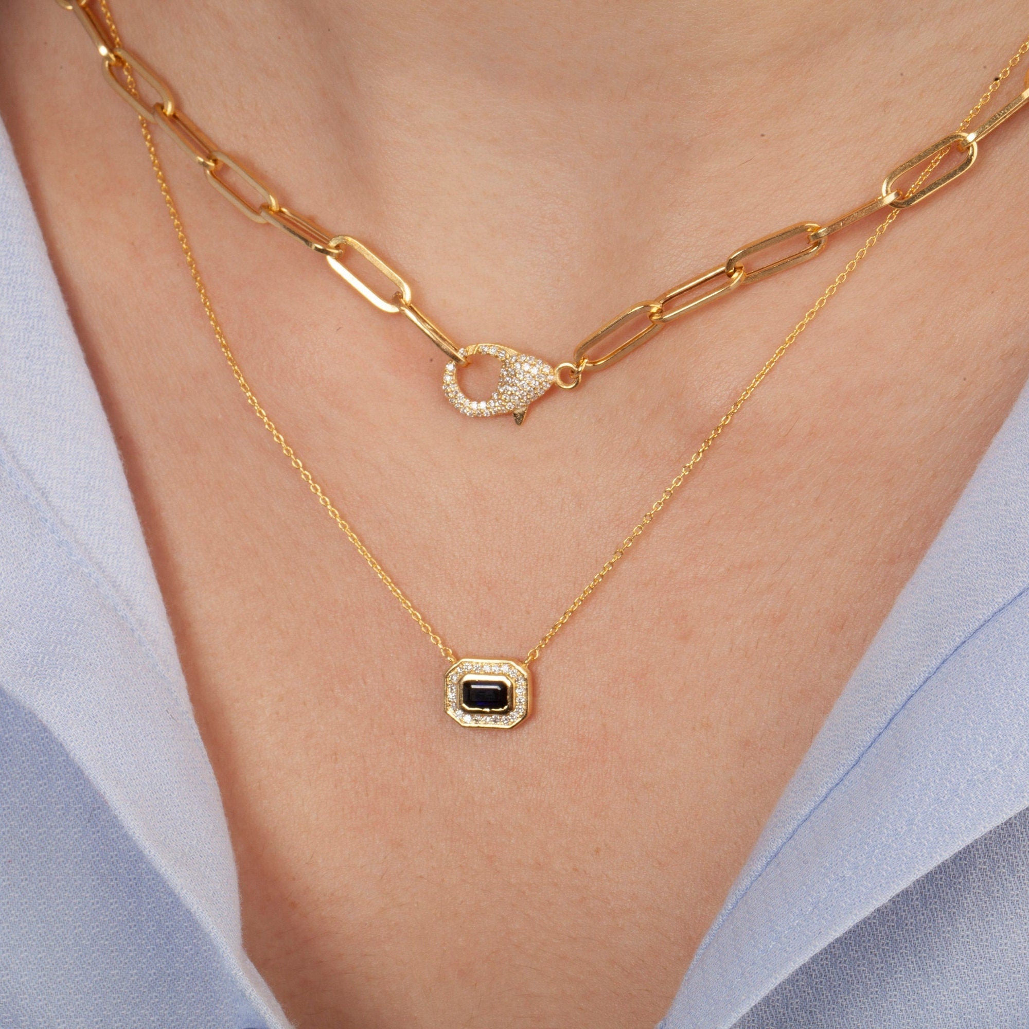 Diamond and Sapphire Necklace / 14k Gold Blue Sapphire and Diamond Art Deco Necklace / Octagon Shape Necklace
