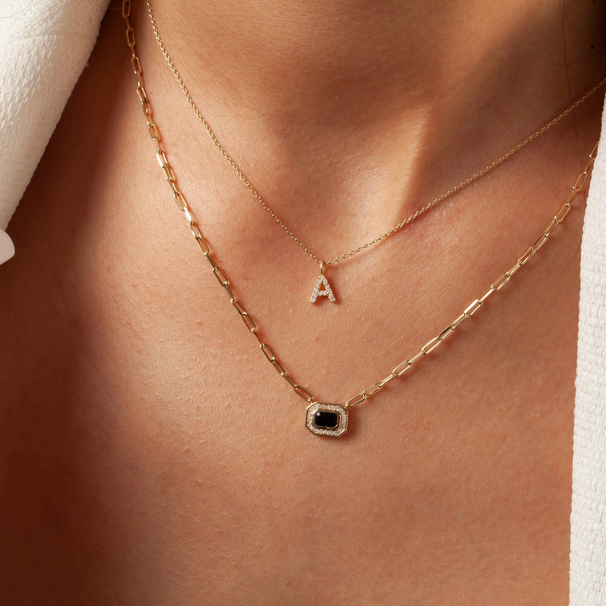 Diamond and Sapphire Necklace / 14k Gold Blue Sapphire and Diamond Art Deco Necklace / Fancy Diamond necklace / Octagon Shape Necklace