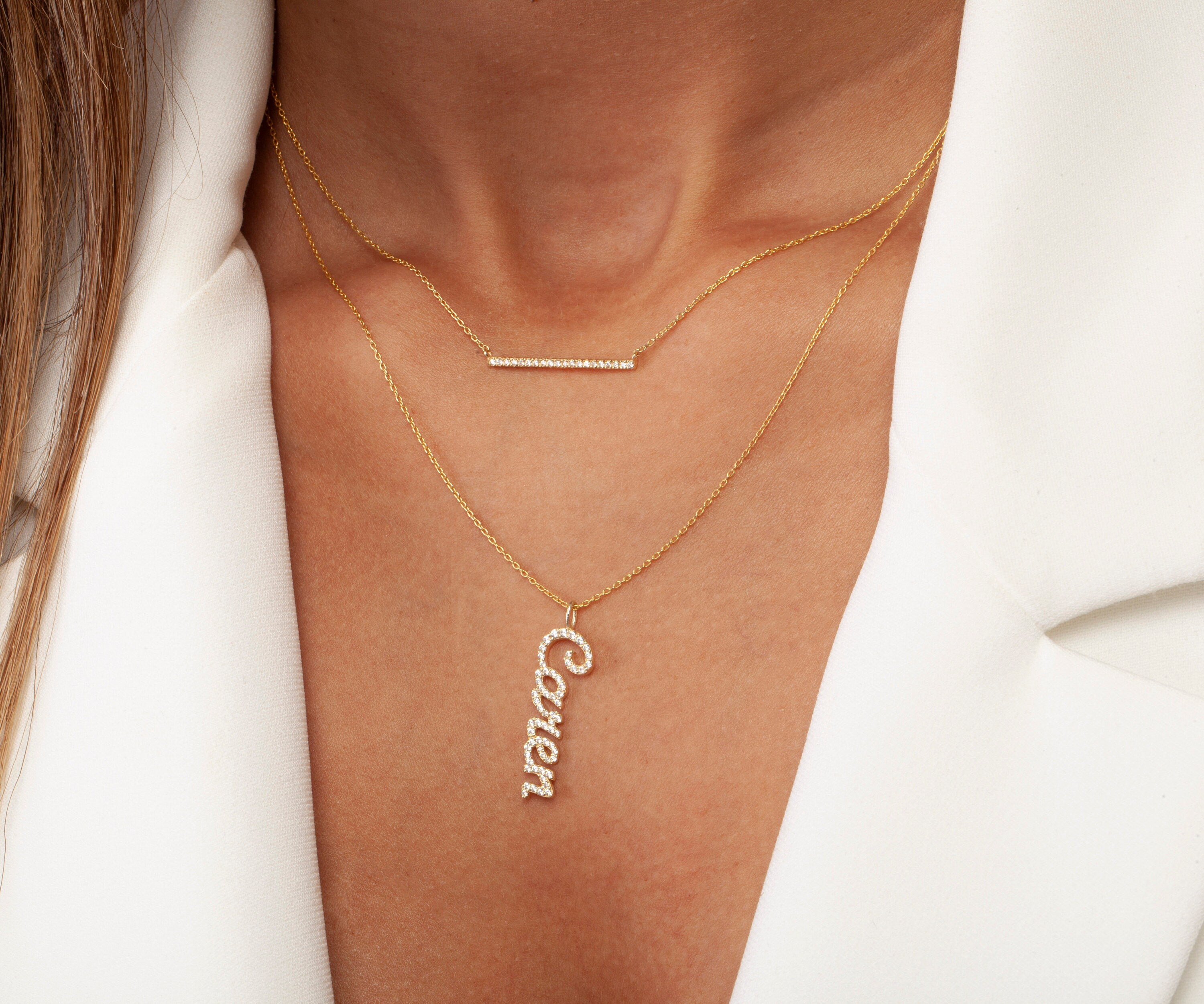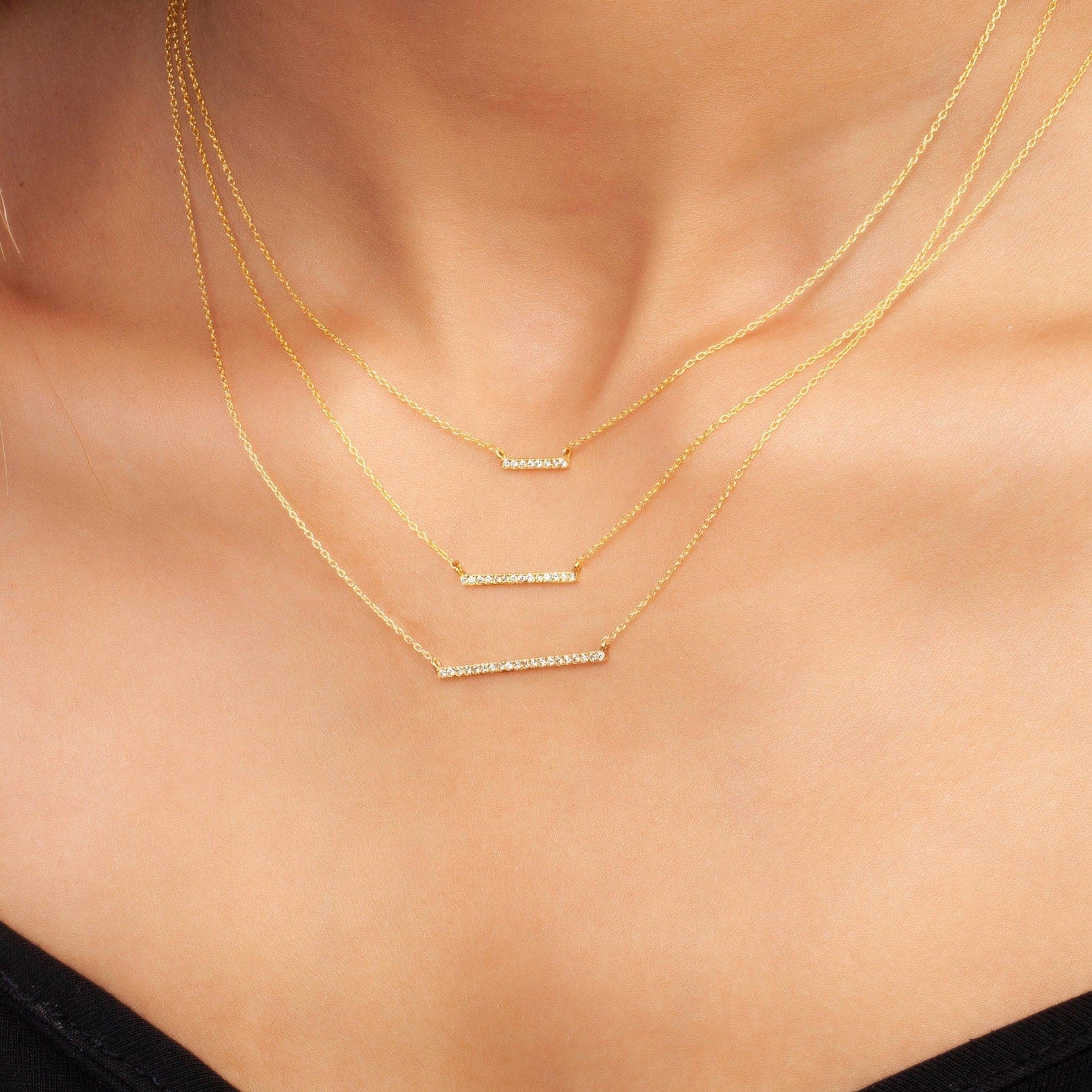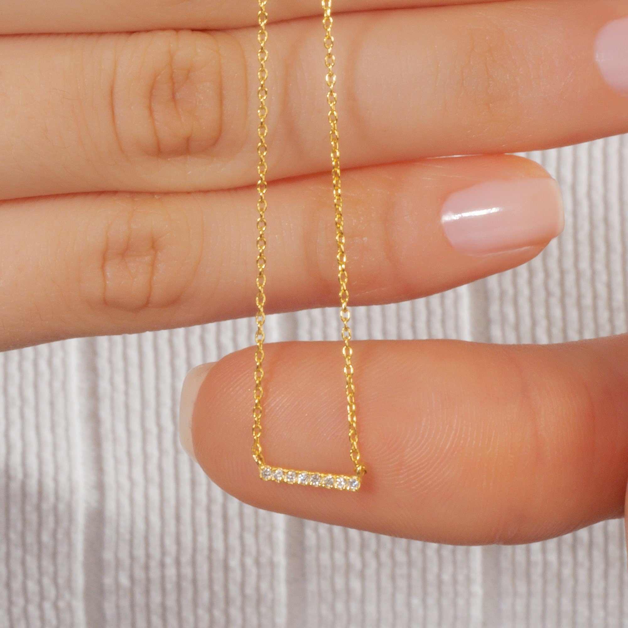 Diamond Bar Necklace / 14k Gold or Silver Horizontal Diamond Bar Necklace / Diamond Necklace / Diamond Birthday Gift / Diamond Gift Ideas