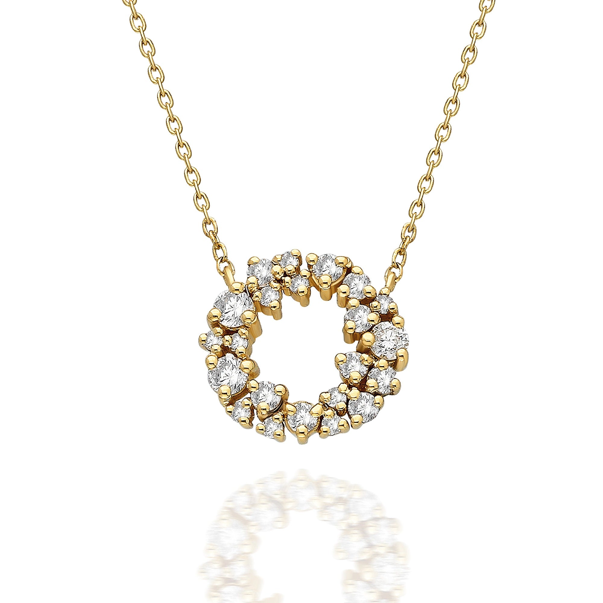 This beautiful 14k gold diamond circle cluster necklace is perfect by itself, for layering or to gift someone special.