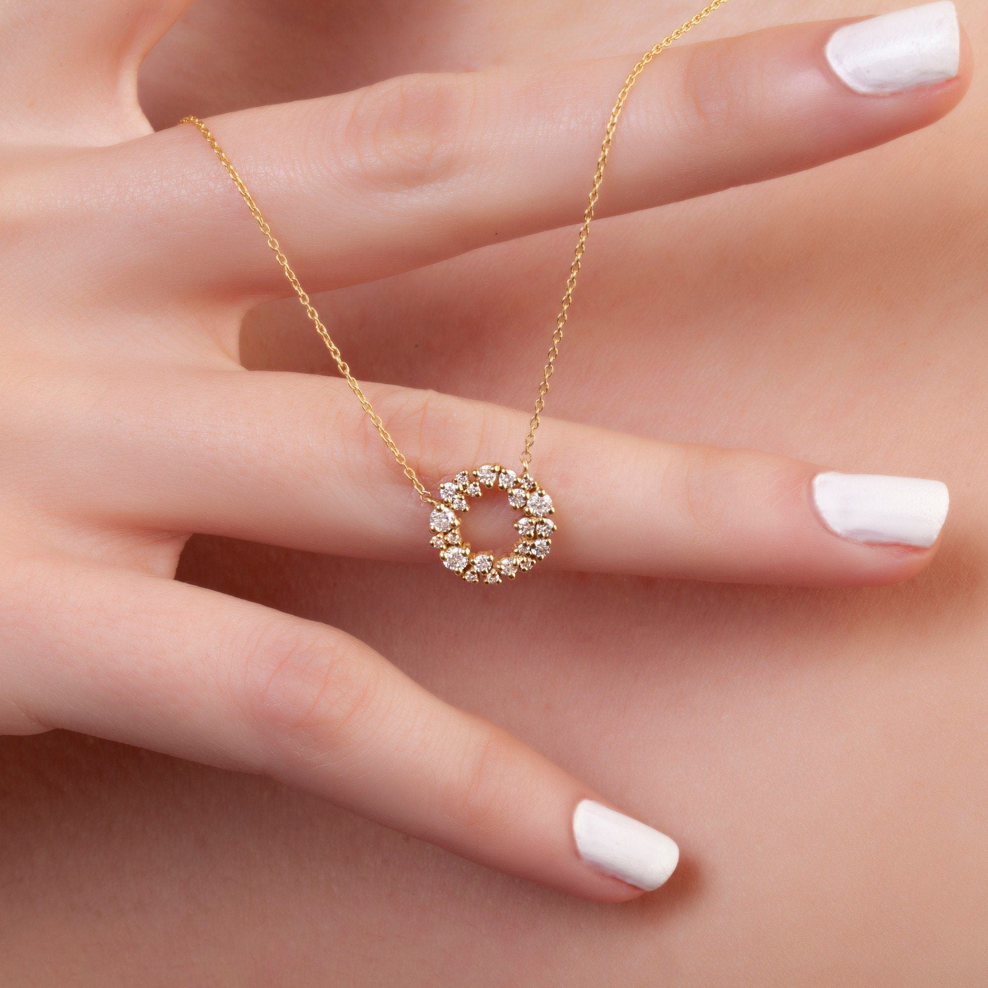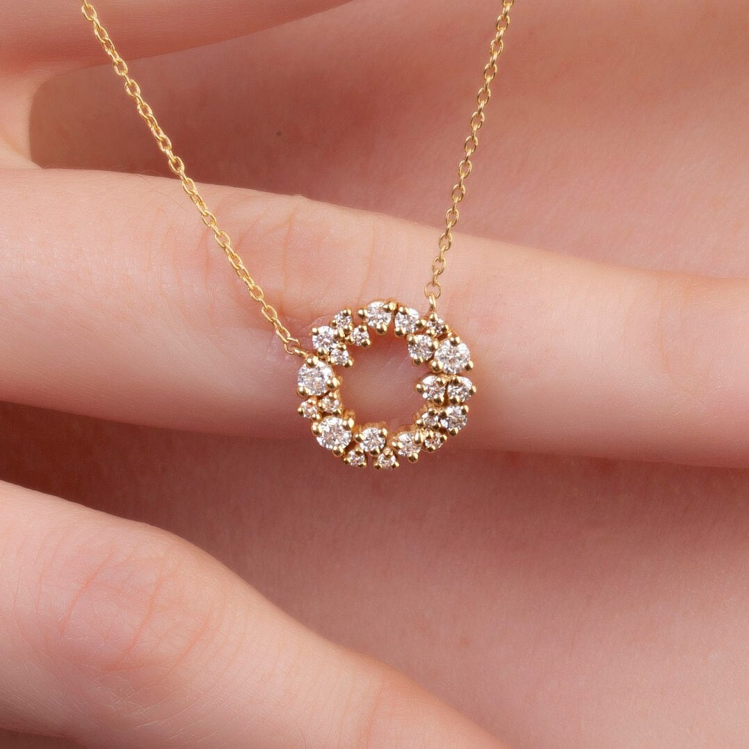 Diamond Cluster Circle Necklace / 14k Gold Diamond Cluster Necklace / Fancy Diamond Necklace / Dainty Diamond Necklace / Holiday Gift