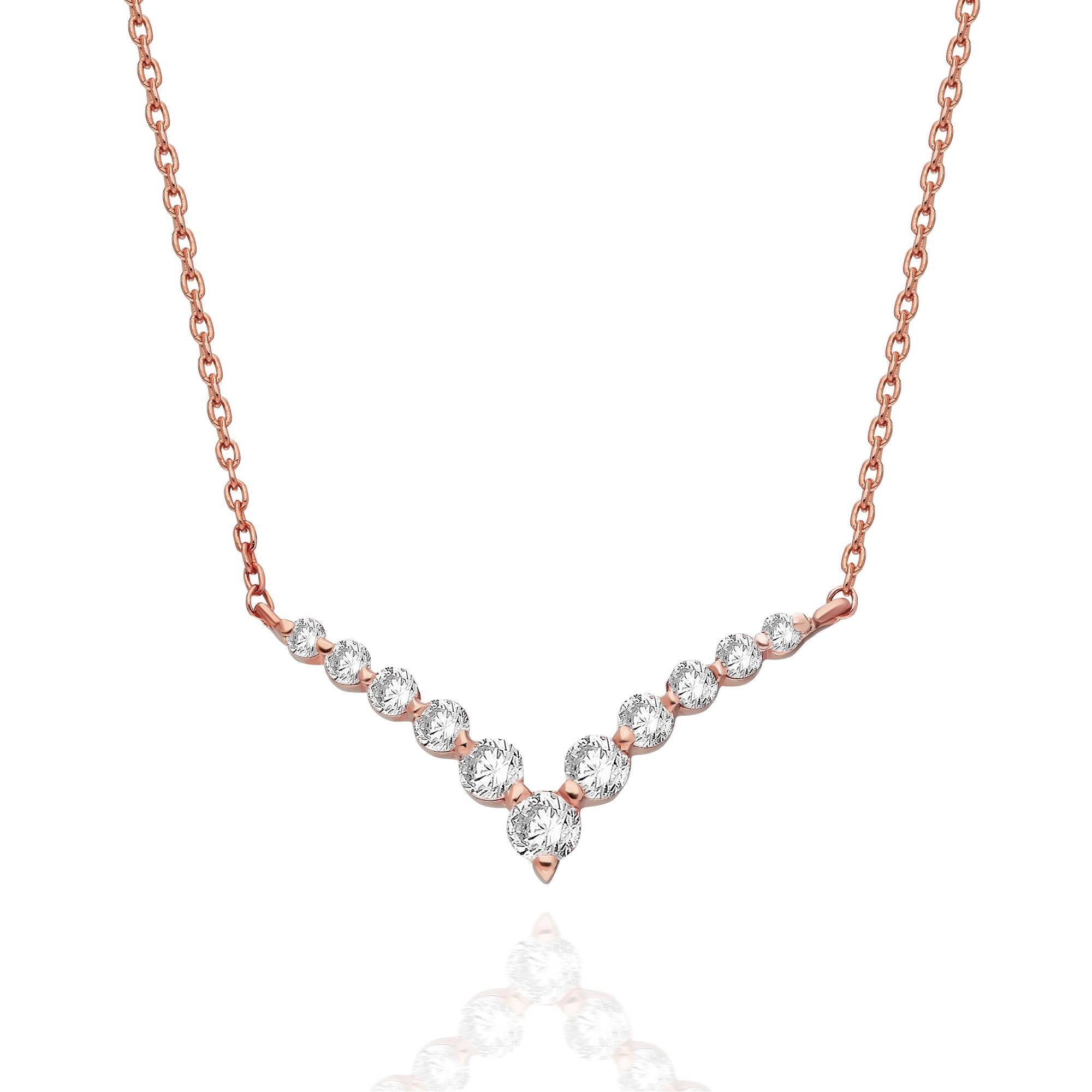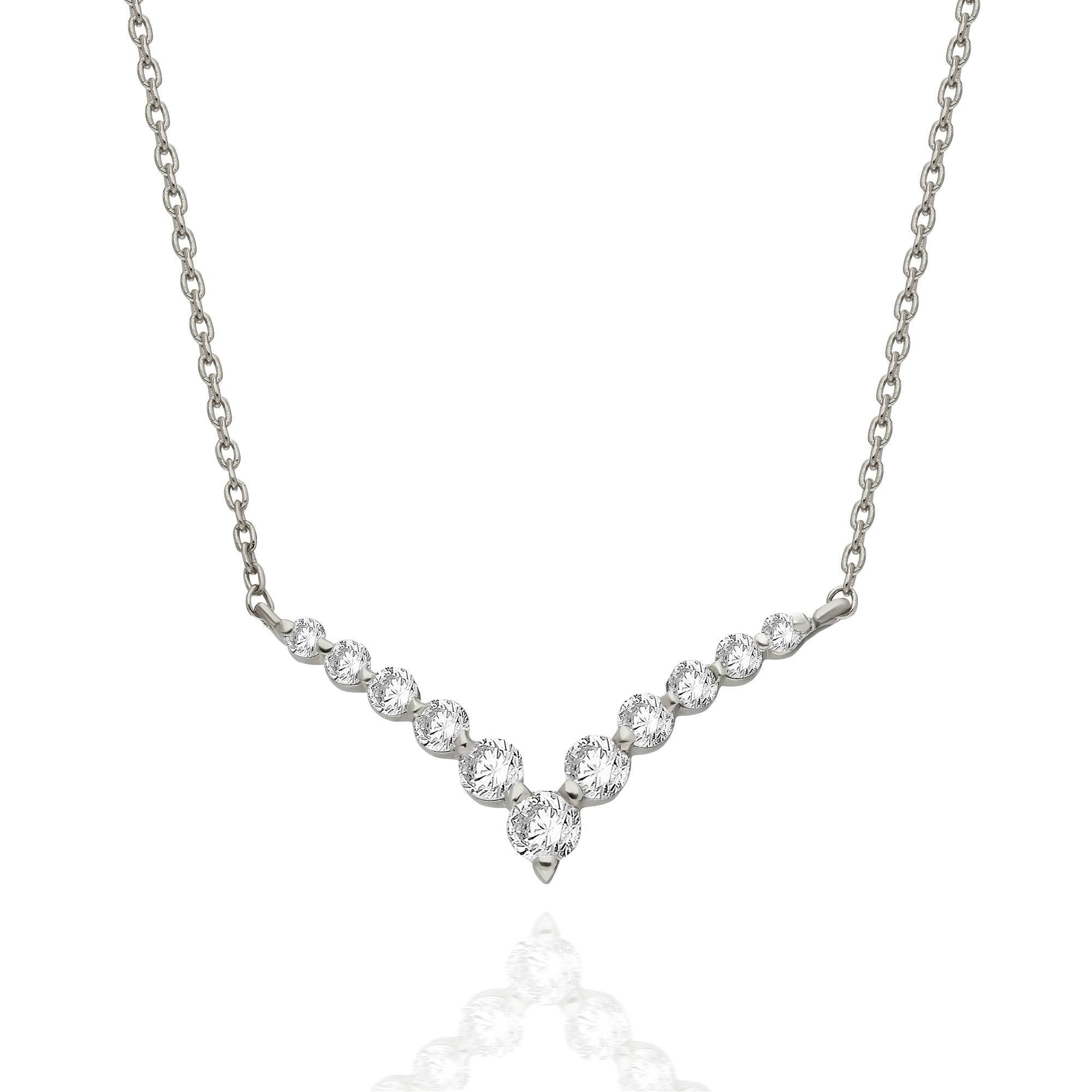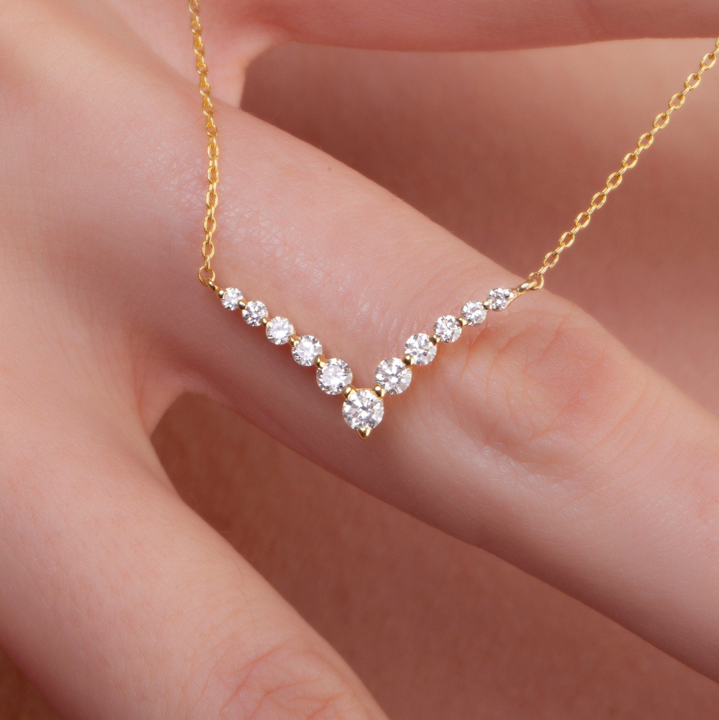Diamond Curved Chevron Necklace / 14k Gold and Diamond V Necklace / Fancy Diamond Necklace / Dainty Diamond / Holiday Gift