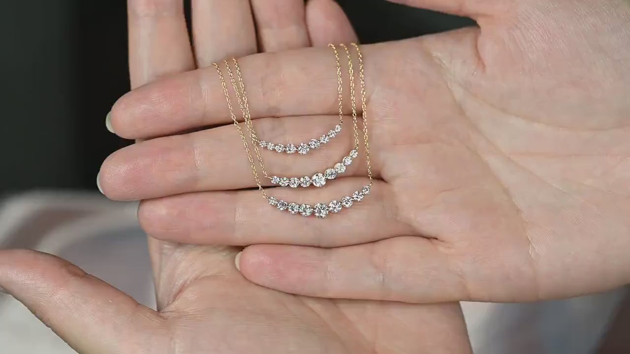 Floating Diamond Necklace, 14k Curved Bar Necklace, Minimalist Diamond Necklace / Gift for her / Dainty Diamond Necklace