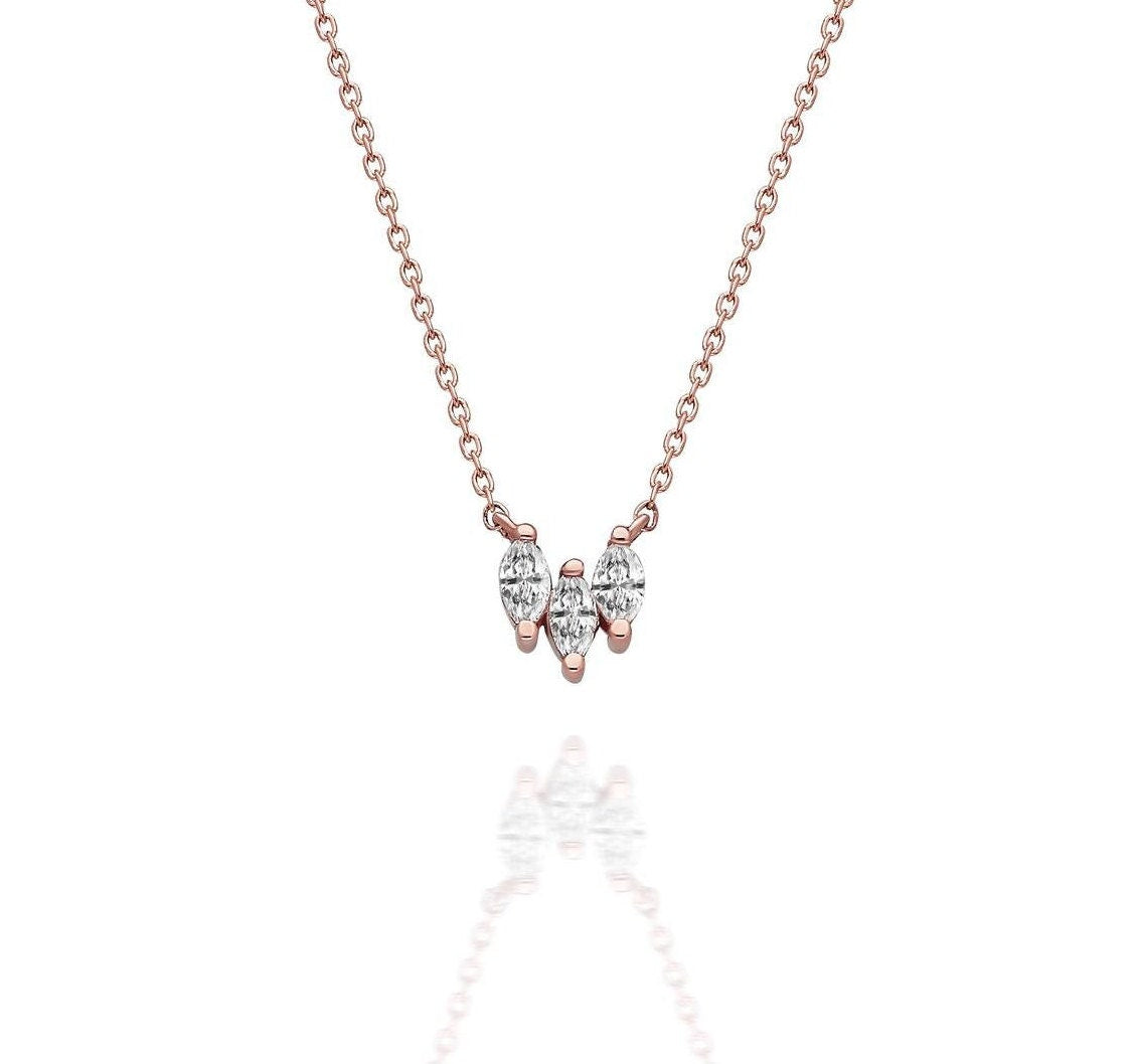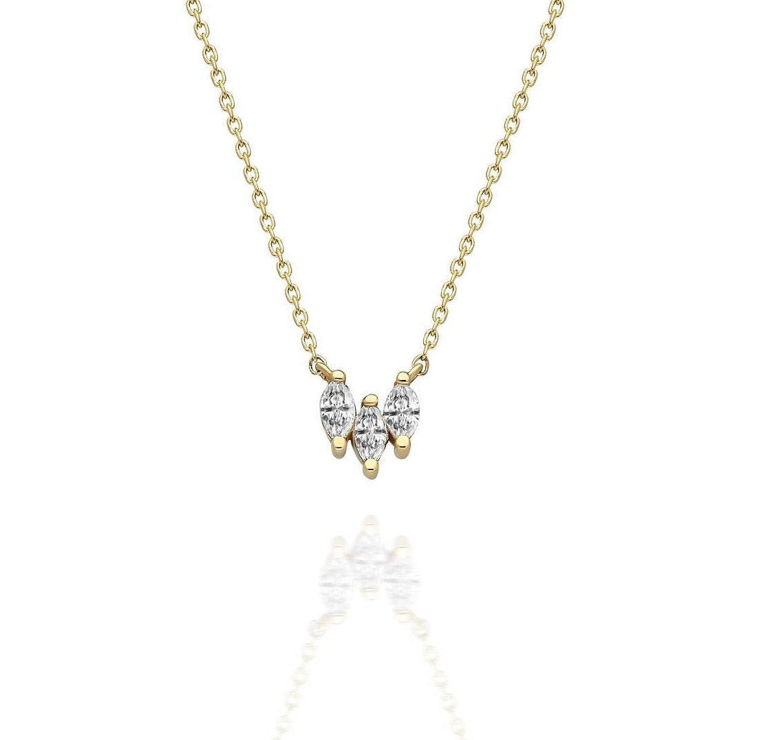 This beautiful 14k trio diamond neckace is set with three marquise diamonds. Perfect for wearing everyday or for a special day.