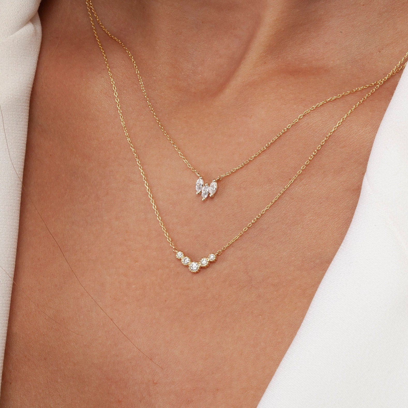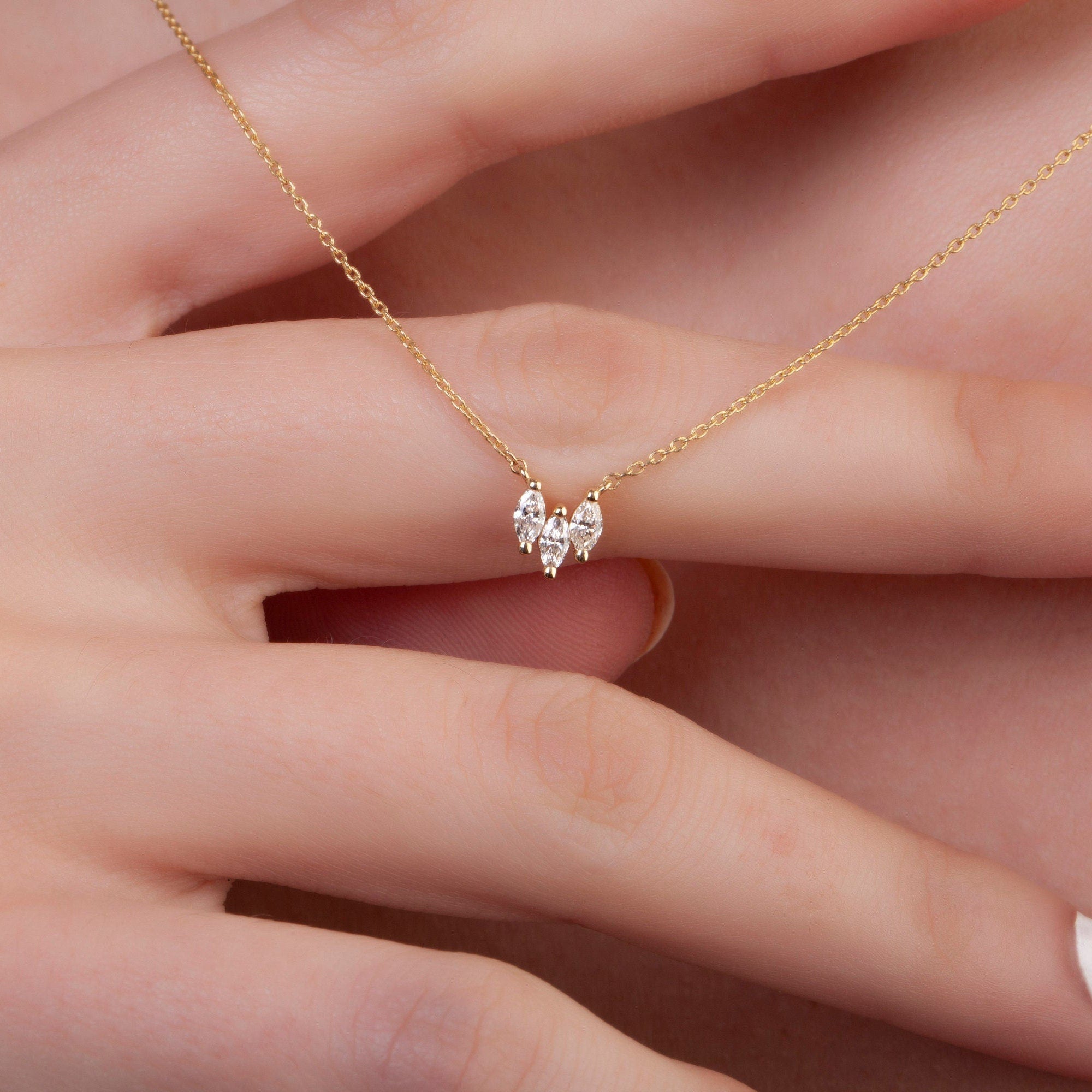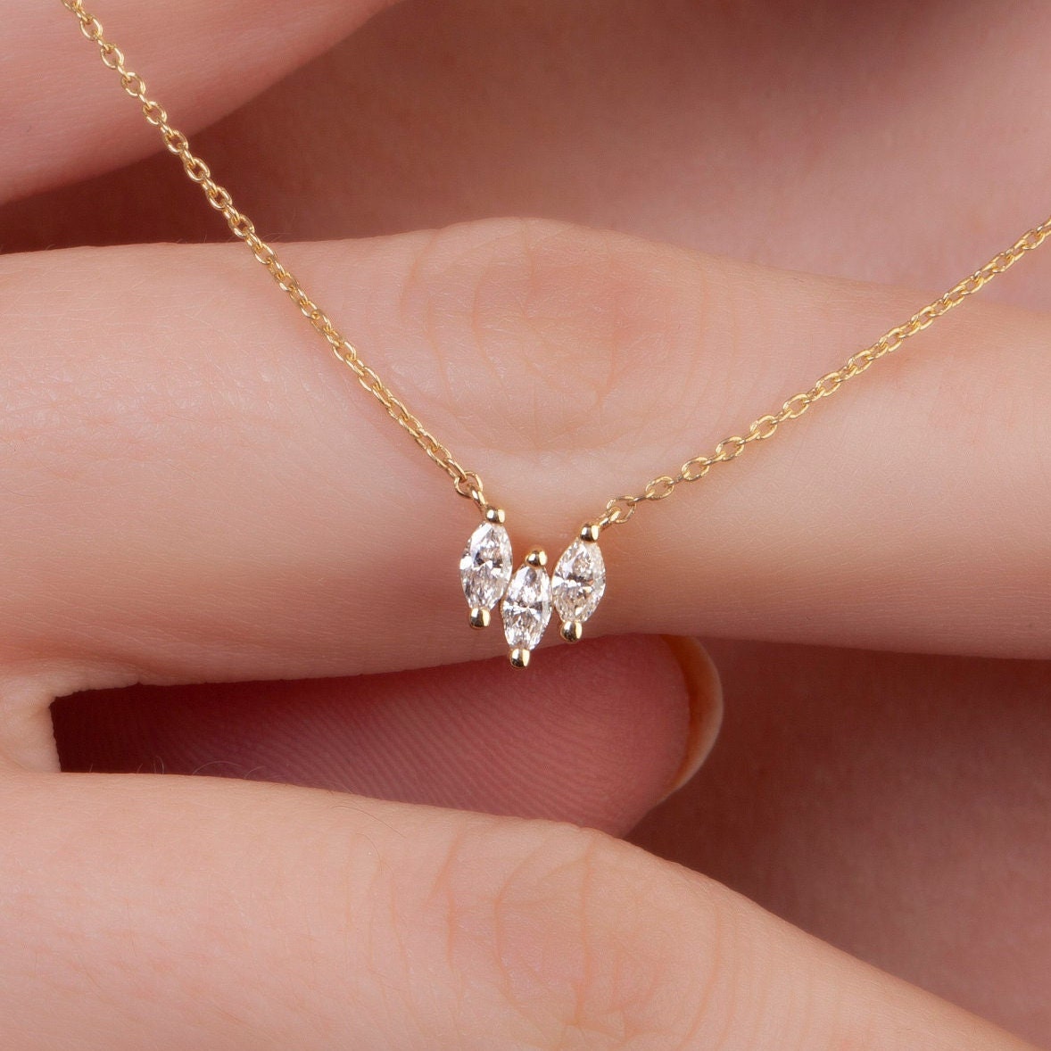 Marquise Diamond Necklace / 14k Gold and Diamond Tria Marquise Necklace / Diamond Necklace / Dainty Diamond Necklace
