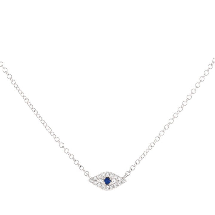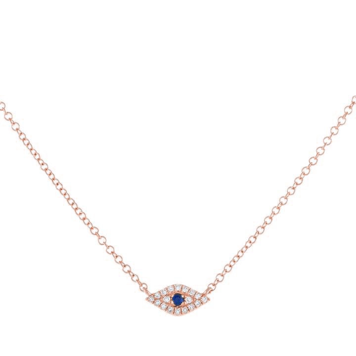 This 14K gold symbol of protection has a blue sapphire center surrounded by 18 diamonds. Perfect for layering or to gift someone special.