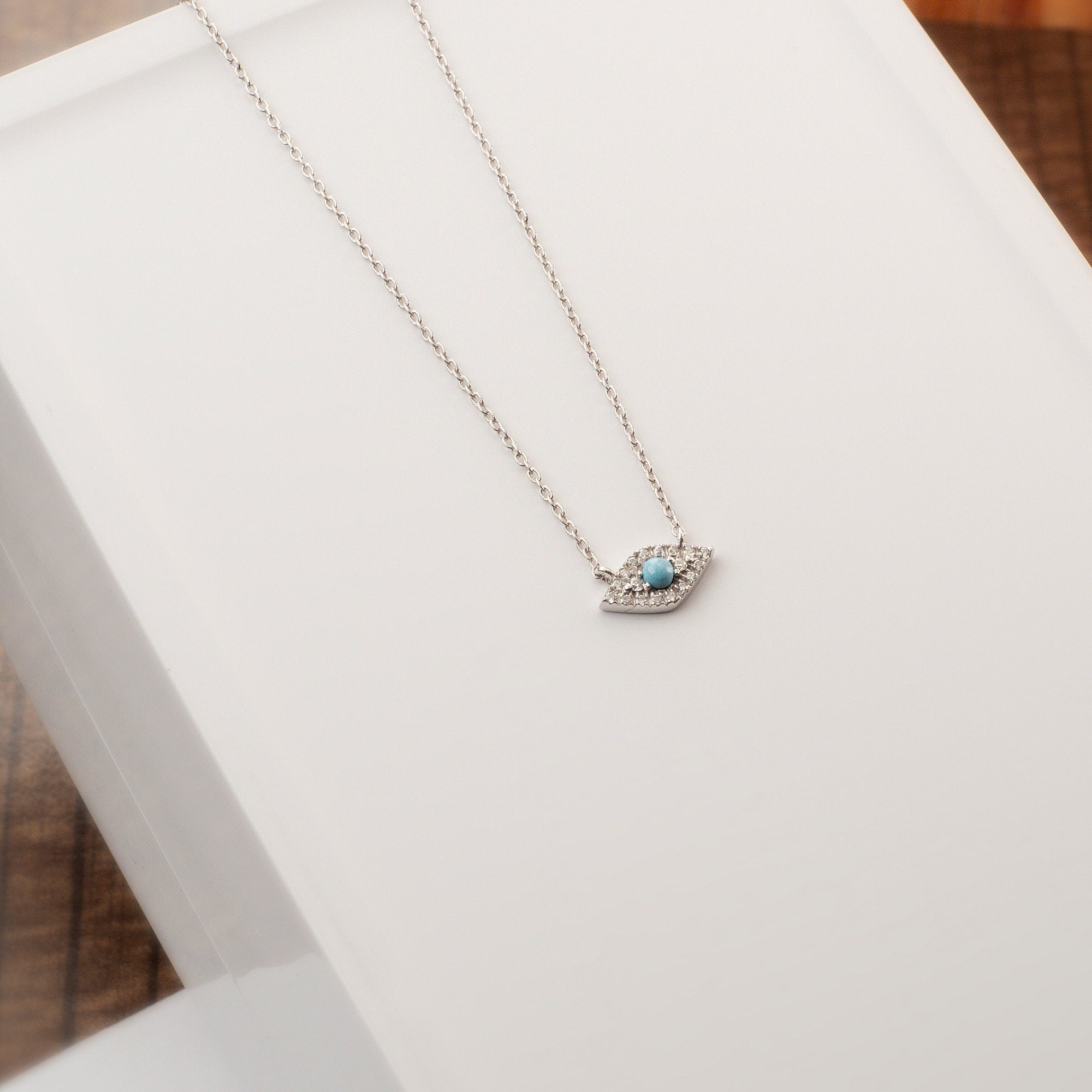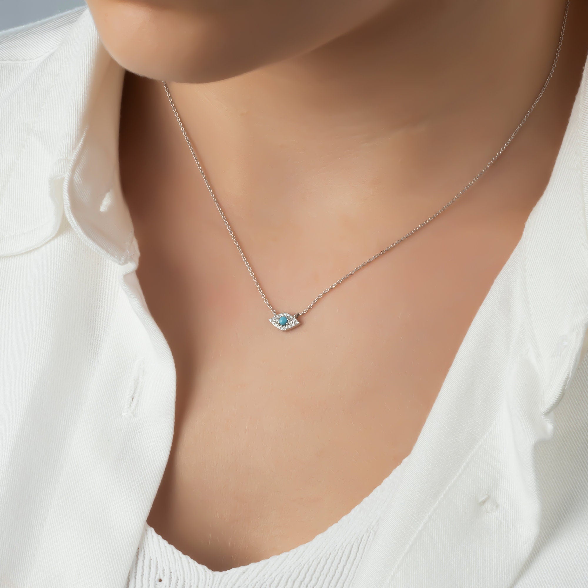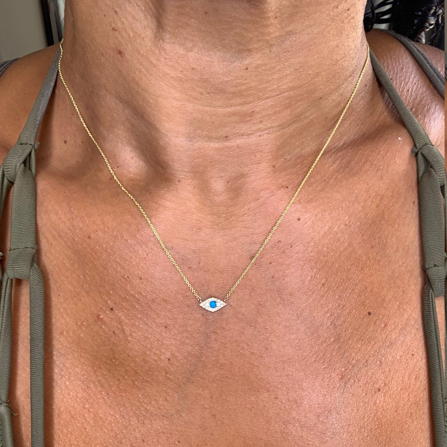 Turquoise Evil Eye Necklace / 14k Gold Turquoise and Diamond Evil Eye Protection Necklace / Graduation Gift / Birthday Gift