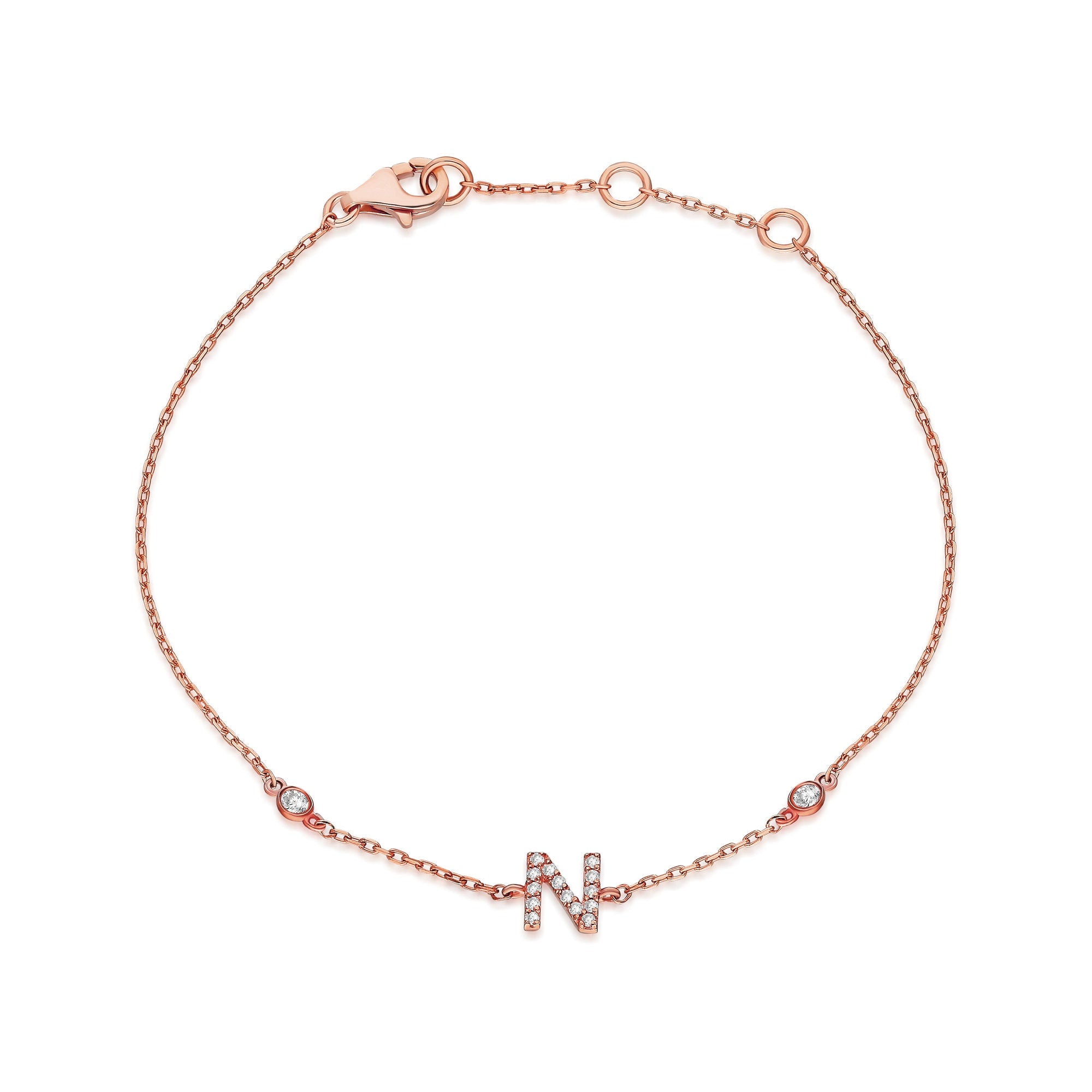 Diamond Initial Bracelet / 14k Diamond Initial Bracelet / Diamond Charm Bracelet / Name Bracelet / Graduation Gift / Birthday Gift