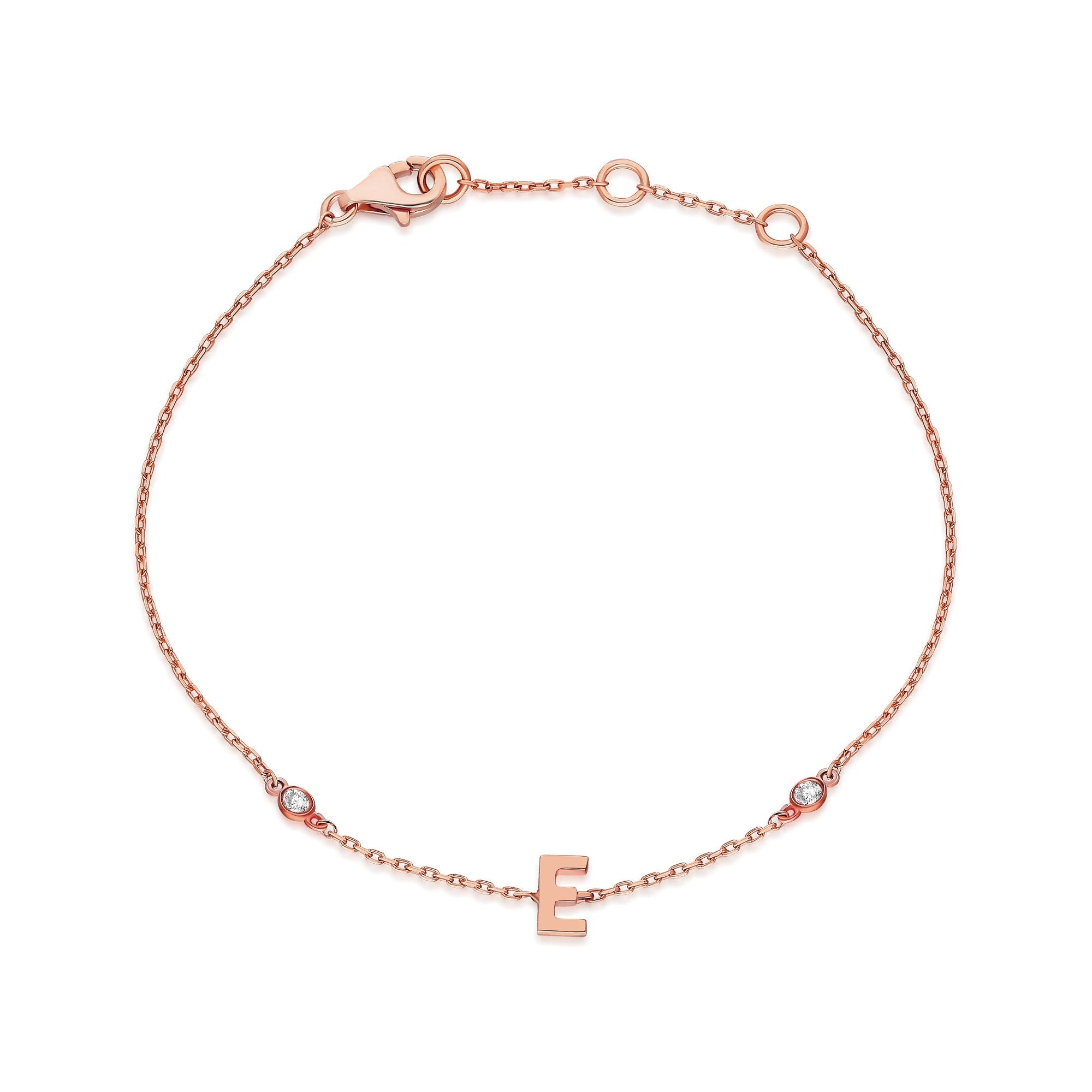 This 14k single bezel diamond initial bracelet is perfect for layering or to gift someone special.