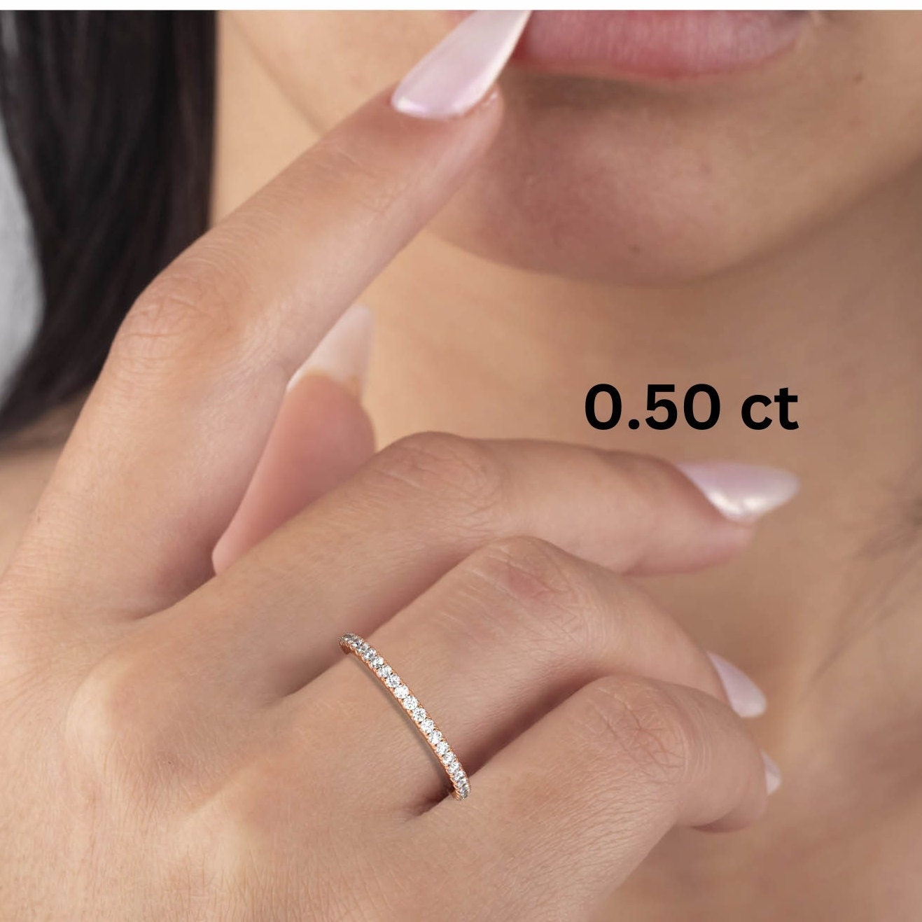 Whether you're celebrating a special anniversary, engagement, or simply want to express your love, this pave eternity band is a profound representation of your enduring bond.