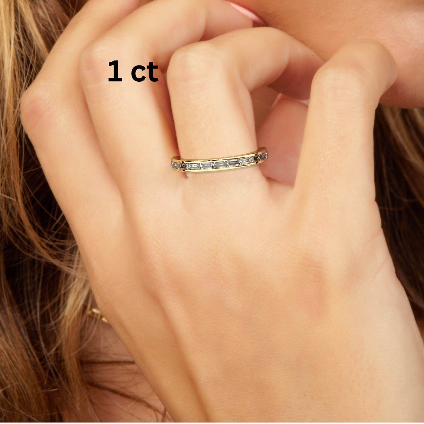 14k Gold Baguette Diamond Ring / 0.75 - 1.5 CT Channel Set Full Eternity Wedding Band / Engagement Ring / Natural & Lab Diamond Options