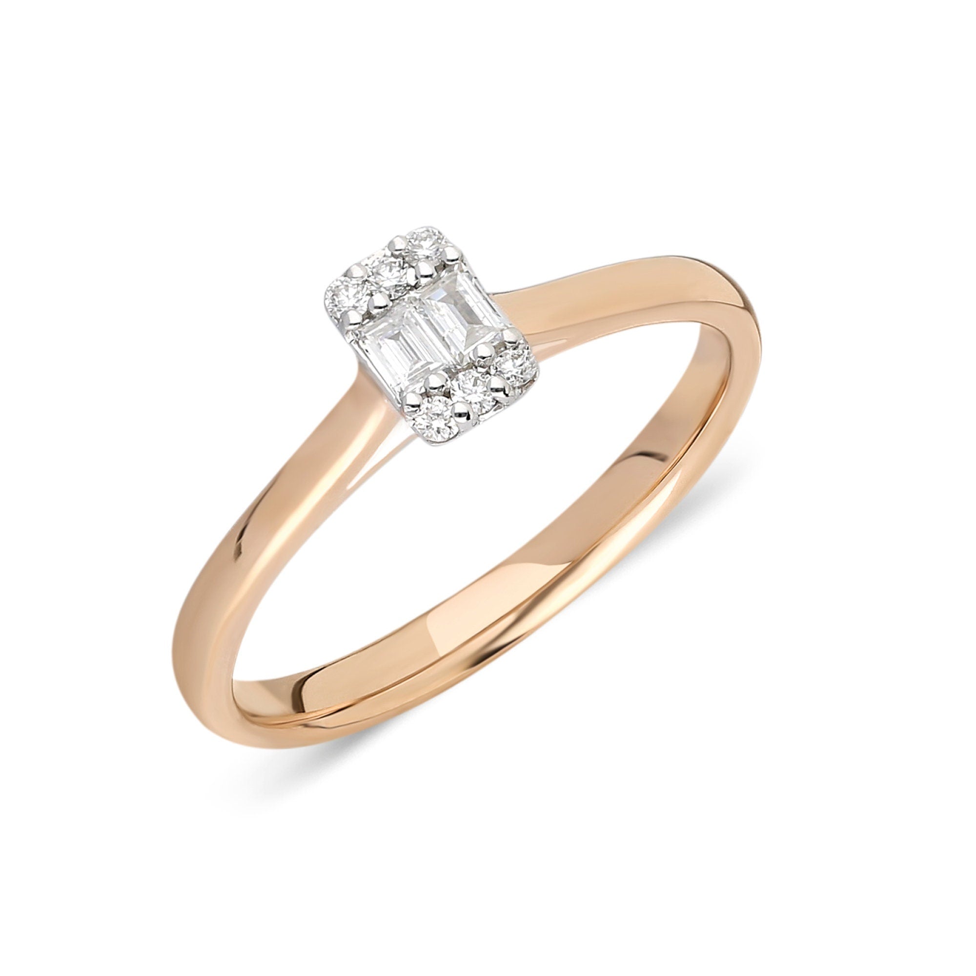Elevate your style with this stunning 14k gold diamond ring featuring 2 baguette diamonds and 6 round diamonds. Perfect as a solo piece or for stacking with other rings.