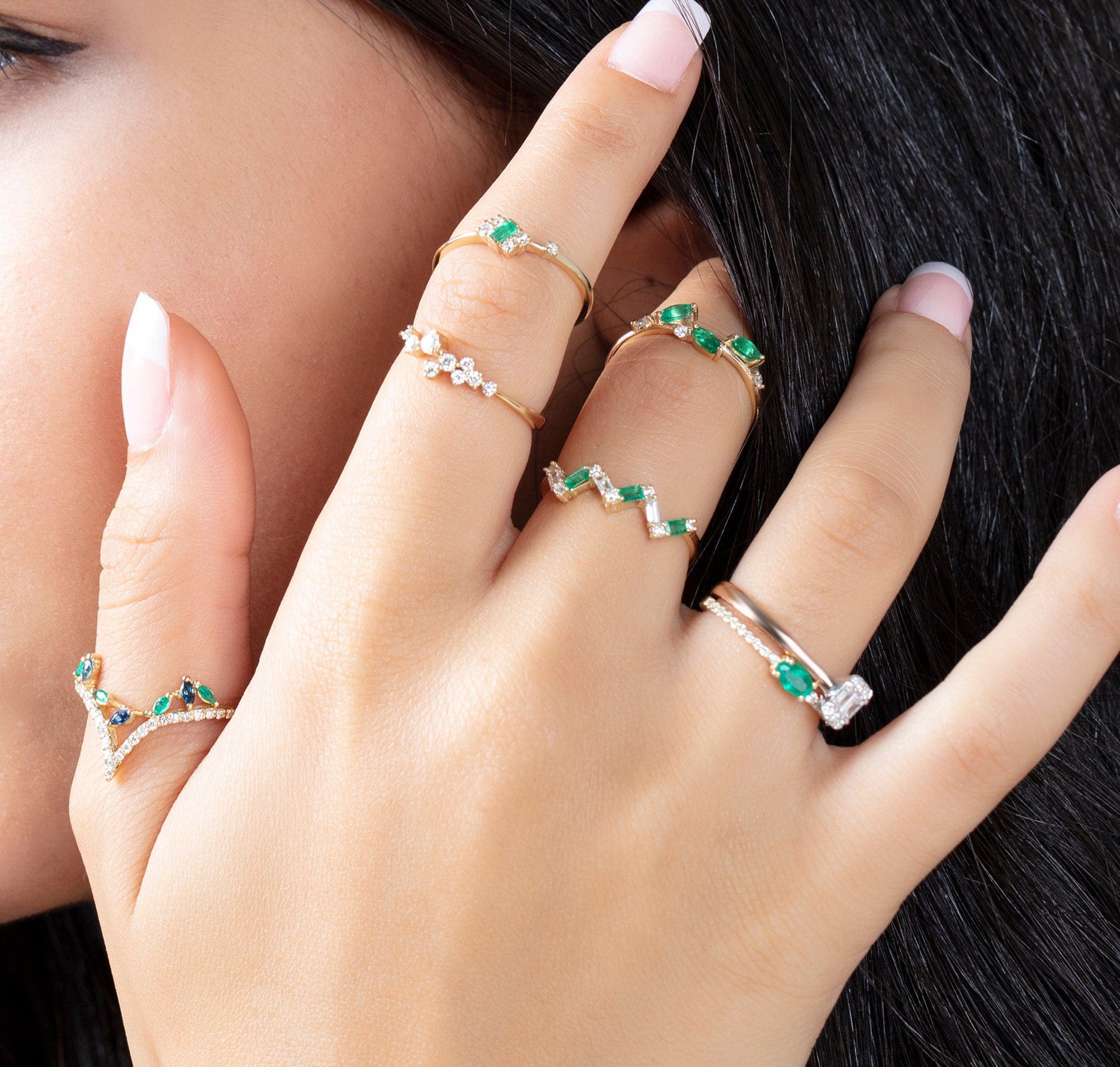 14k Gold Baguette Diamond Stacking Ring / Elegant Wedding Band / Anniversary Gift for Her / Bridal Jewelry / Dainty Classical Ring