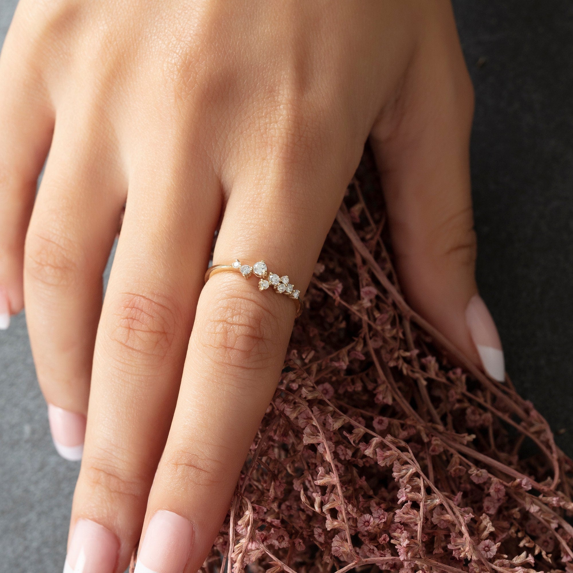 14k Gold Diamond Cluster Wedding Band/ Diamond Stacking Ring / Engagement Ring / Diamond Anniversary Ring / Birthday Gift for Her