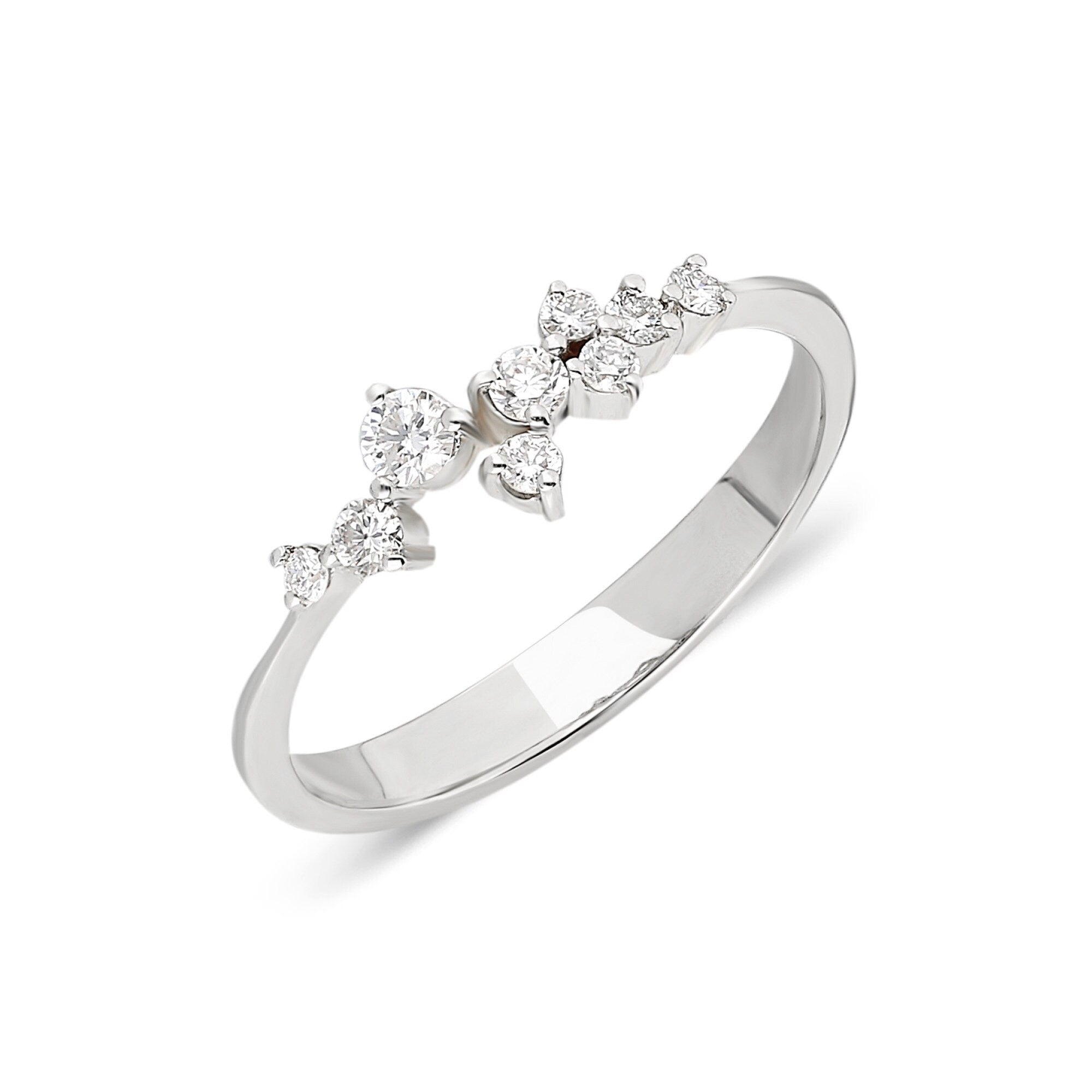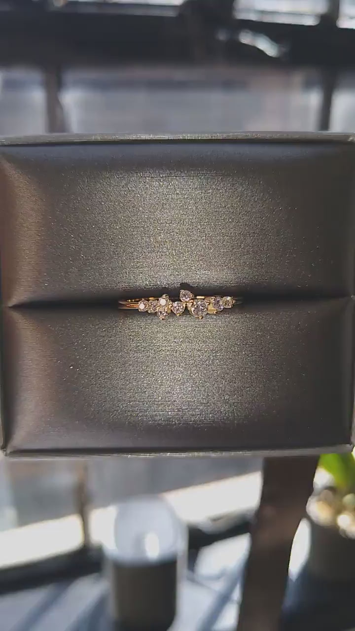 This 14k gold ring has a cluster of round diamonds and fits perfectly with a range of engagement ring shapes.